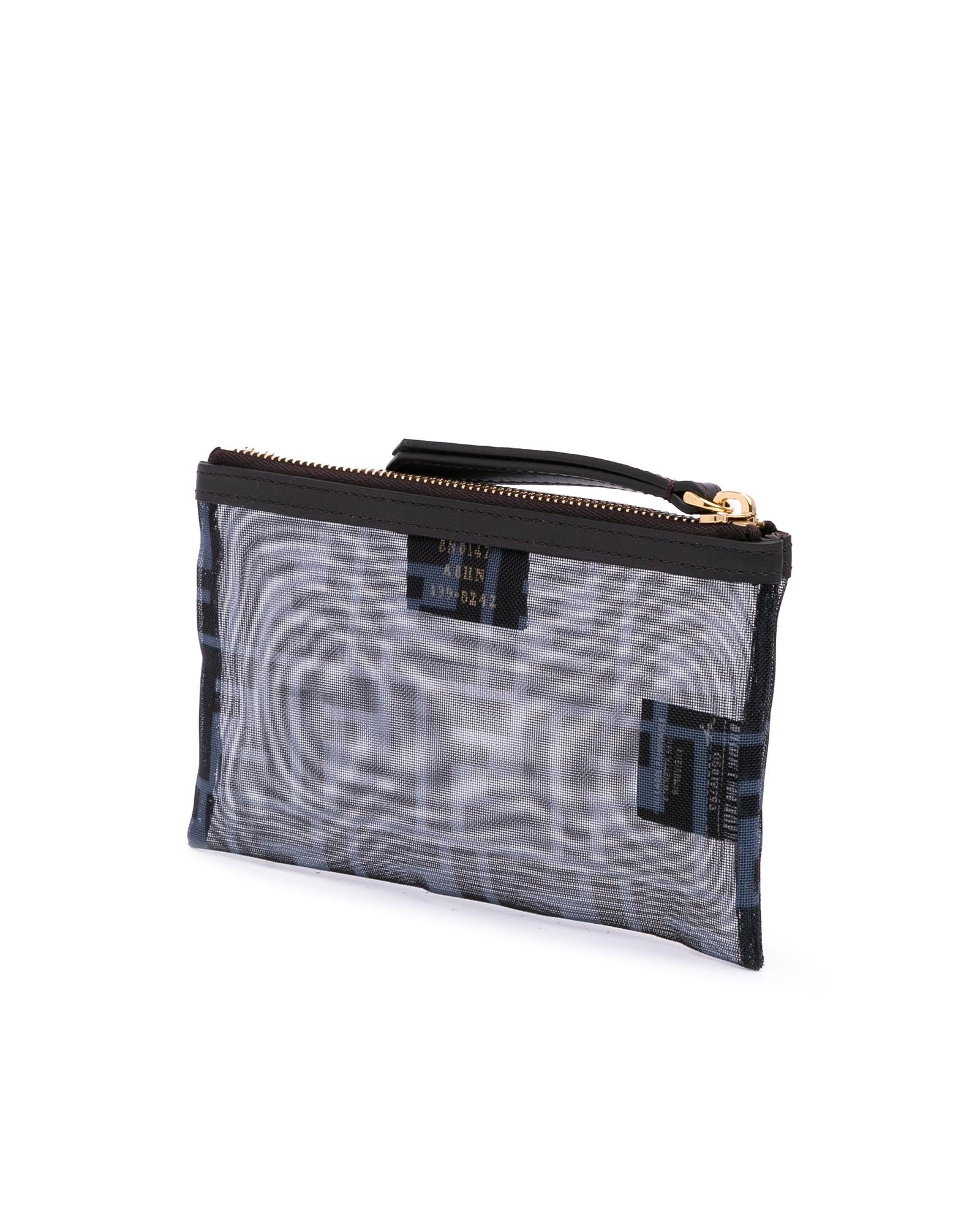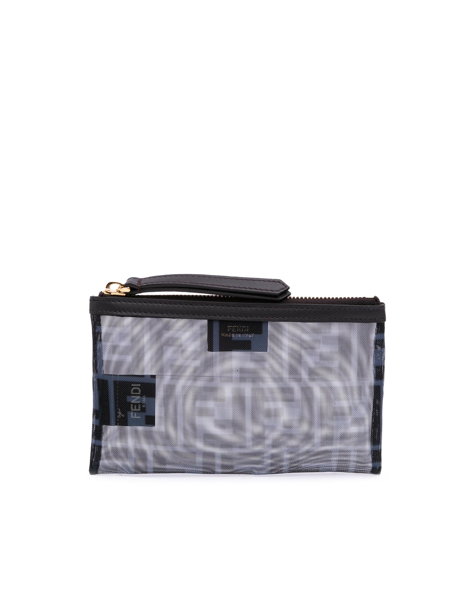Pre-owned Compact Zip Pouch with Graphic Detailing Featuring Convenient Card Slots and a Wrist Strap