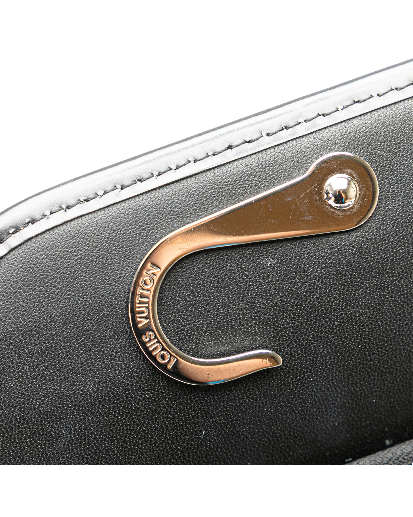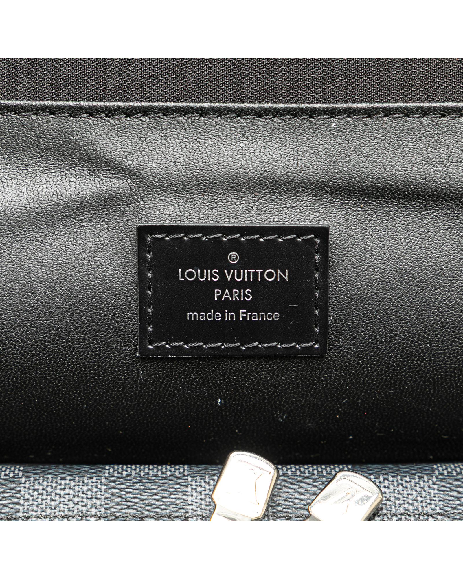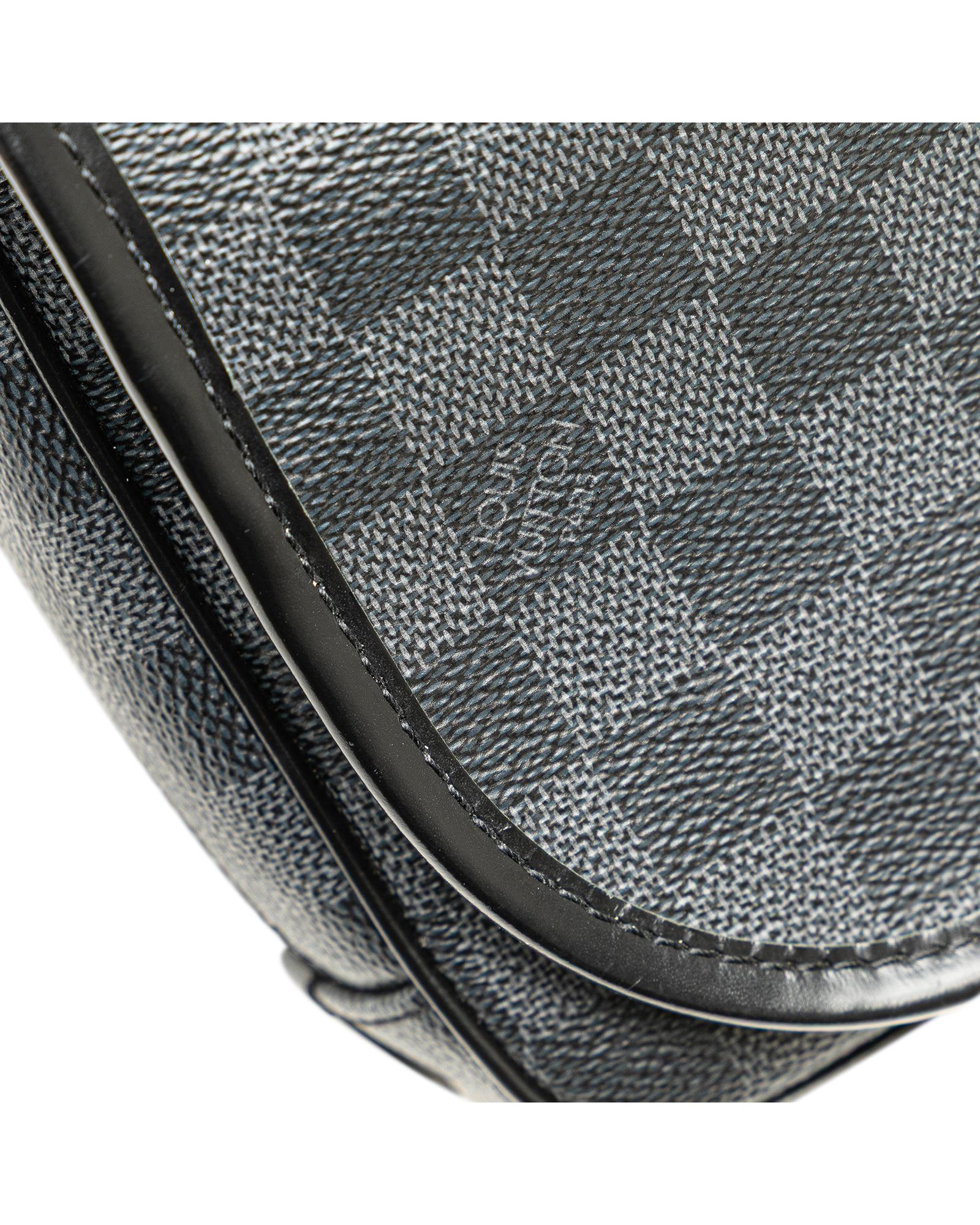 This pouch features a damier graphite canvas body a front flap with snap button closure a top zip closure a back swivel hook and interior slip pockets.Brand: Louis Vuitton
