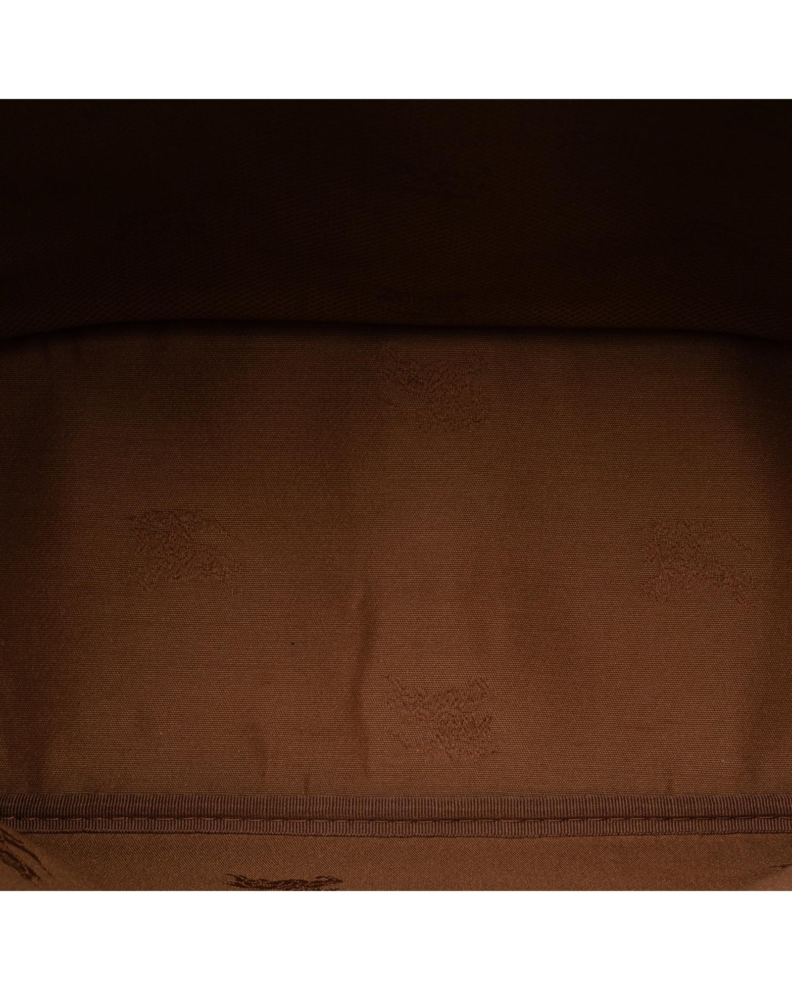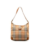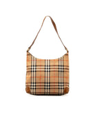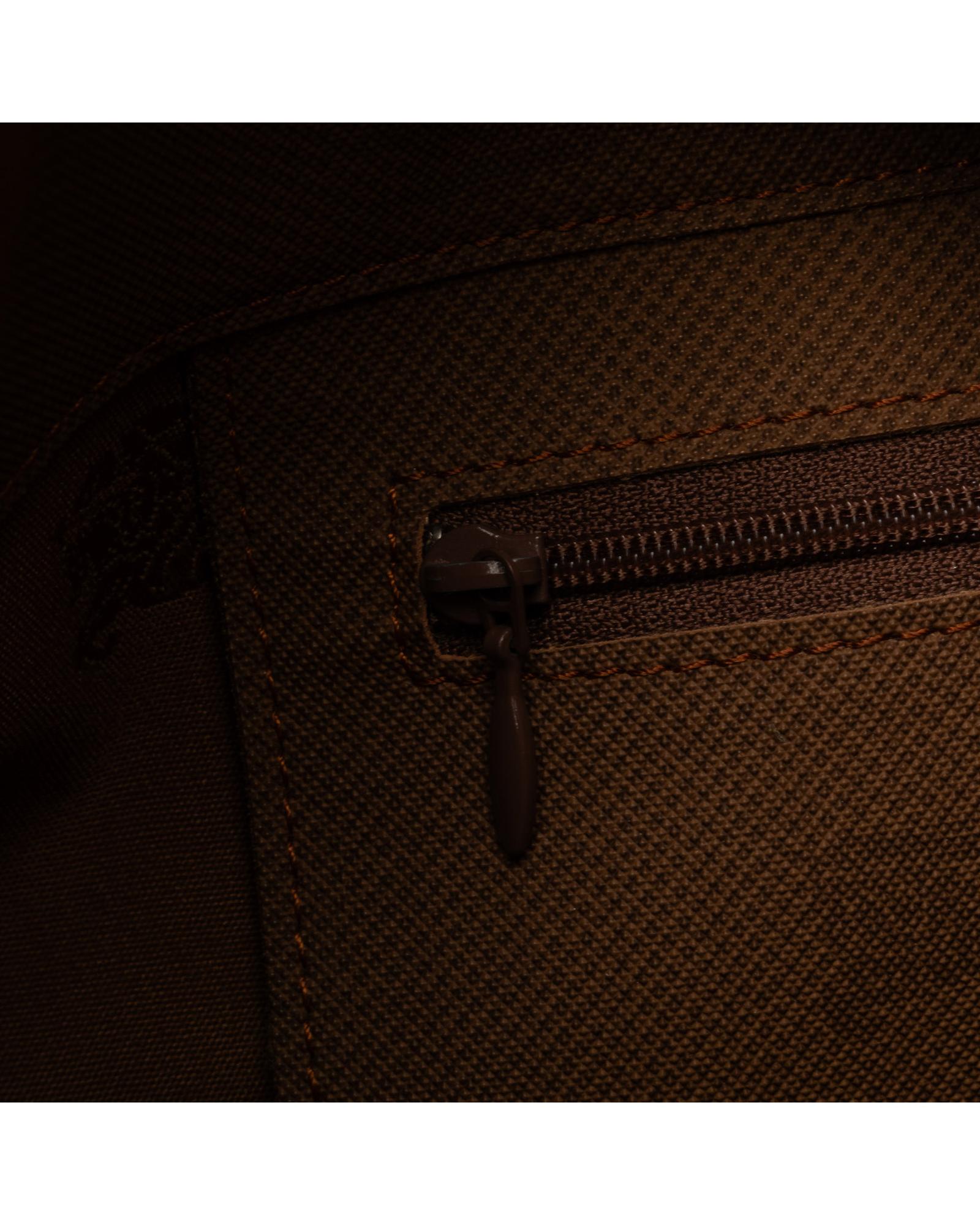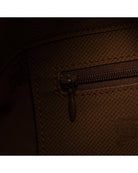 Canvas and Leather Shoulder Bag with Top Zipper and Interior Pockets