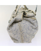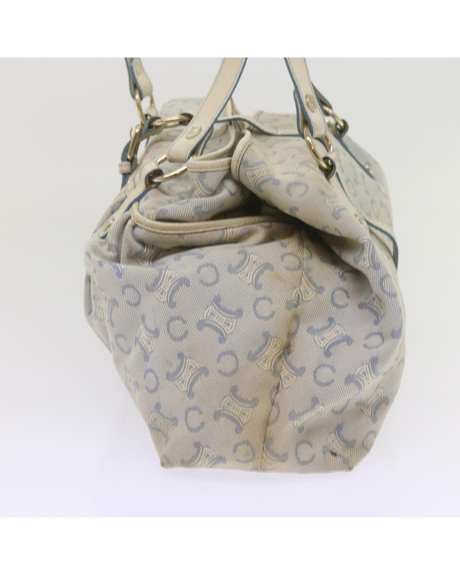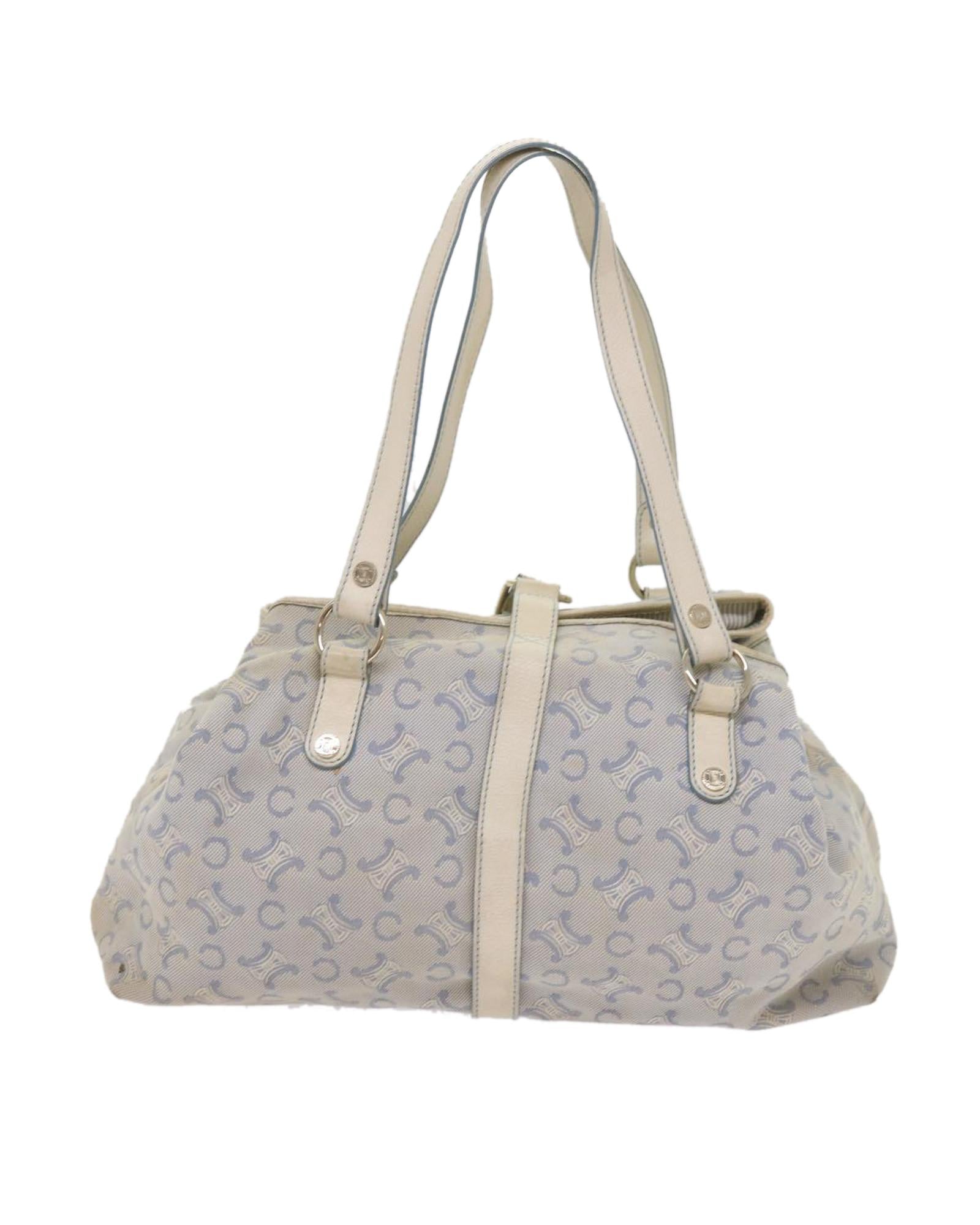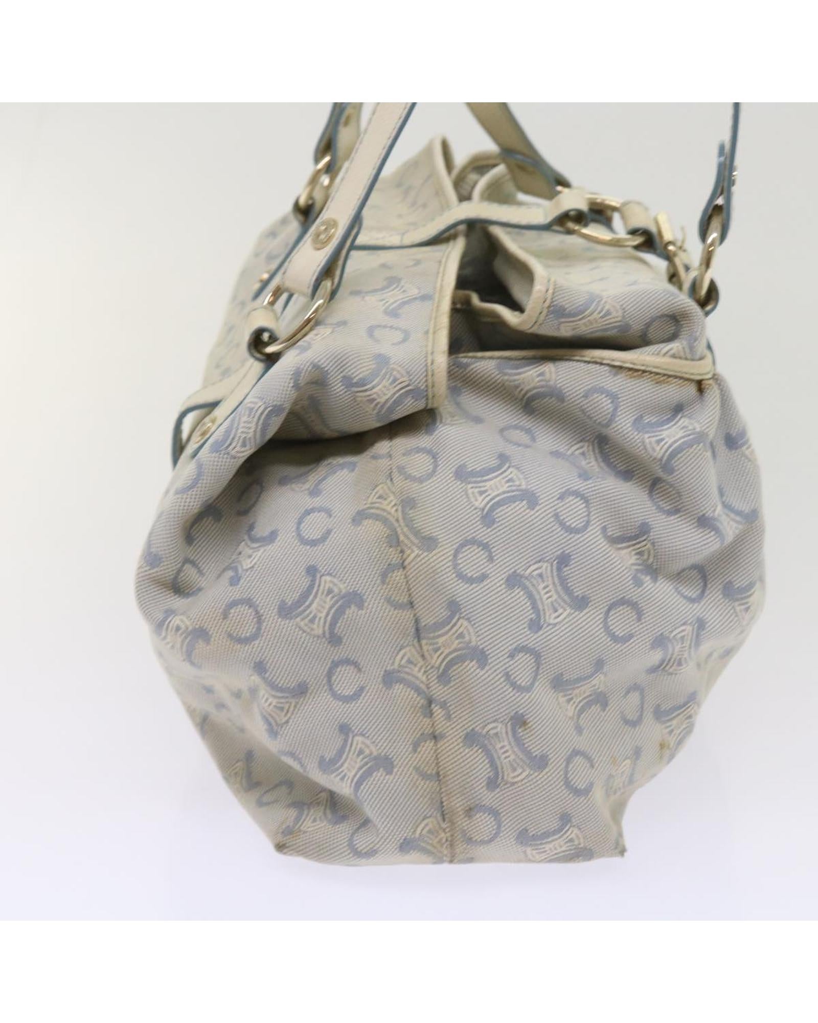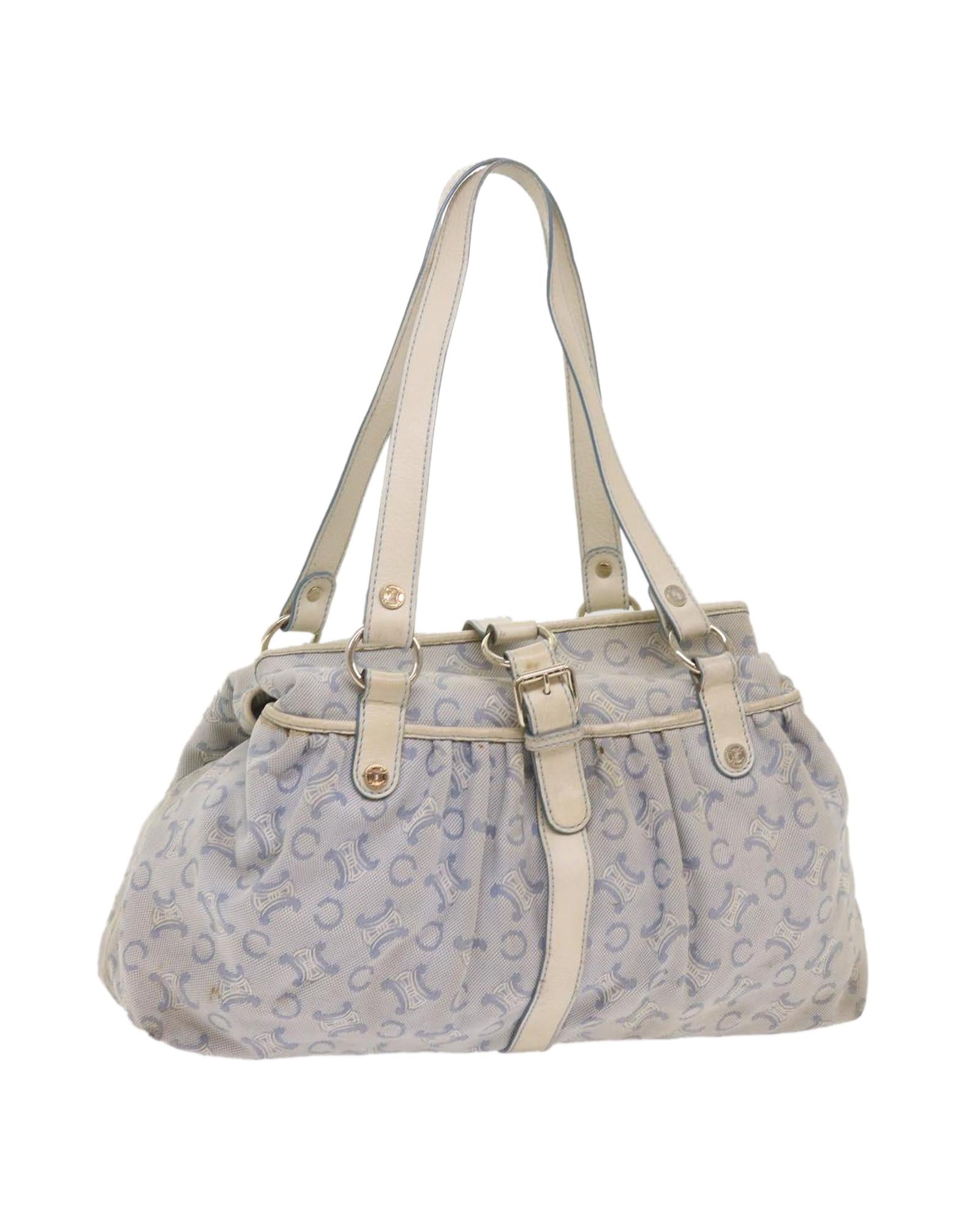 Canvas Shoulder Bag with Authentic Celine C Logo Design - Light Blue