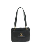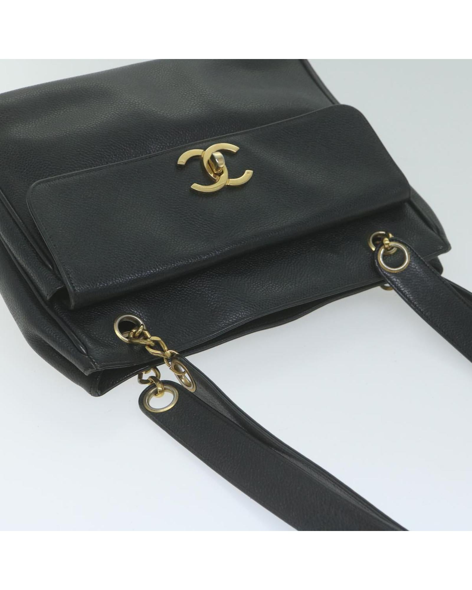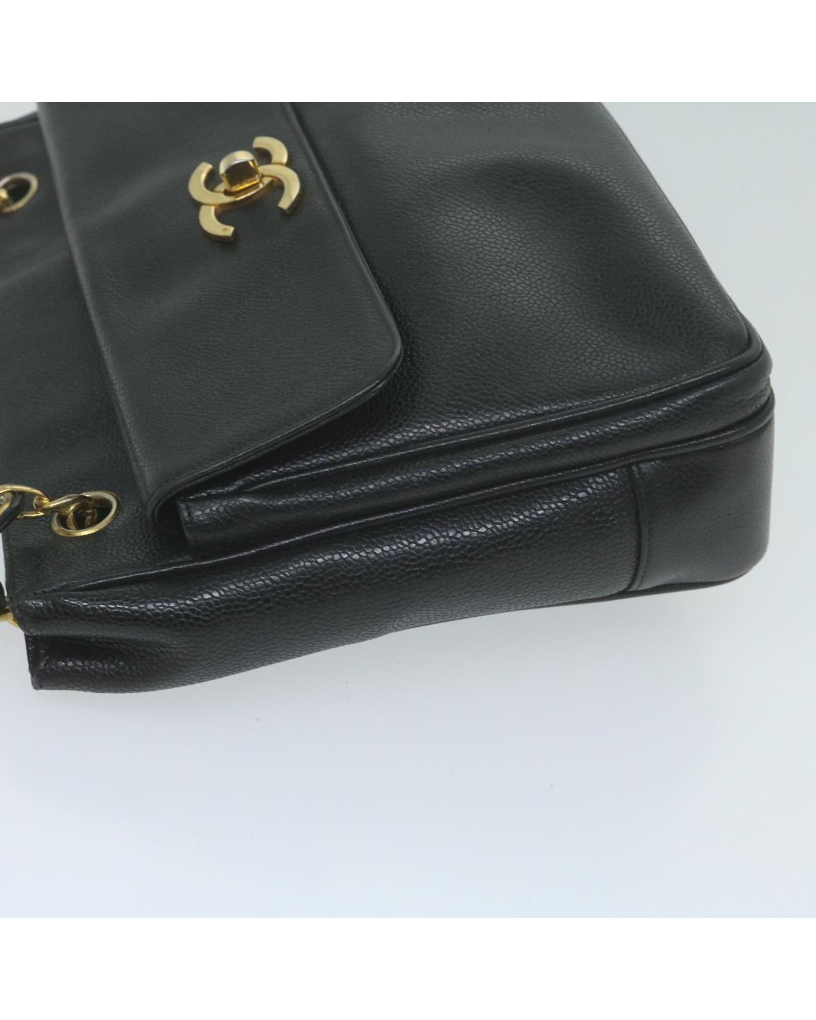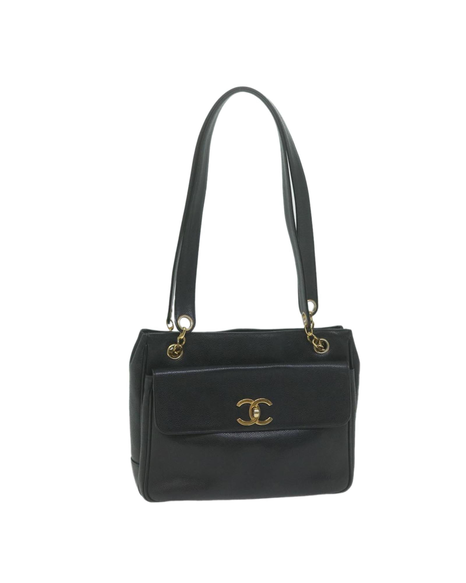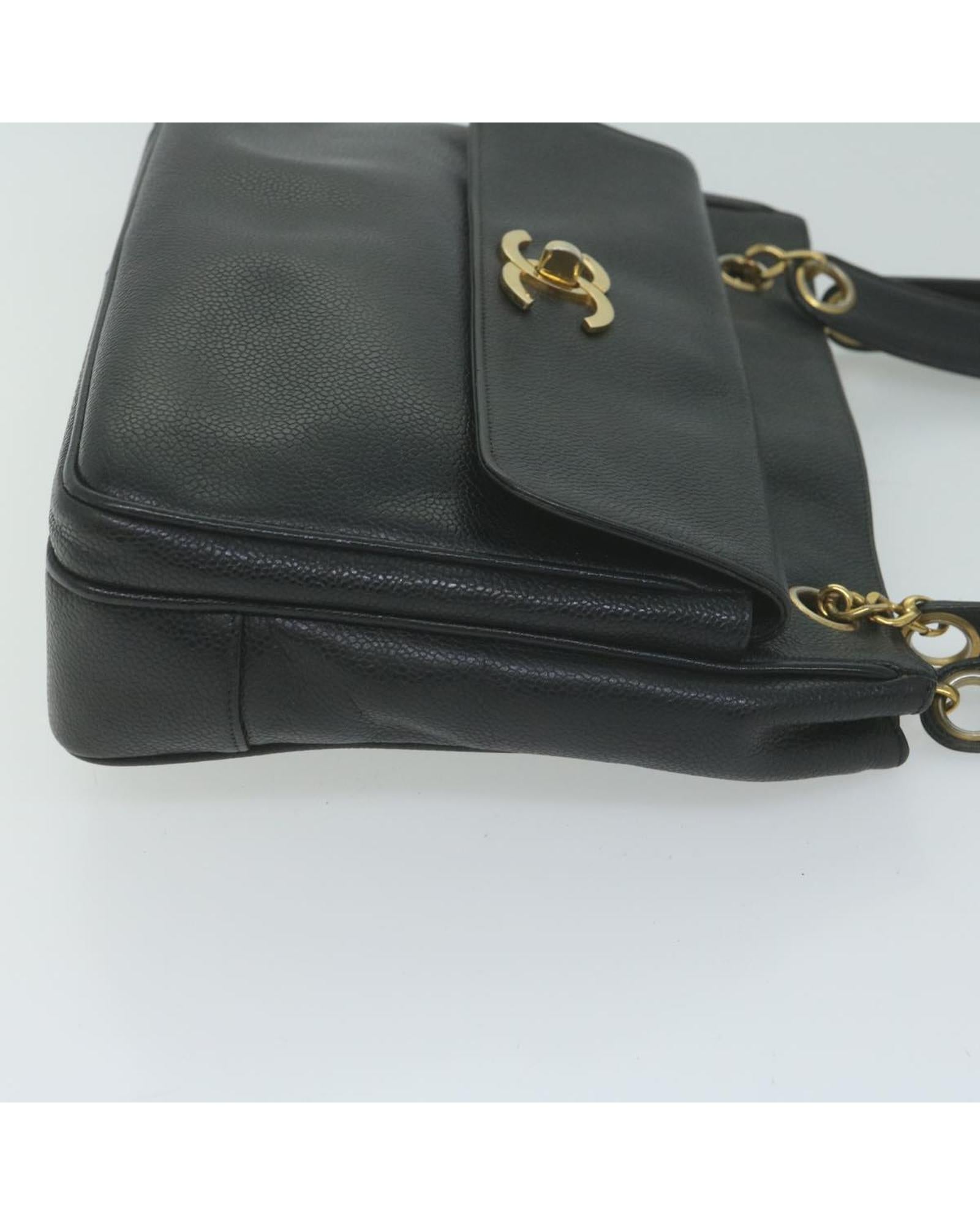Black Caviar Skin Chain Shoulder Bag with Turn Lock