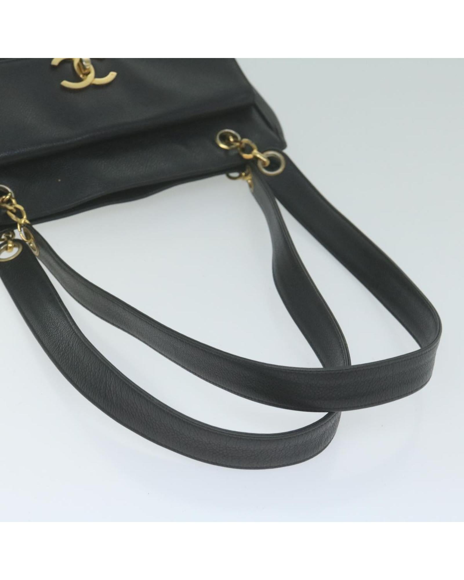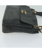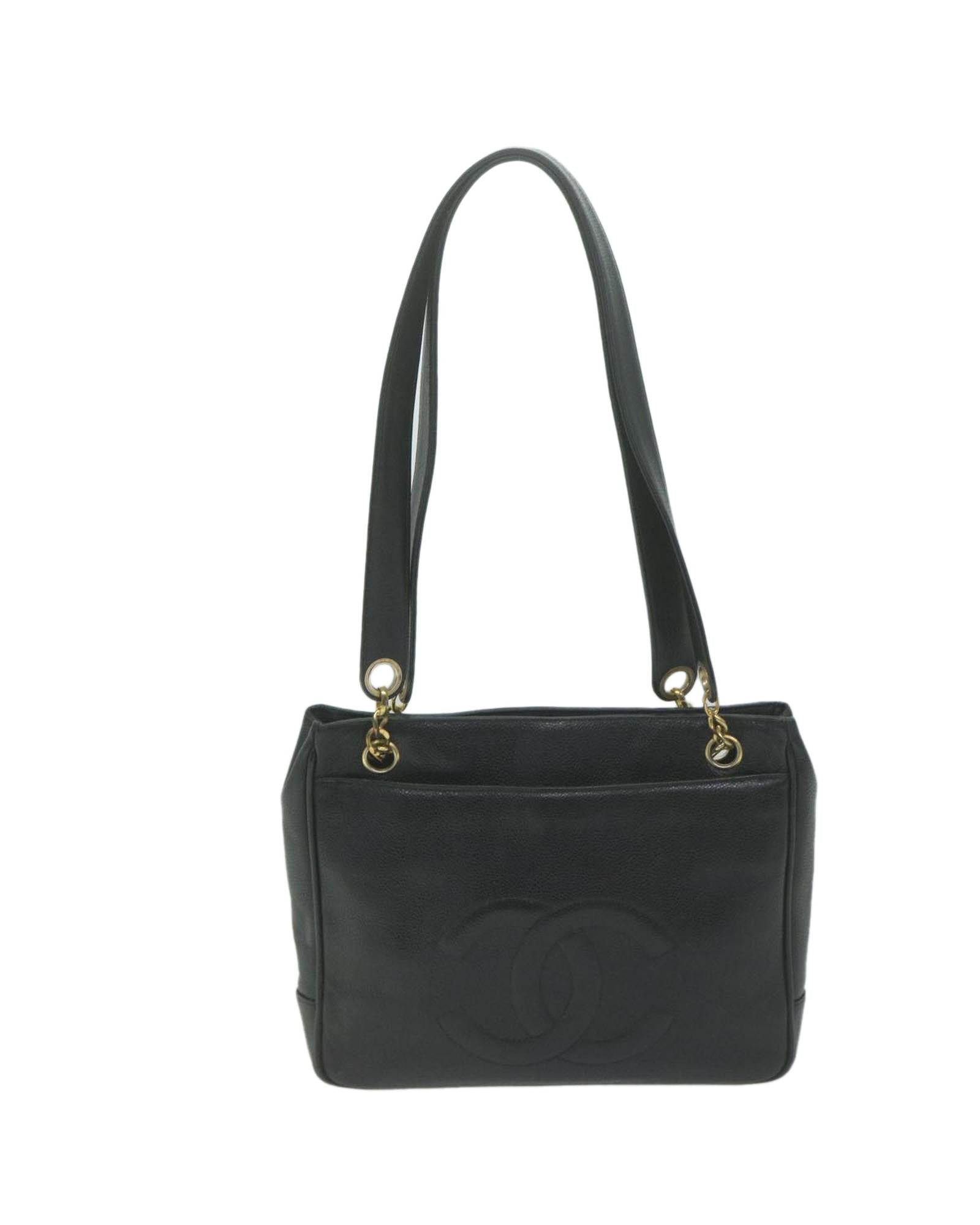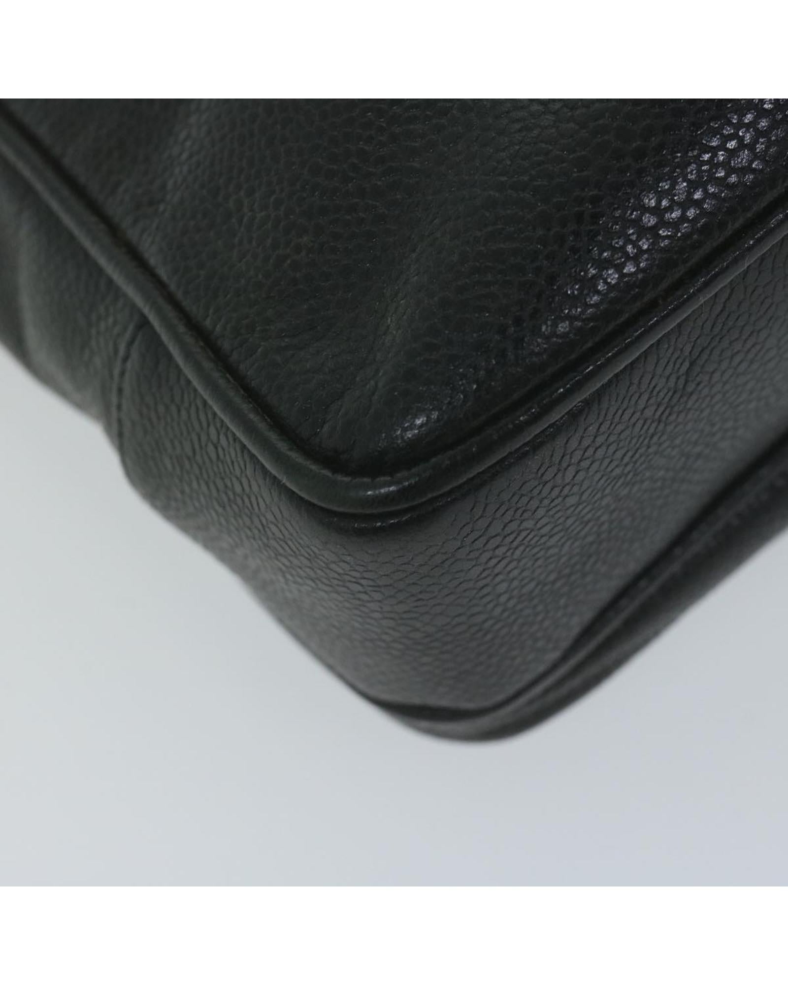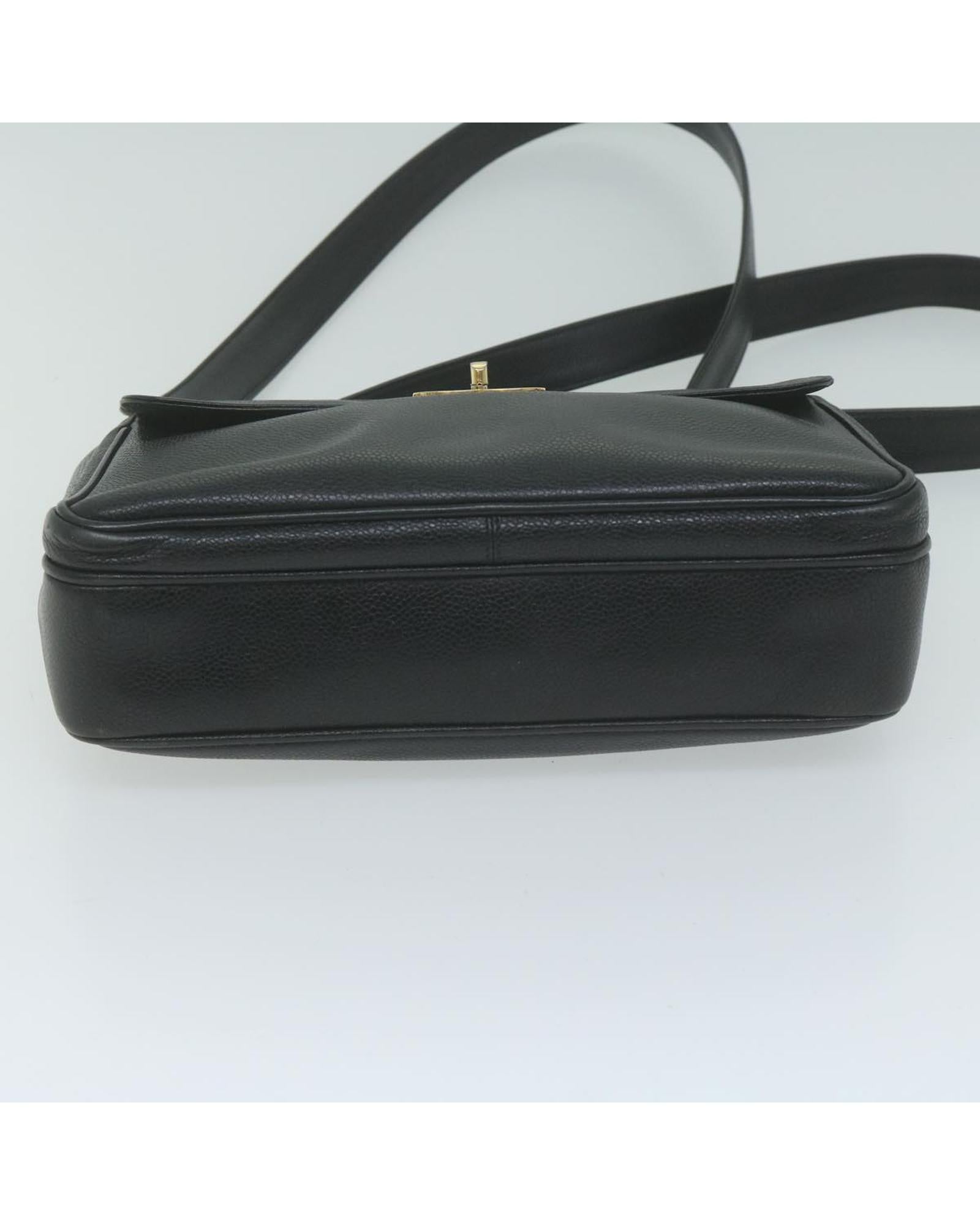 Black Caviar Skin Chain Shoulder Bag with Turn Lock