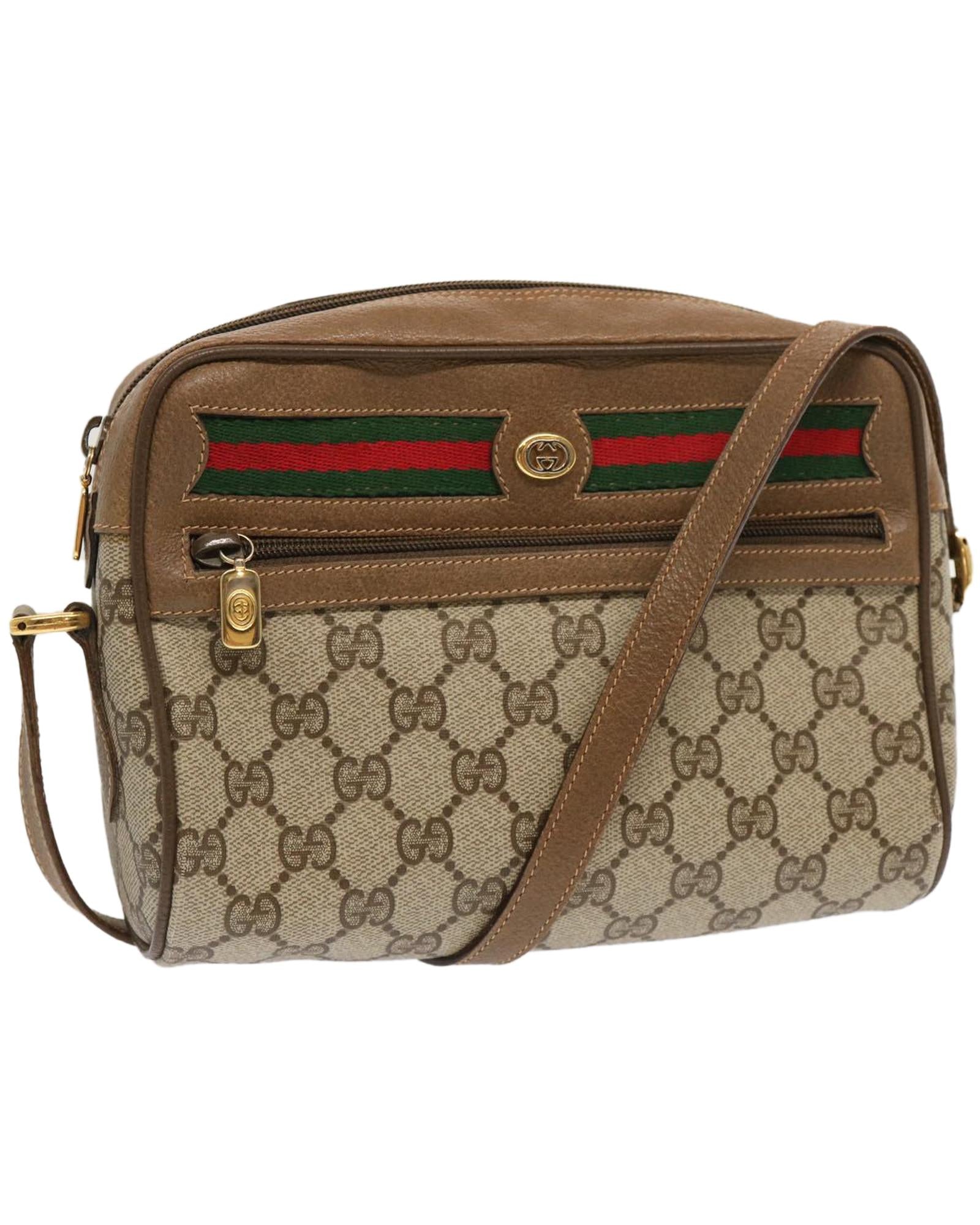 - Beige and green-colored Gucci shoulder bag