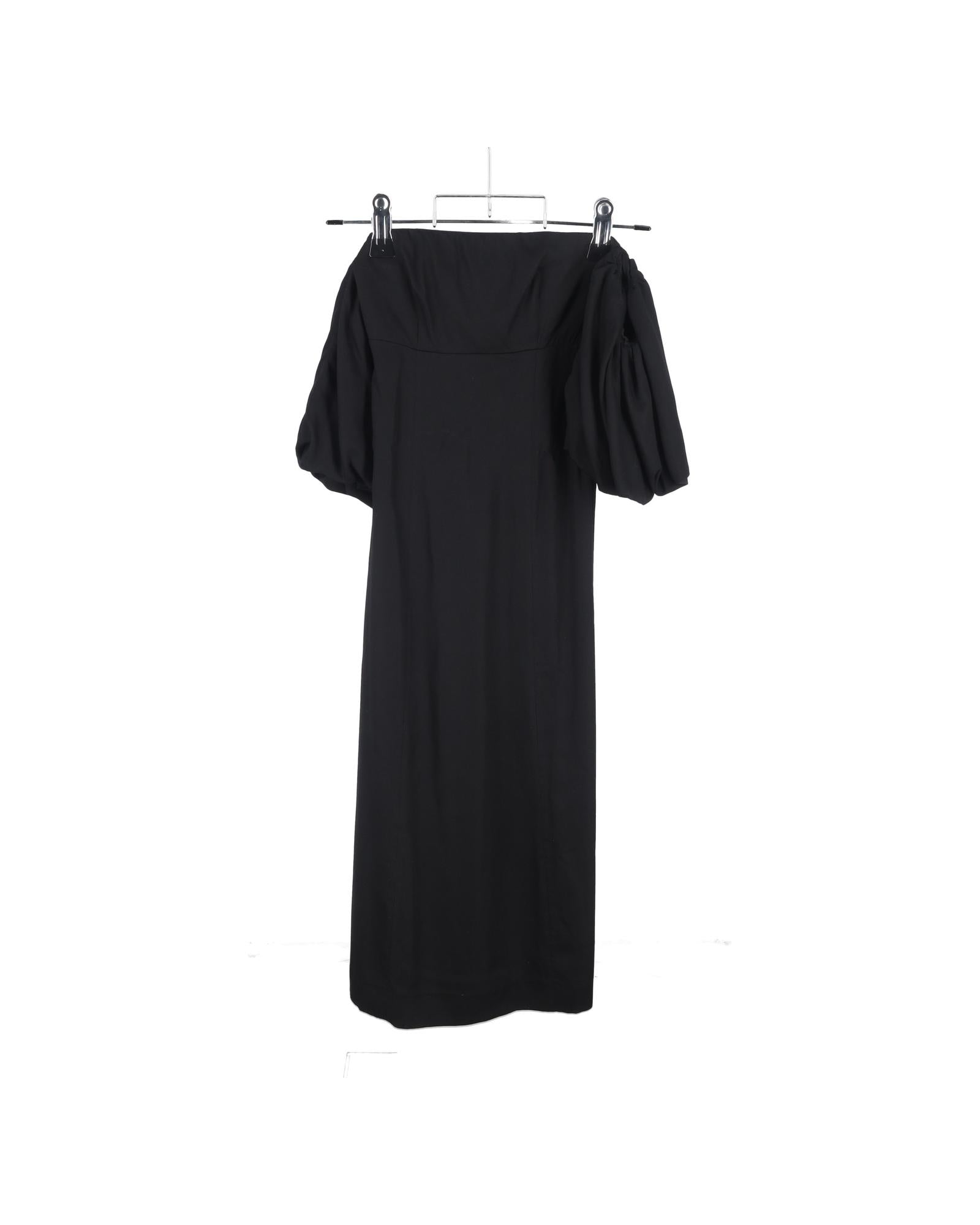 • Mother of Pearl Off Shoulder Midi Dress in Black Polyester