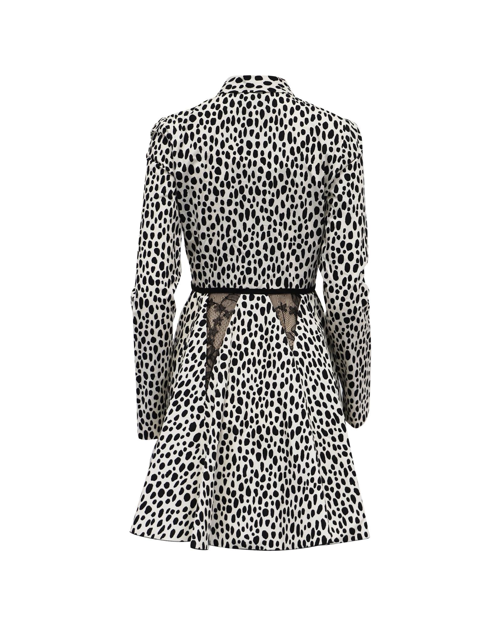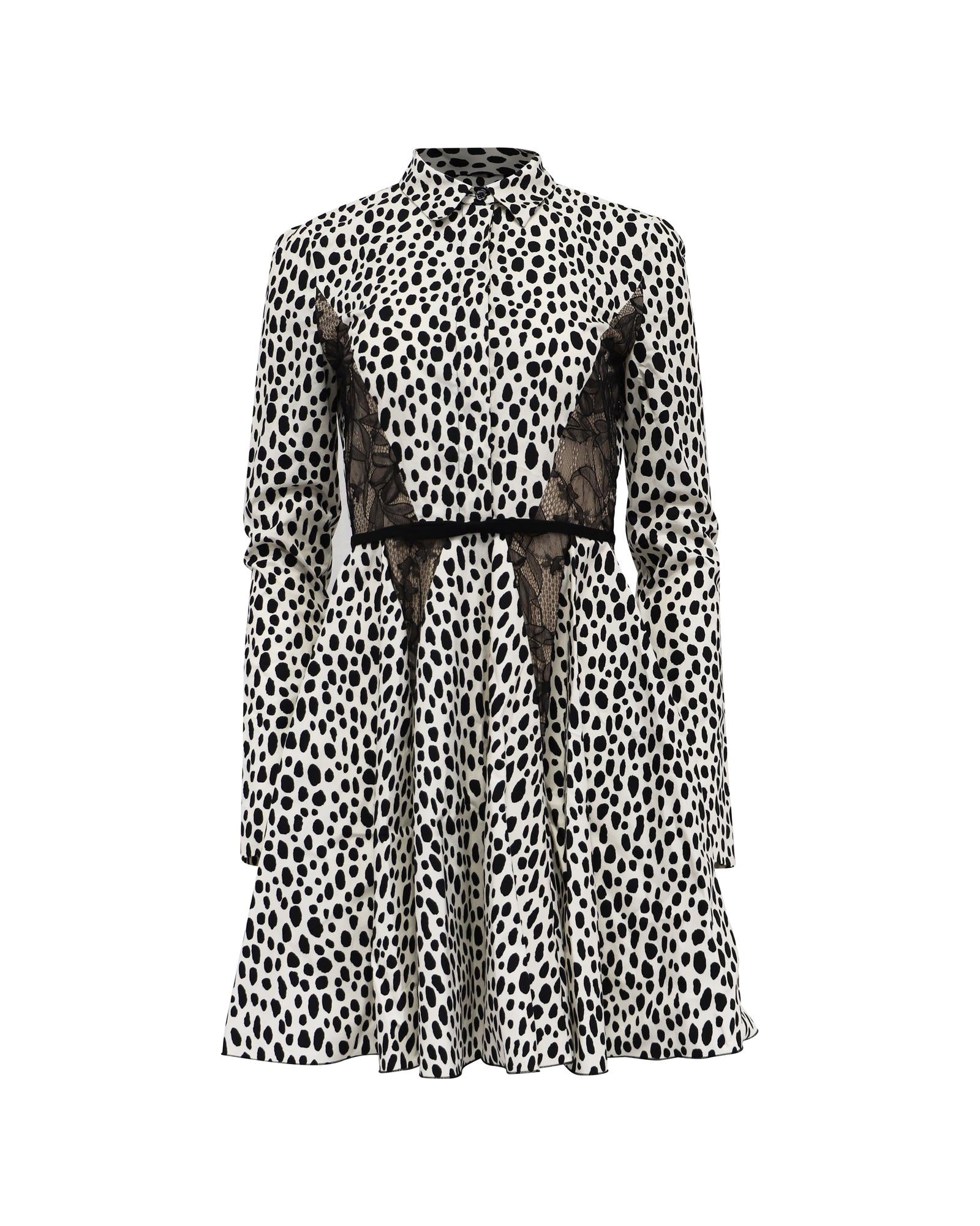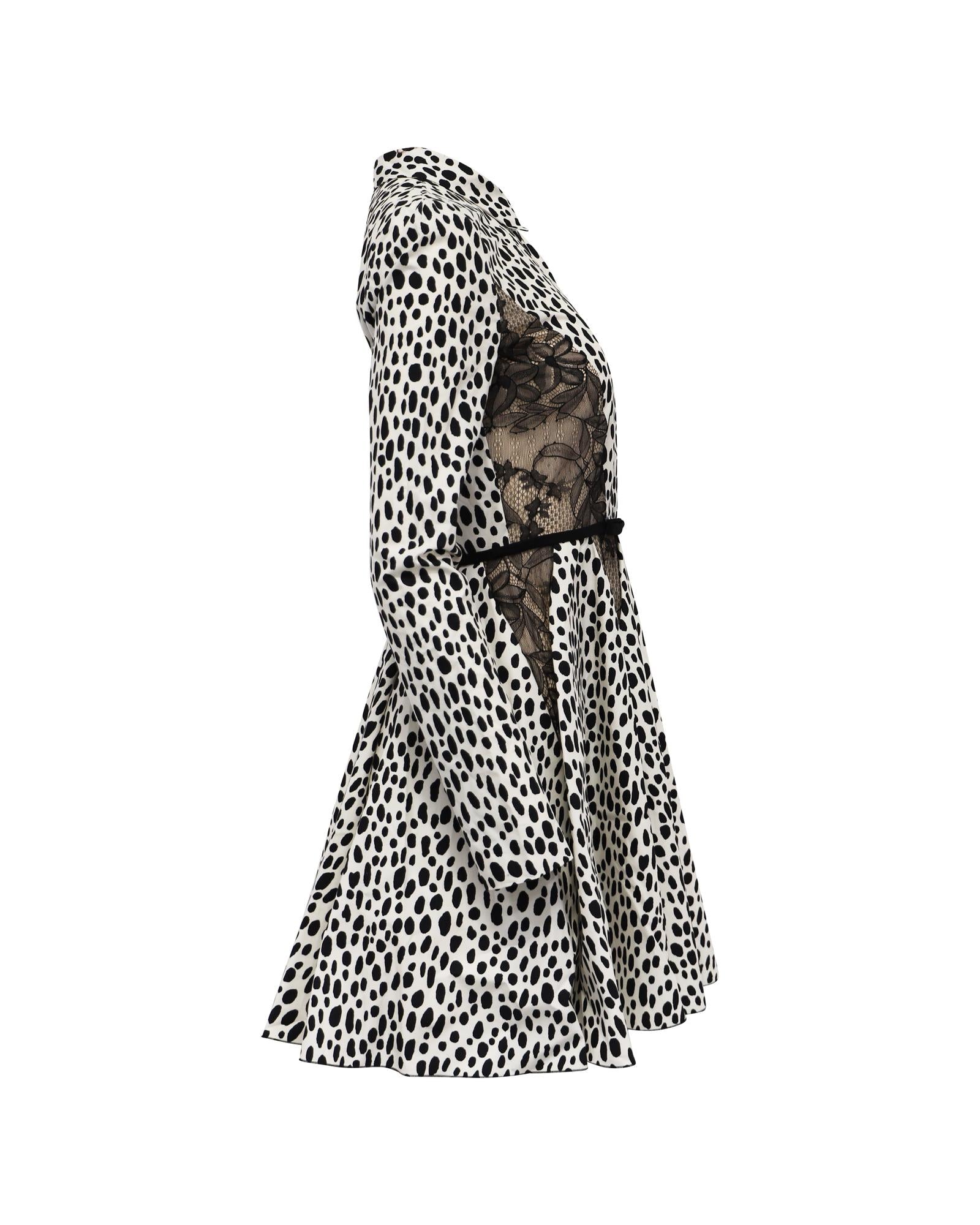 Pre-owned Patterned Mini Dress with Long Sleeves and Lace Detail