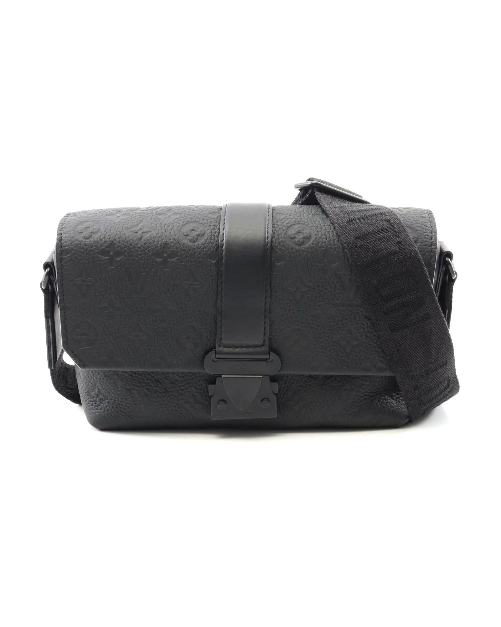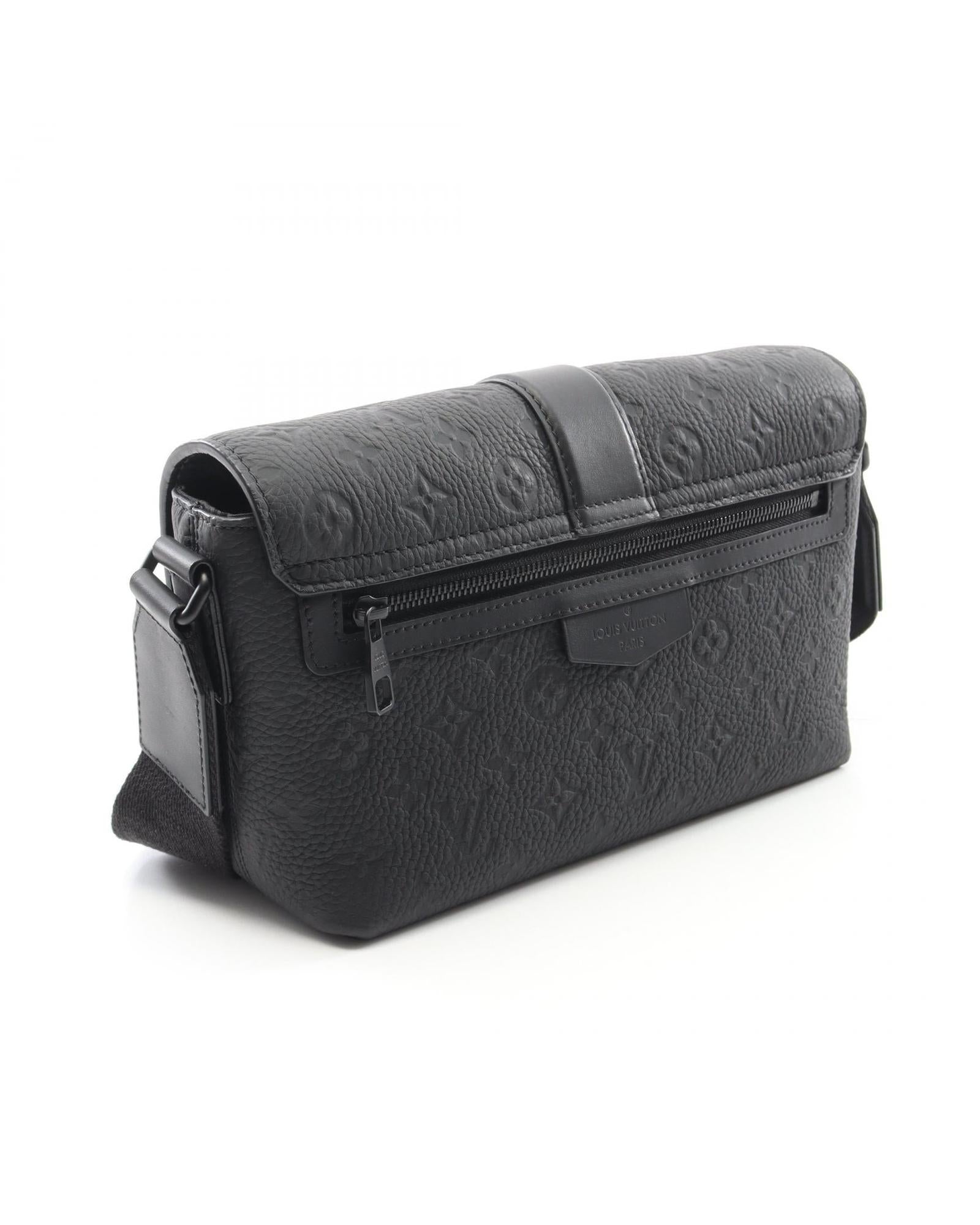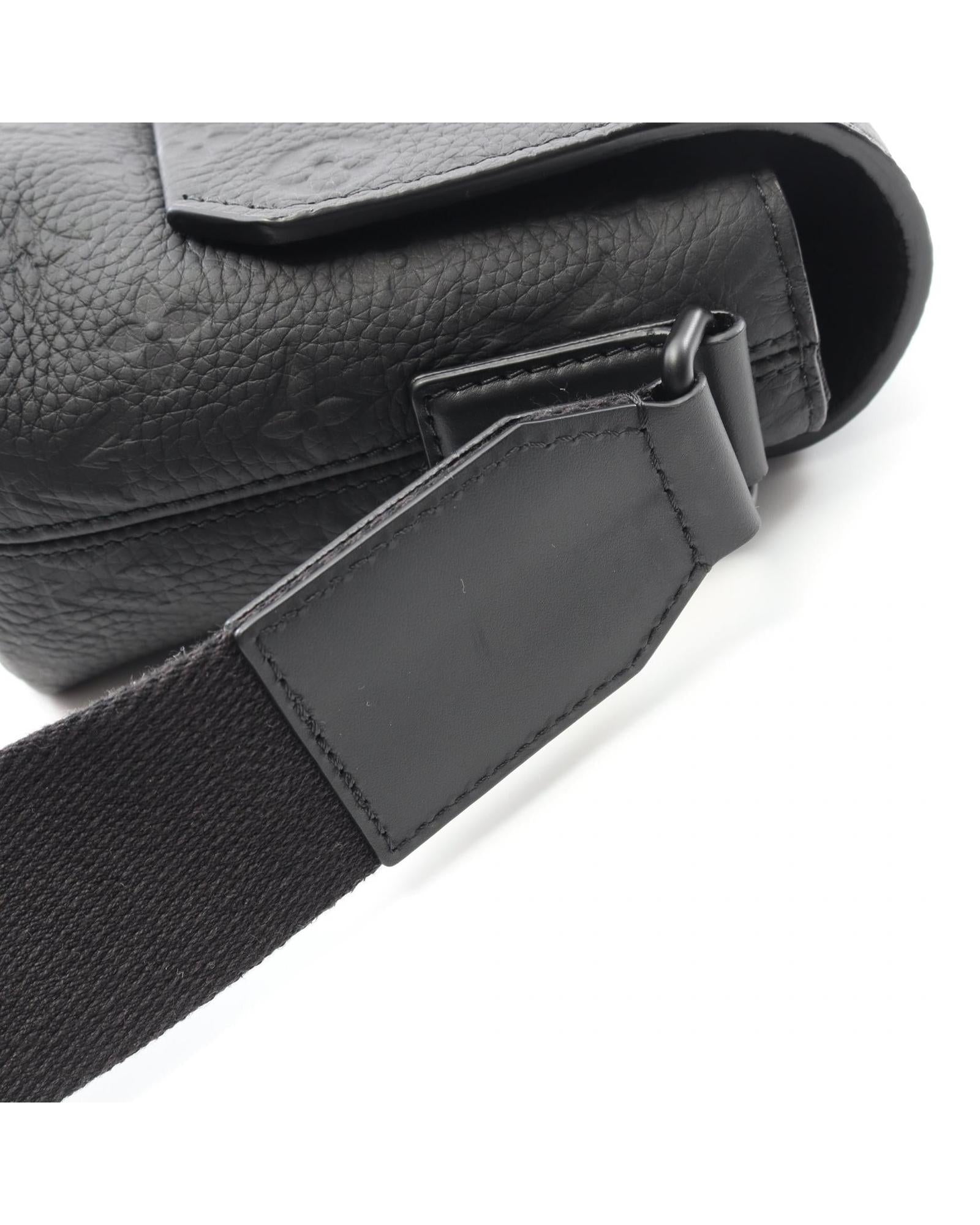 Pre-owned Embossed Leather Messenger Bag with Adjustable Shoulder Strap
