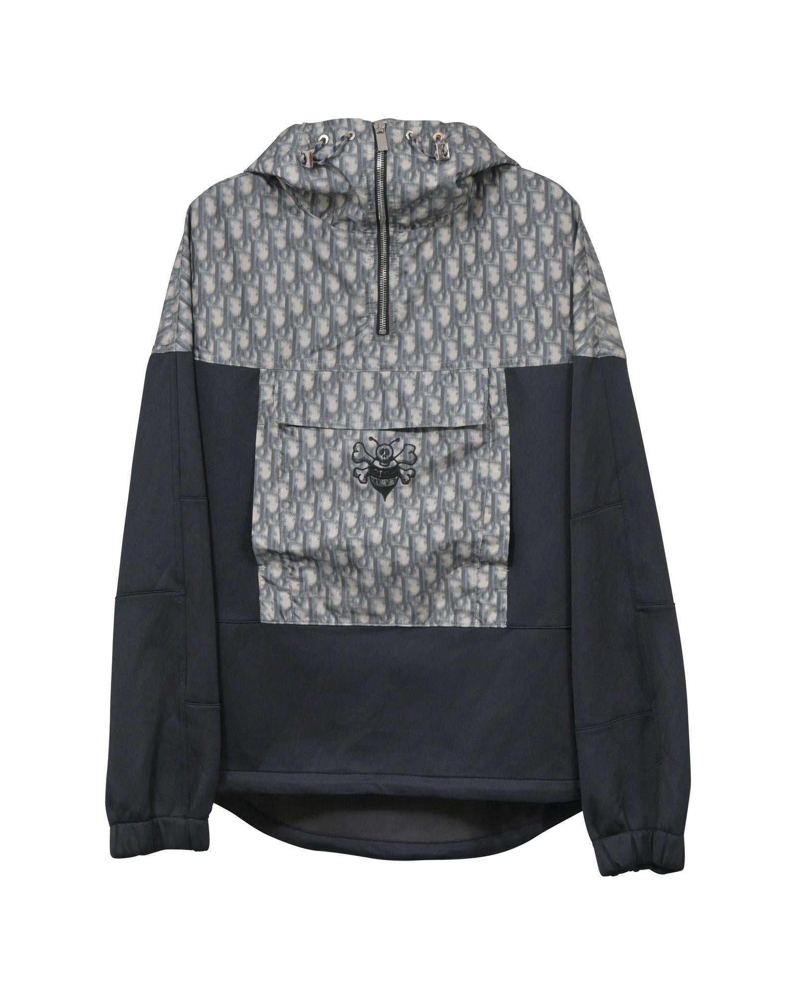 - Dior x Shawn Stussy Blurred Oblique Anorak Hoodie in Blue Polyester