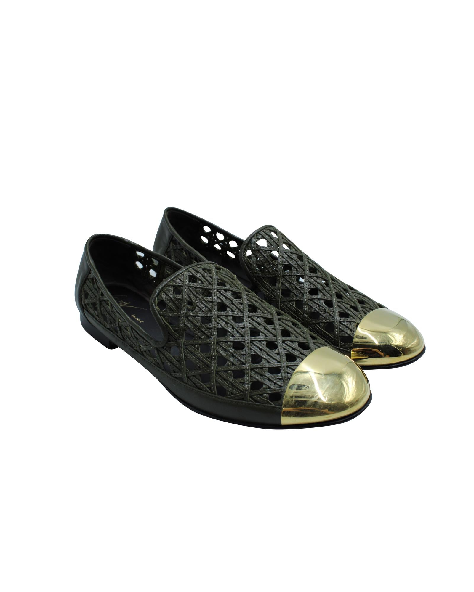 Pre-owned Woven Leather Loafers Gold Cap Toe