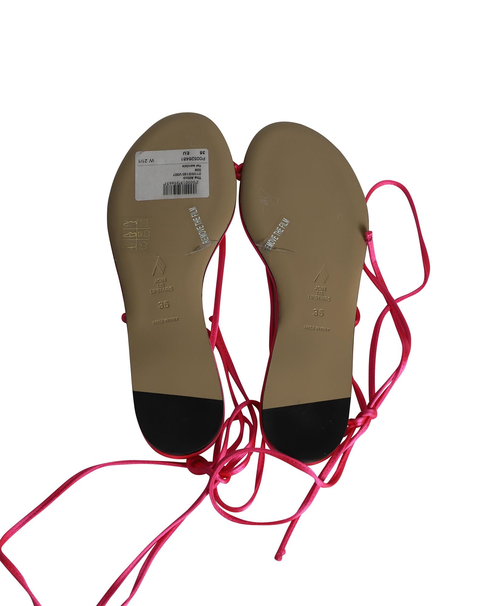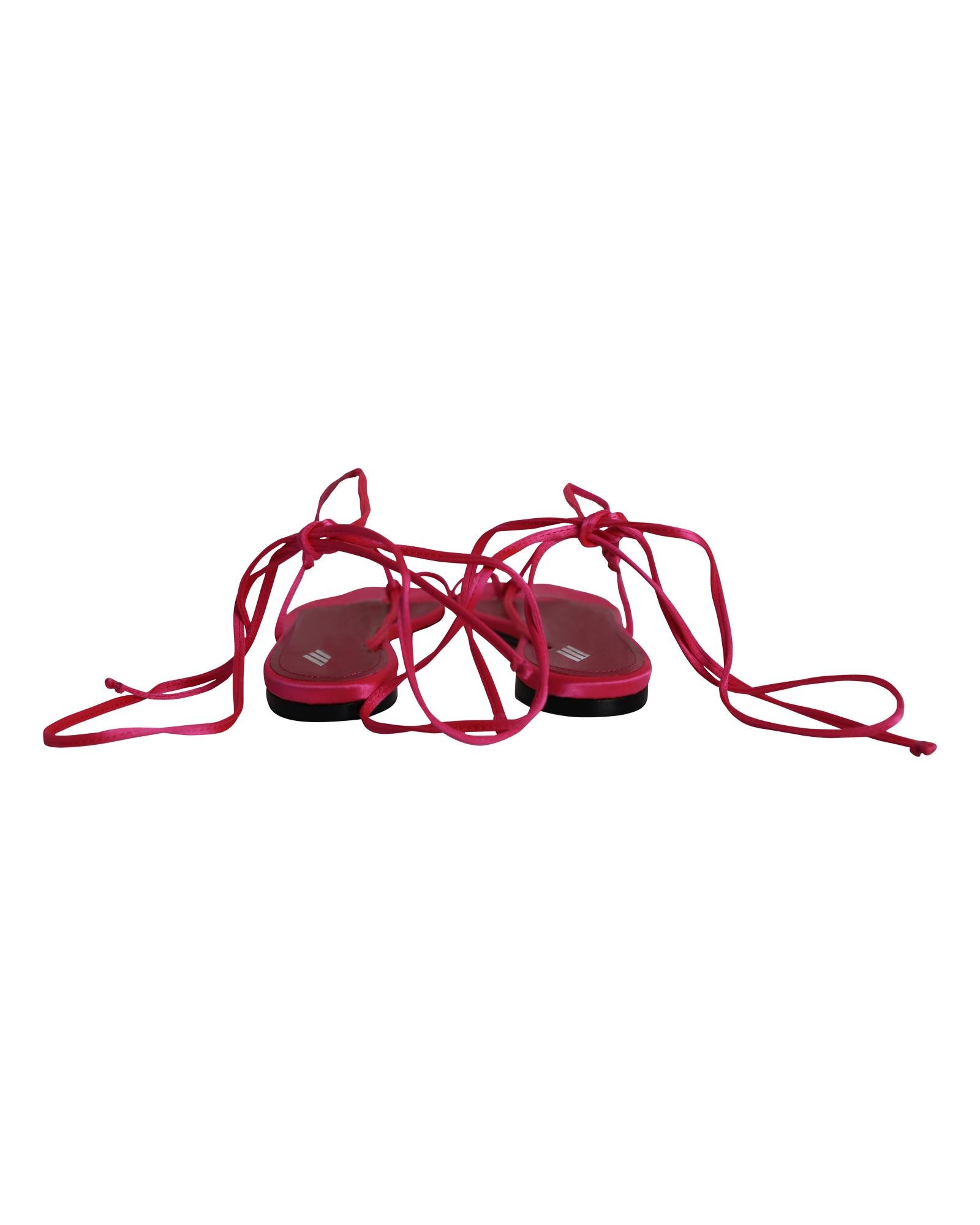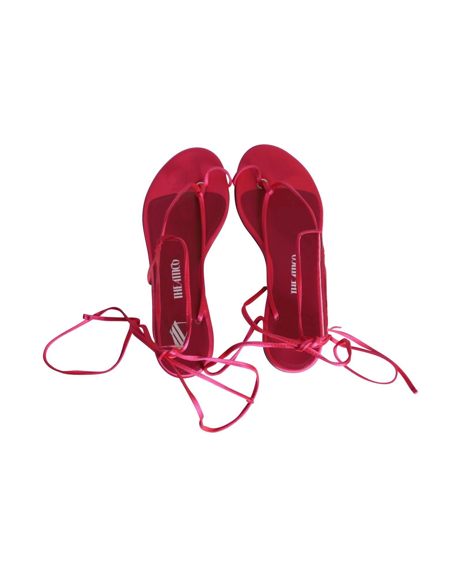 - The Attico Kika Lace Up Thong Sandals in Pink Satin