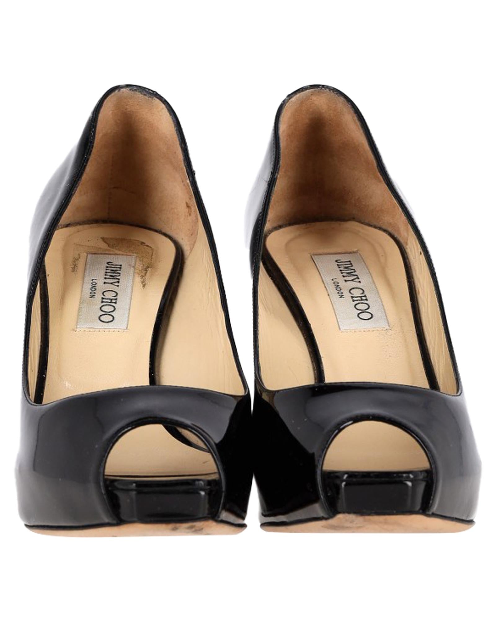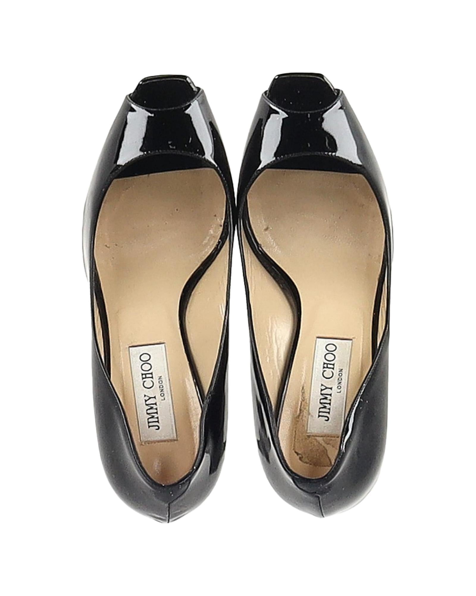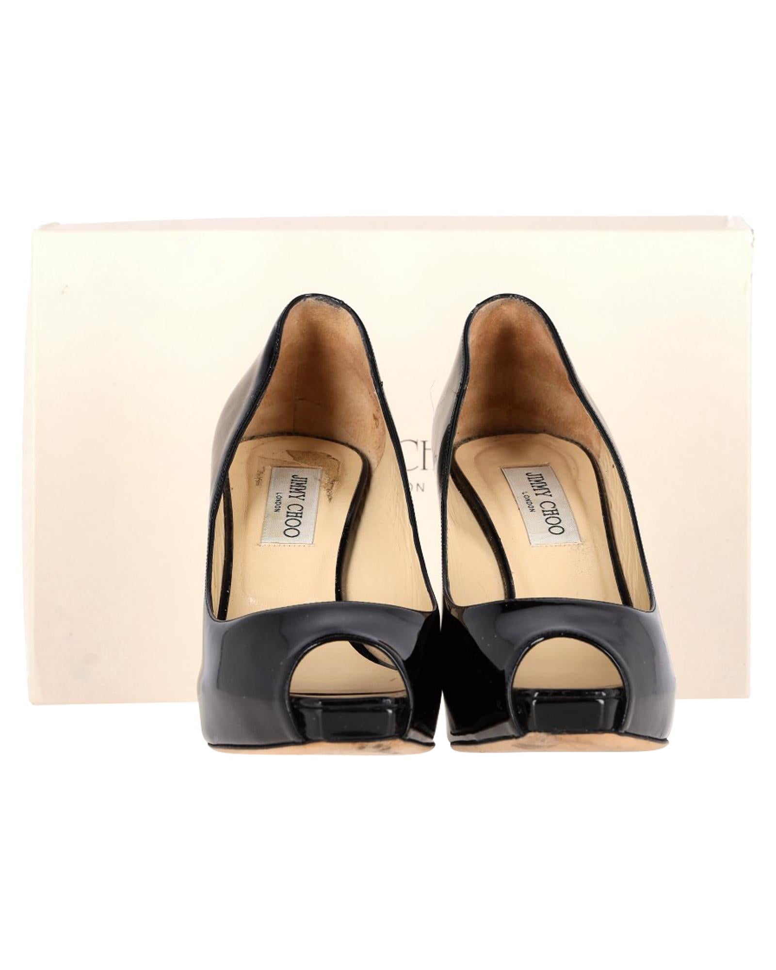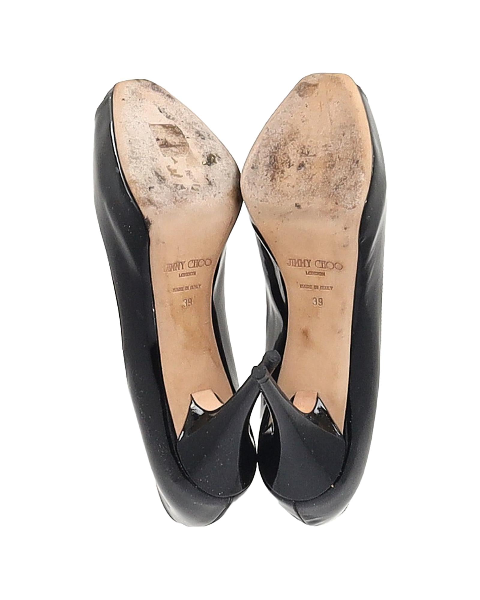 • Jimmy Choo Comet Peep Toe Pumps in Black Patent Leather