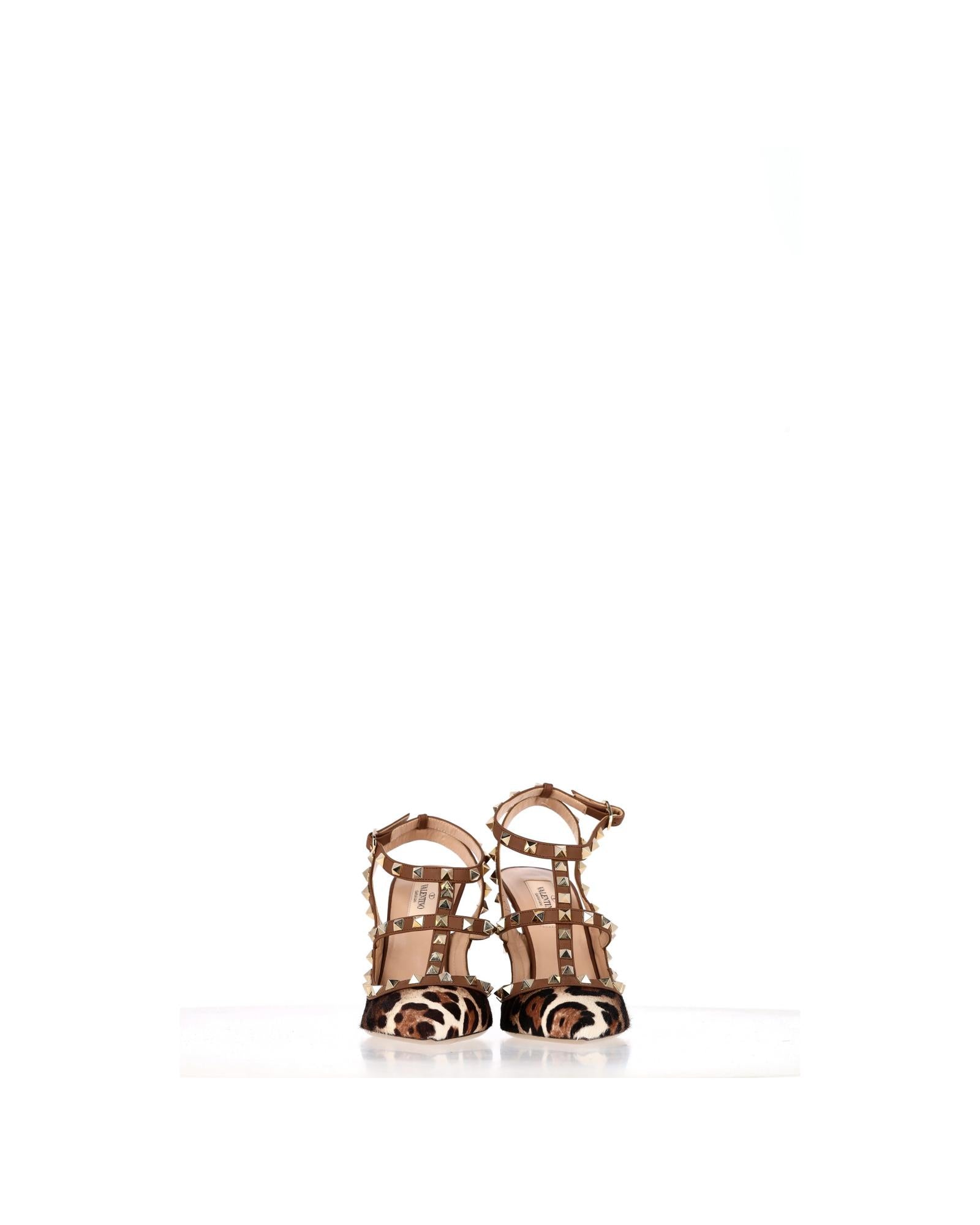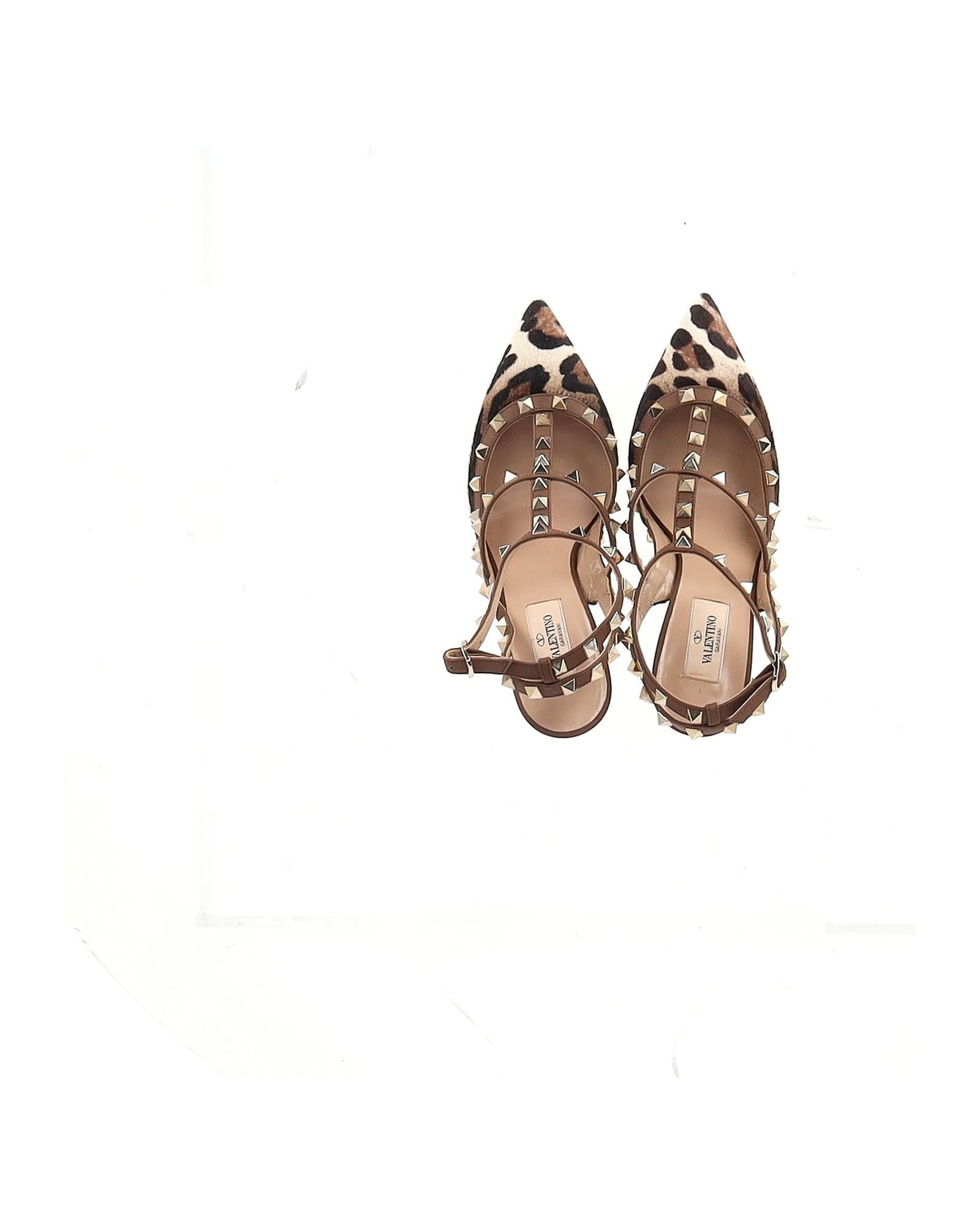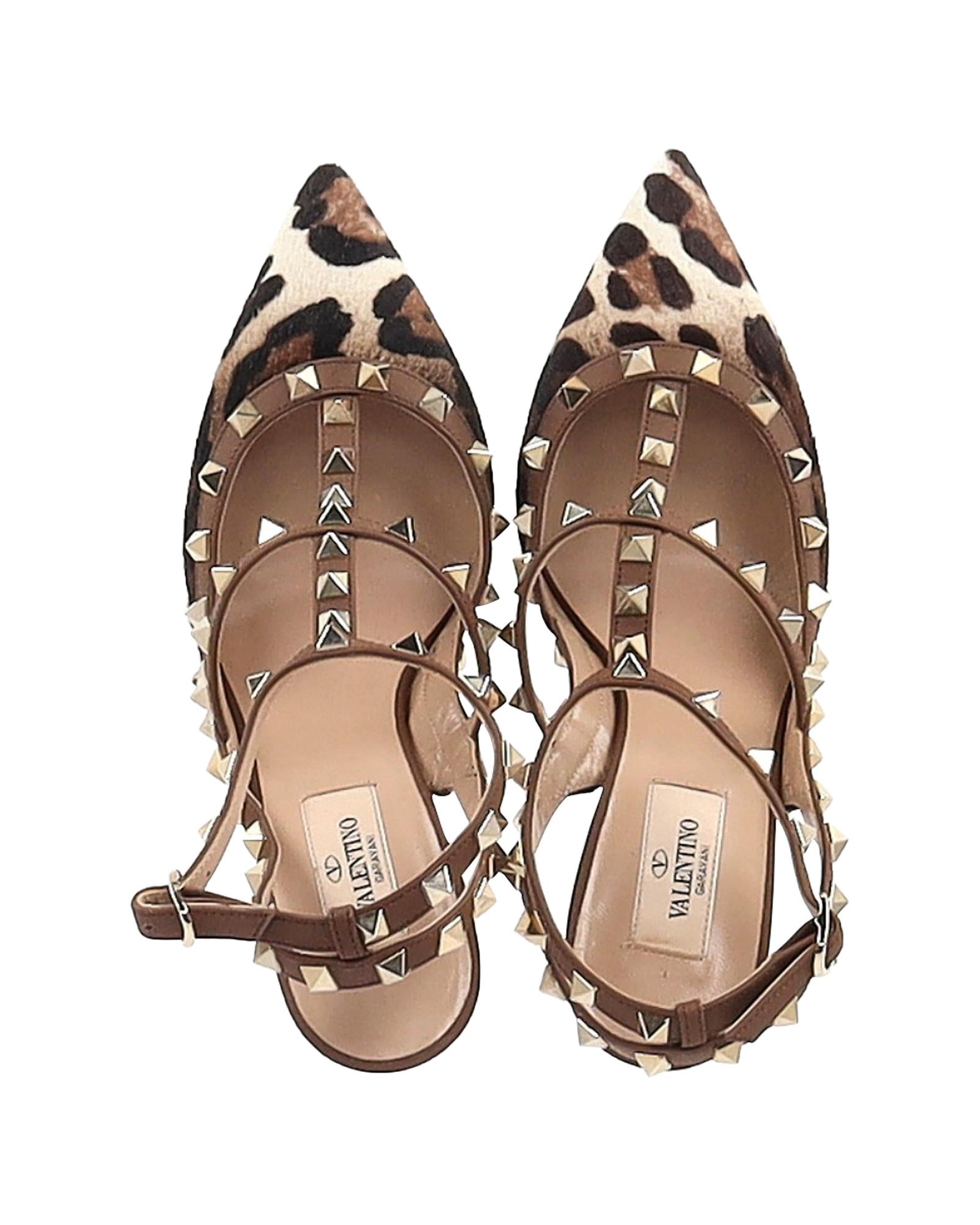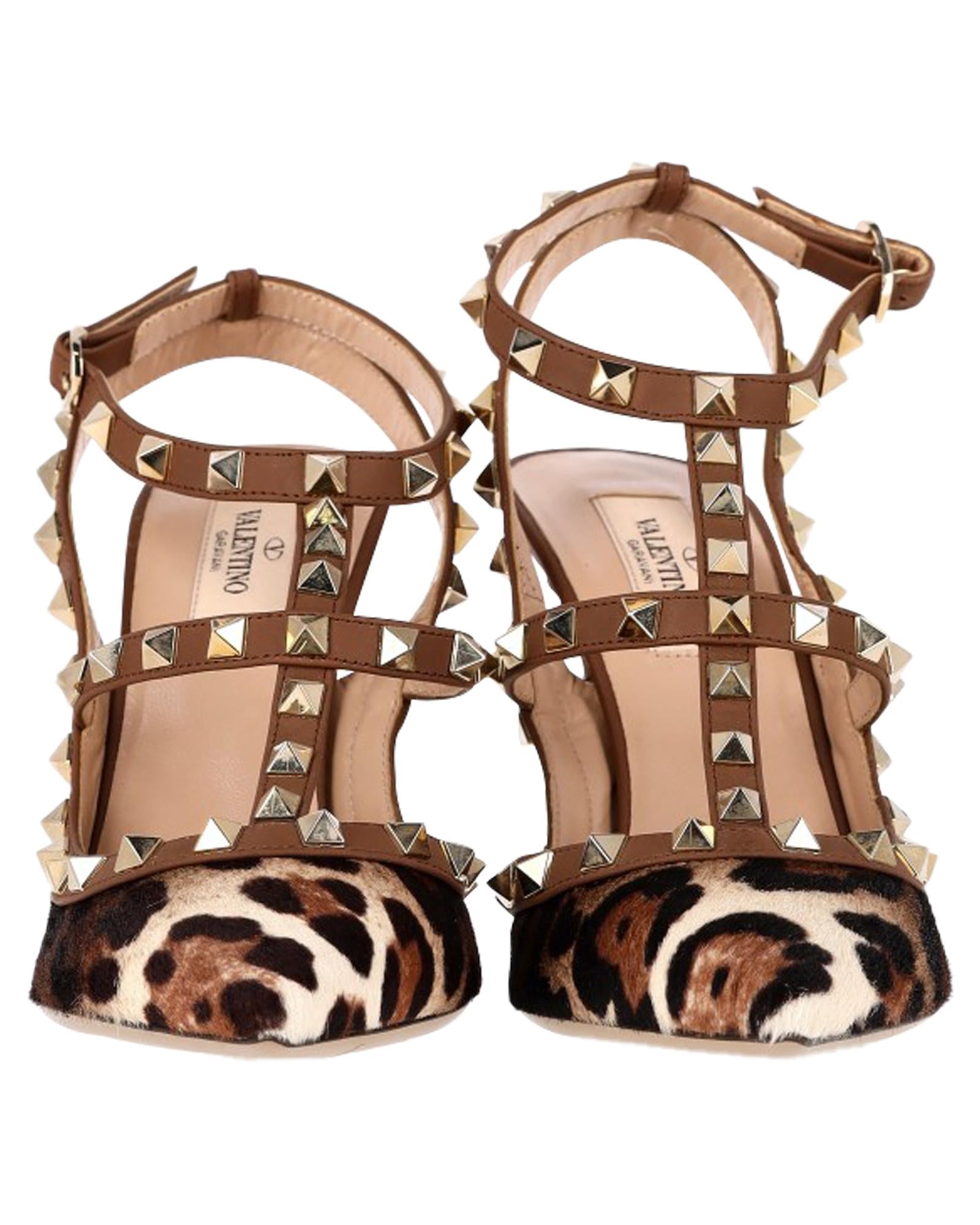 Pre-owned T-strap Heeled Sandals with Studded Detail and Buckle Closure