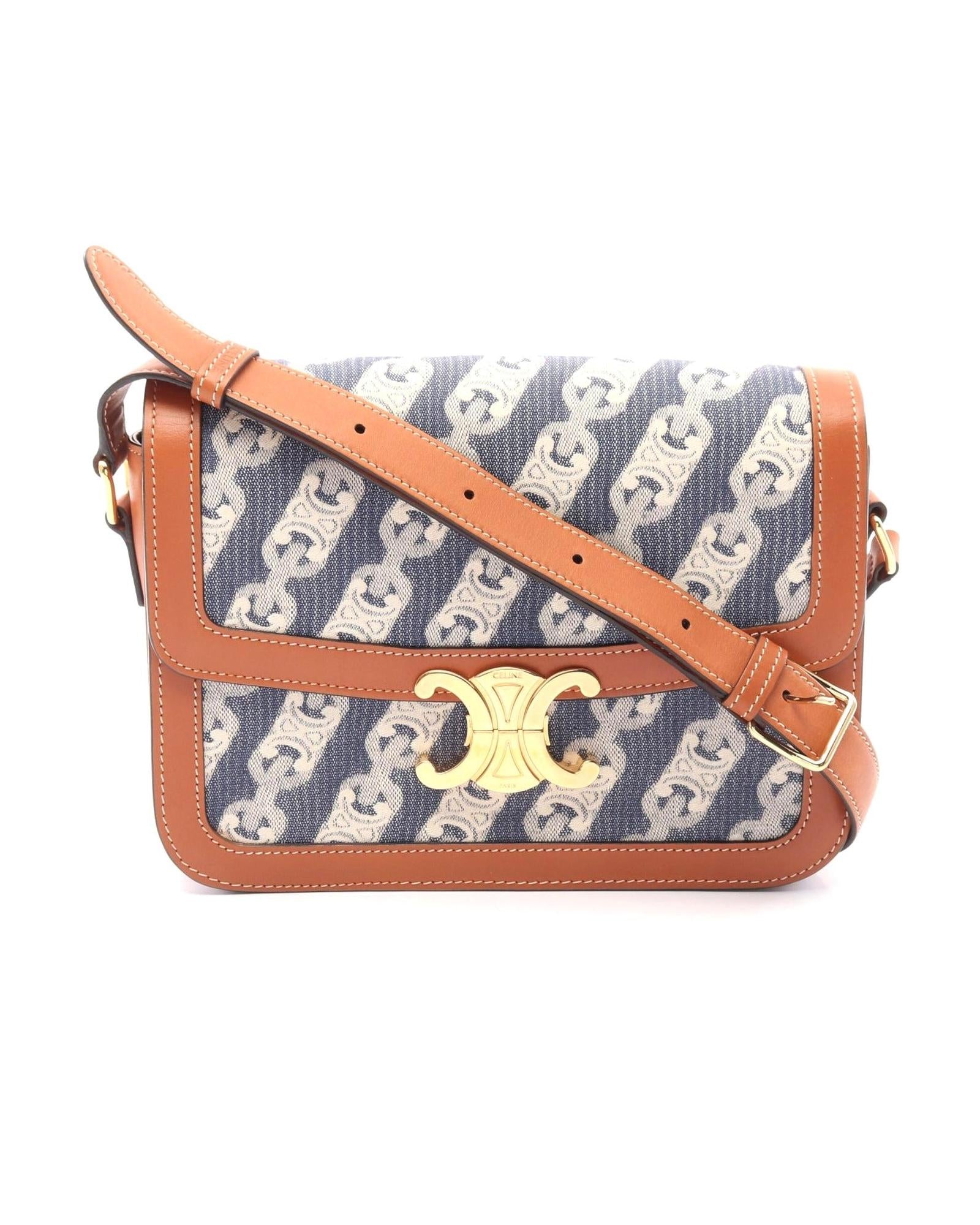 Pre-owned Stylish Patterned Textile and Smooth Leather Shoulder Bag an Elegant Crossbody Handbag