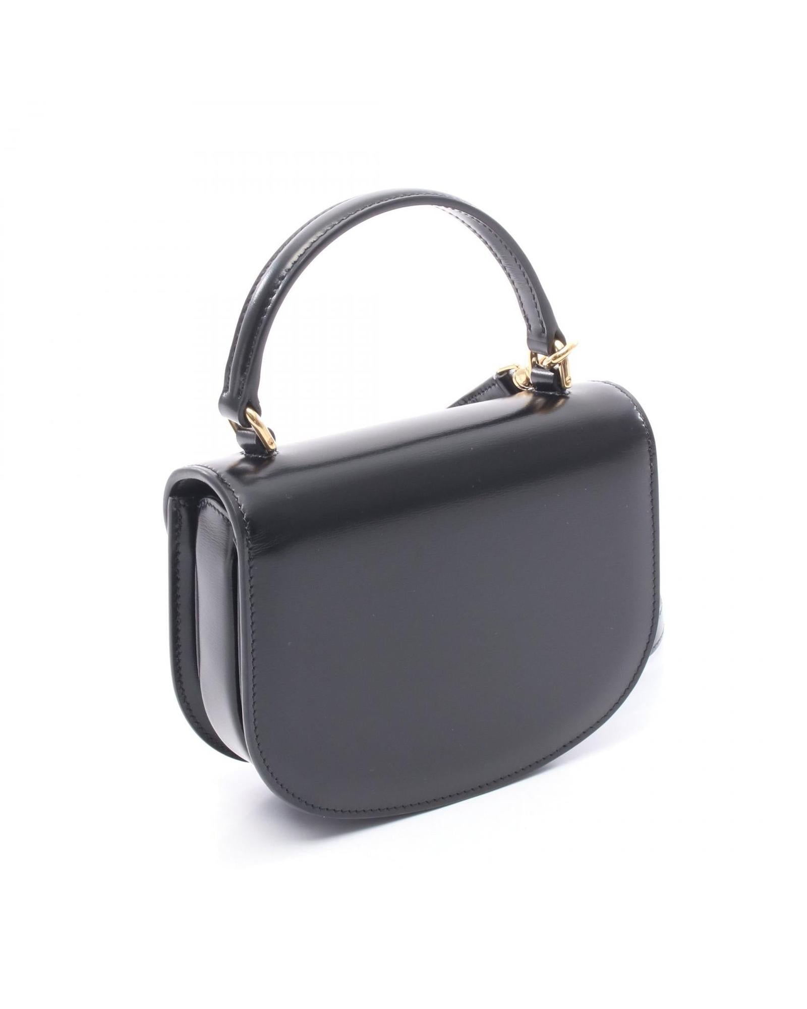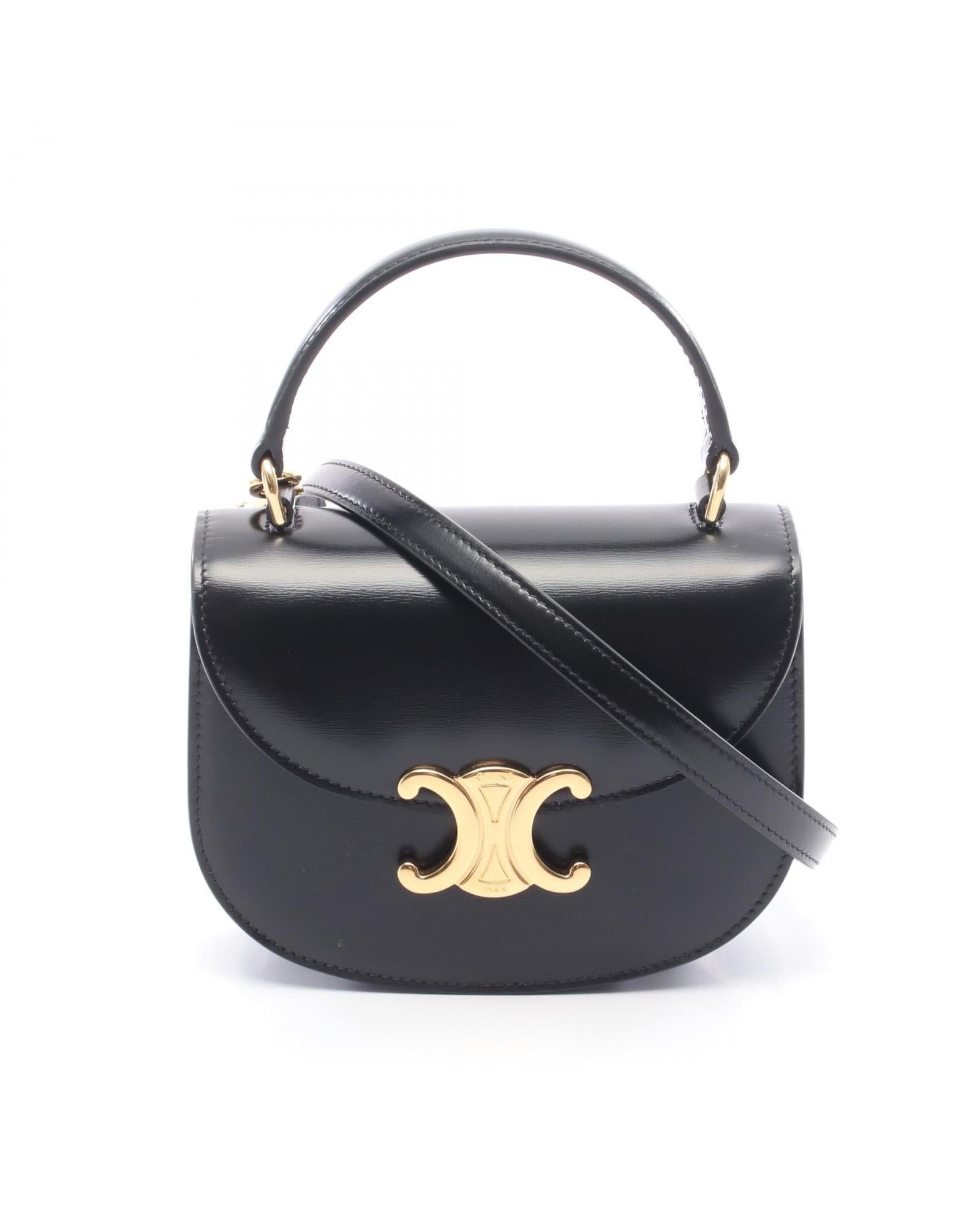 Pre-owned Elegant Round Leather Handbag with Top Handle and Adjustable Strap