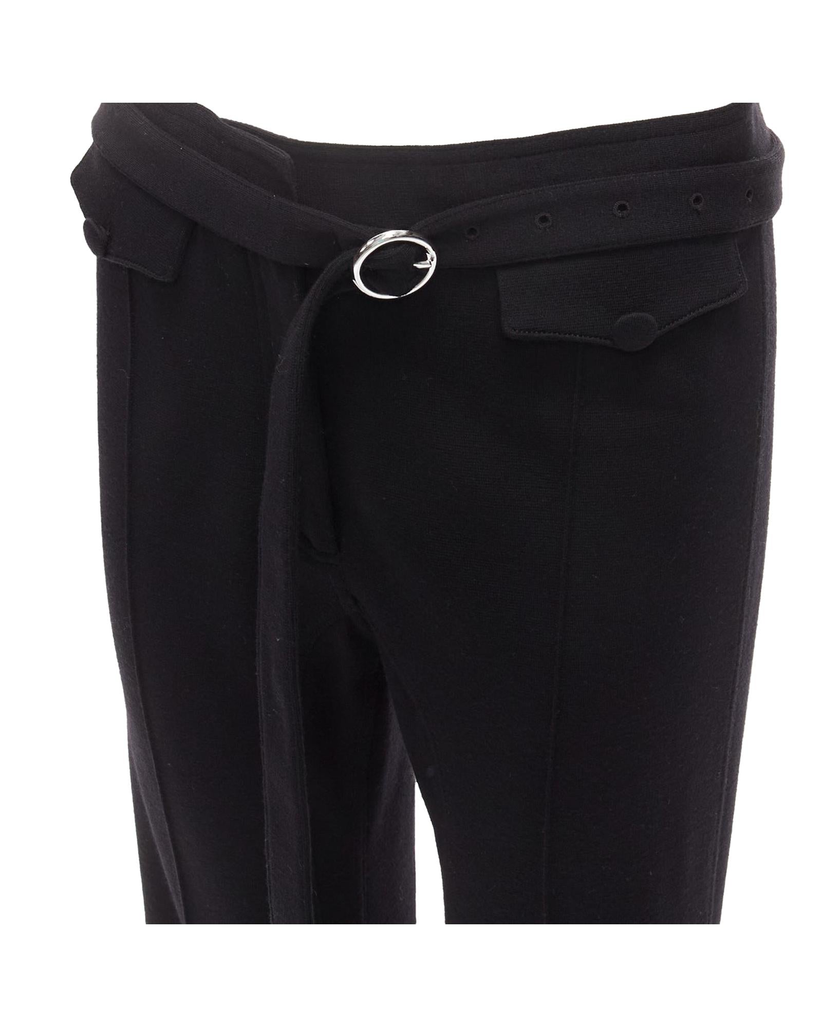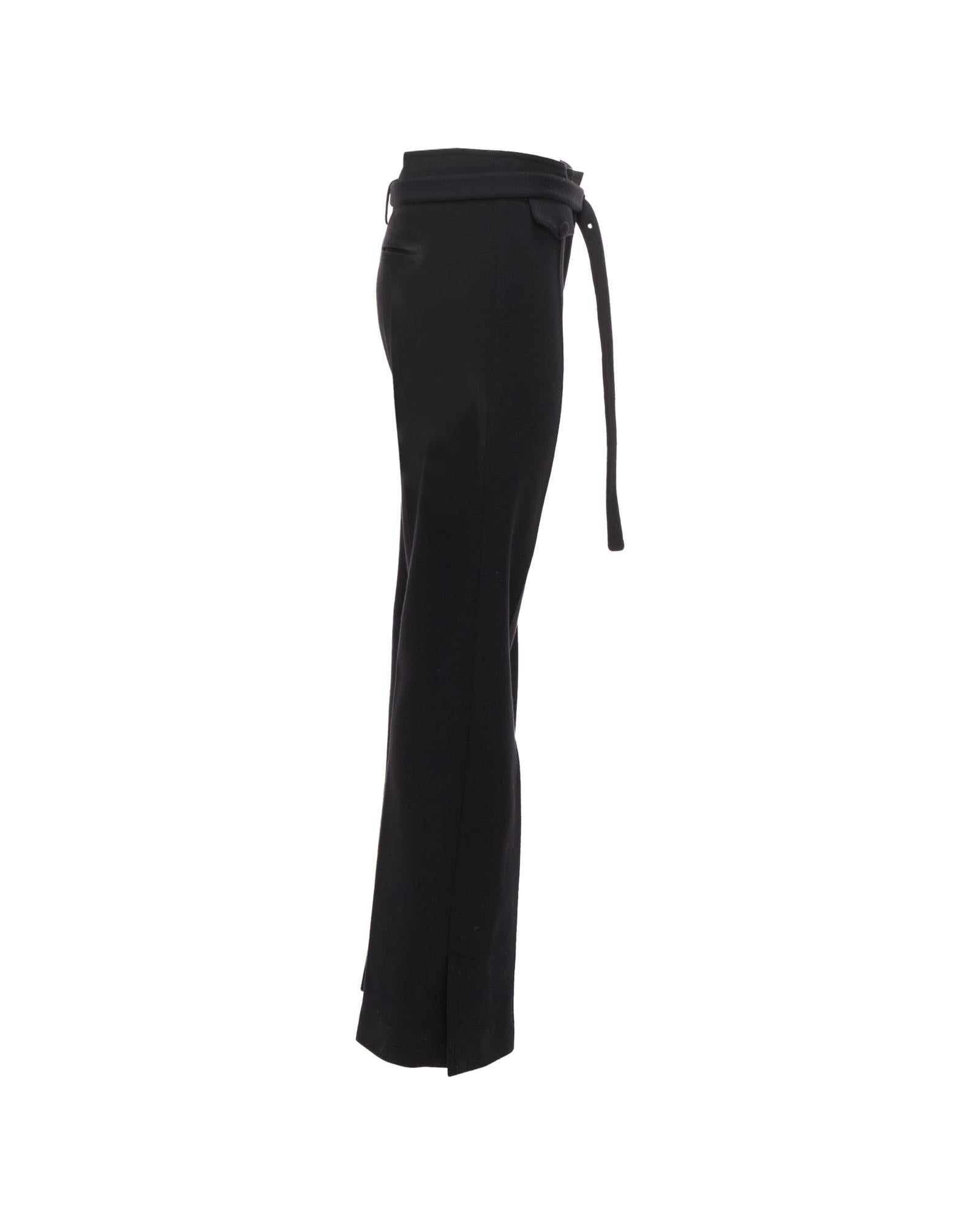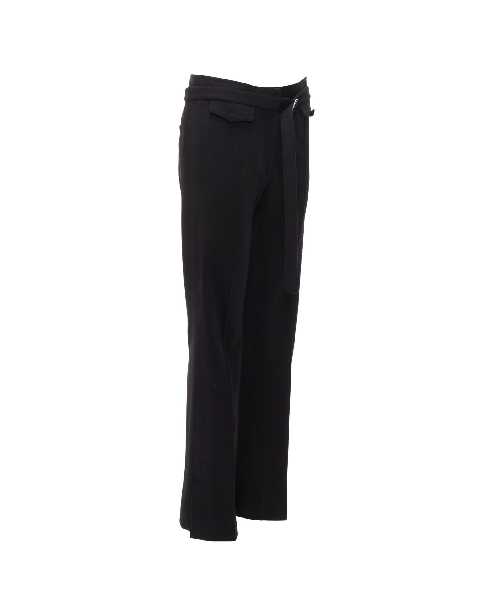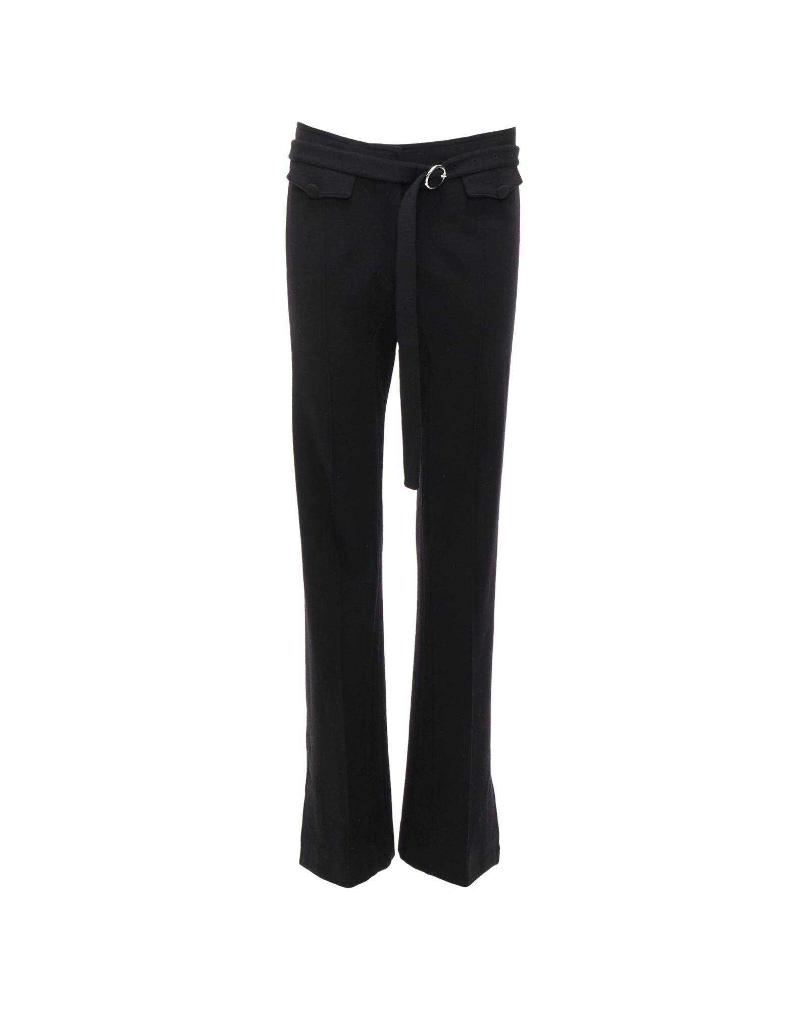 Pre-owned Belted High-Waisted Trousers with Button Detail and Bootcut Leg