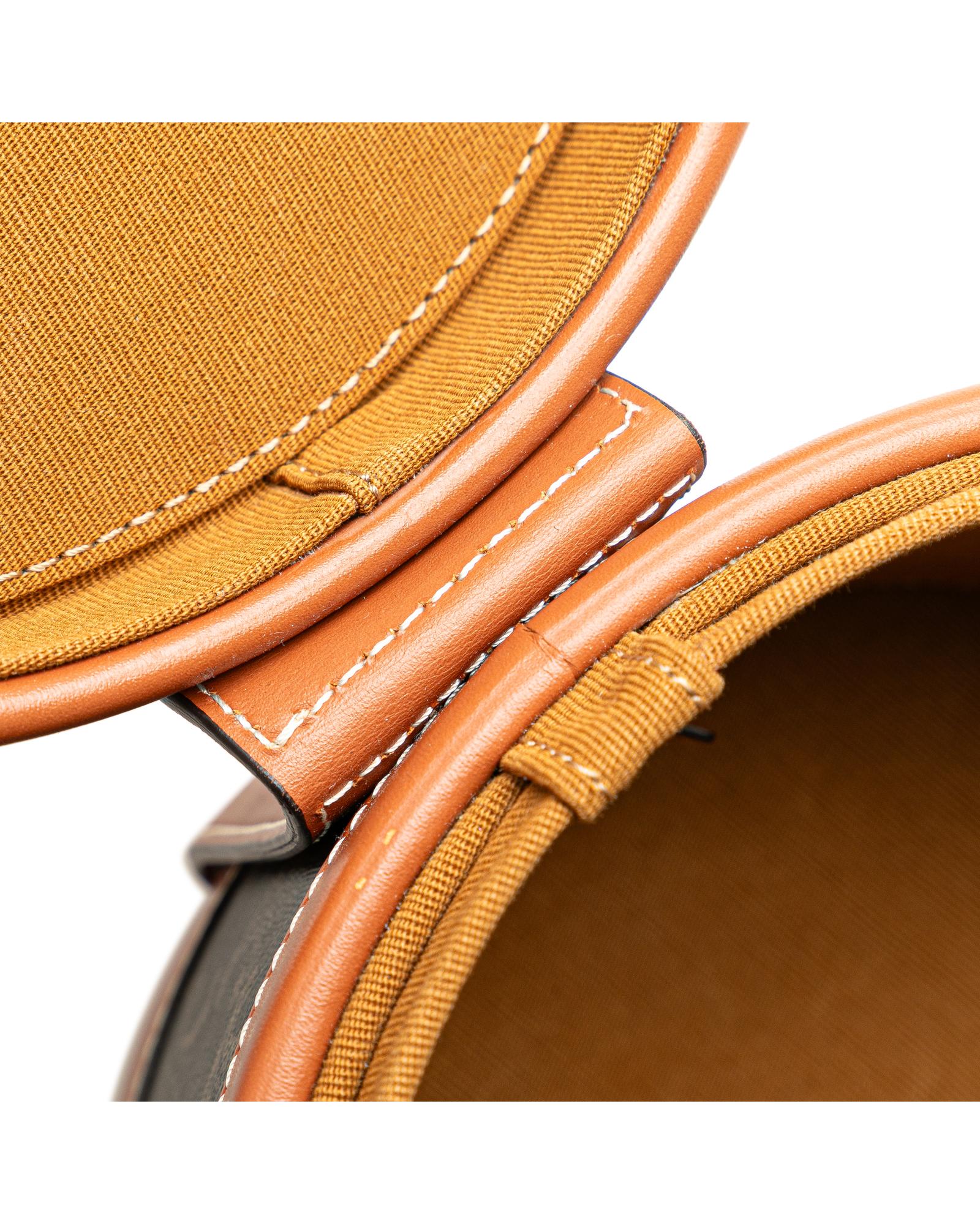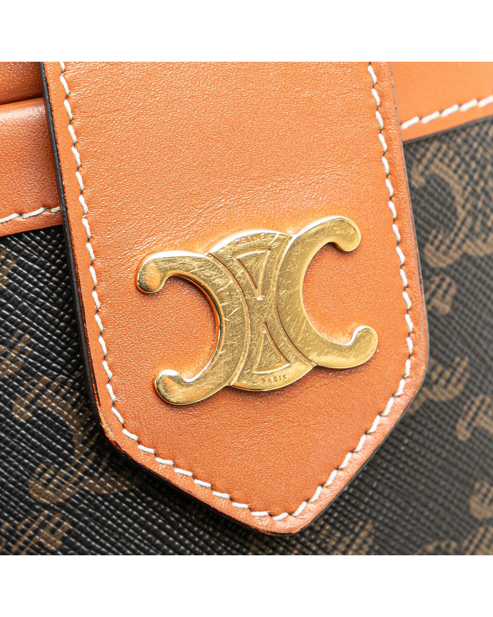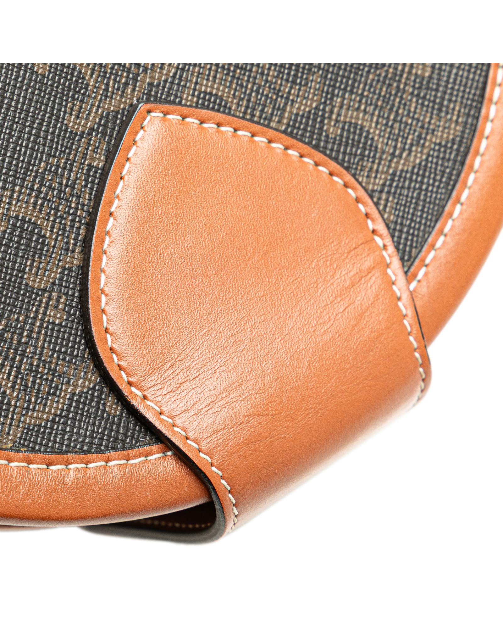 This crossbody bag features a coated canvas body with leather trim an adjustable flat leather strap and a top strap with magnetic snap closure.Brand: Celine Vintage