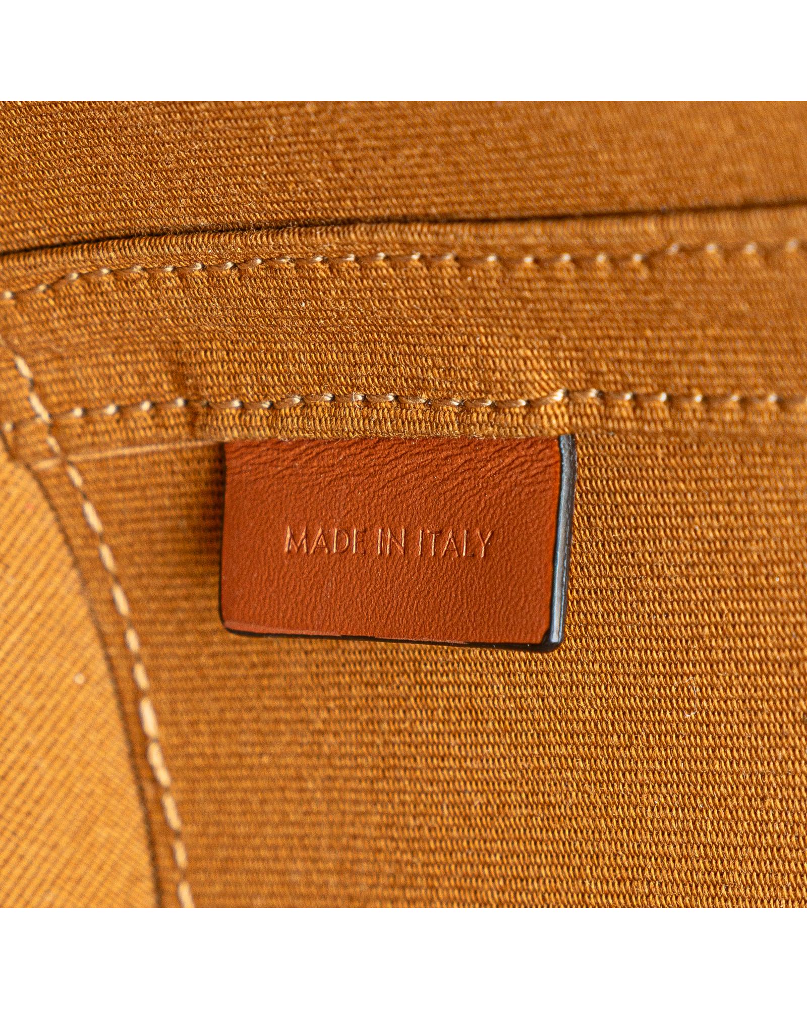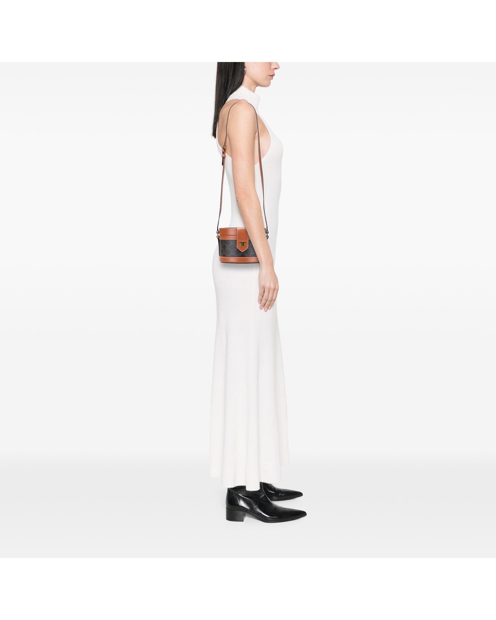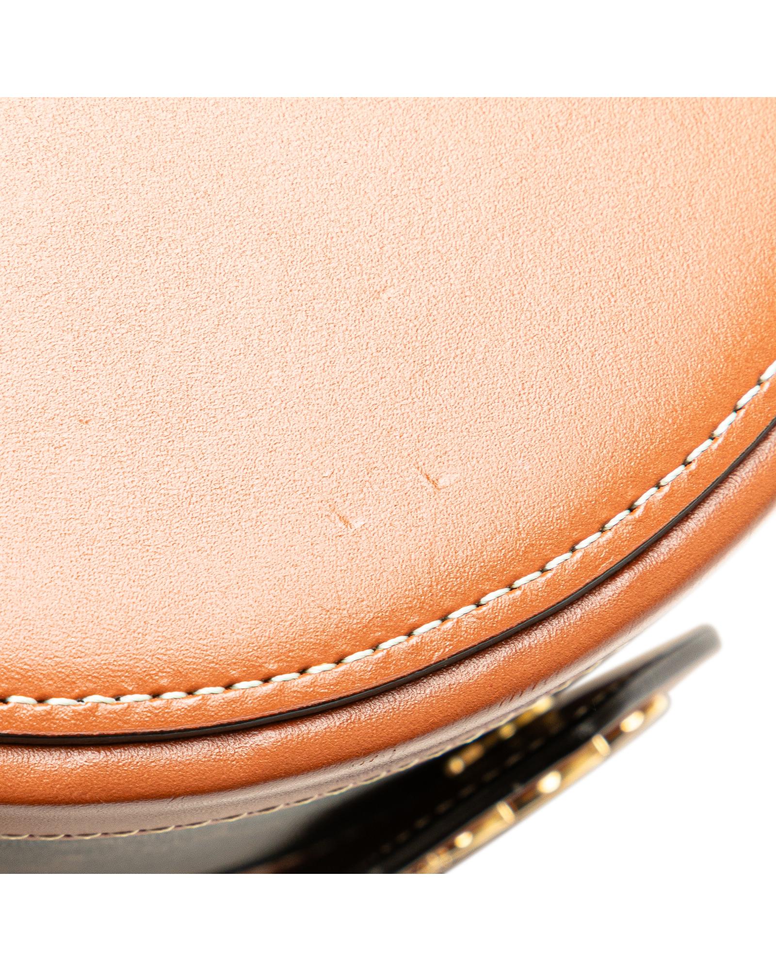 This crossbody bag features a coated canvas body with leather trim an adjustable flat leather strap and a top strap with magnetic snap closure.Brand: Celine Vintage