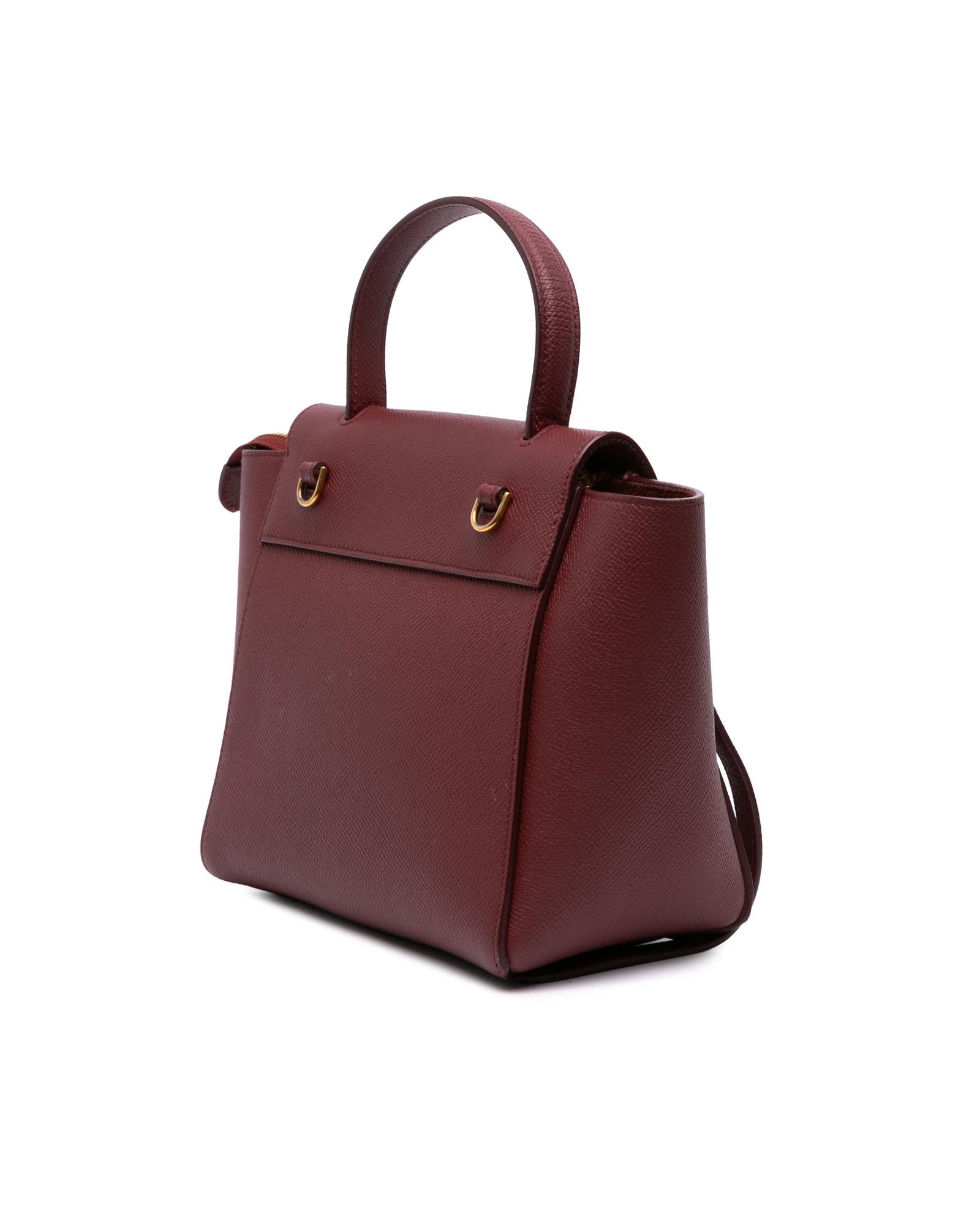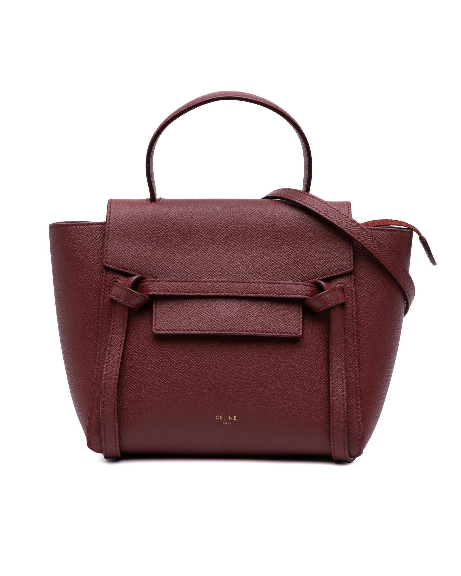 The Nano Belt Bag features a leather body a flat leather handle a detachable flat leather strap a front flap with magnetic snap closure and a top zip closure.Brand: Celine Vintage