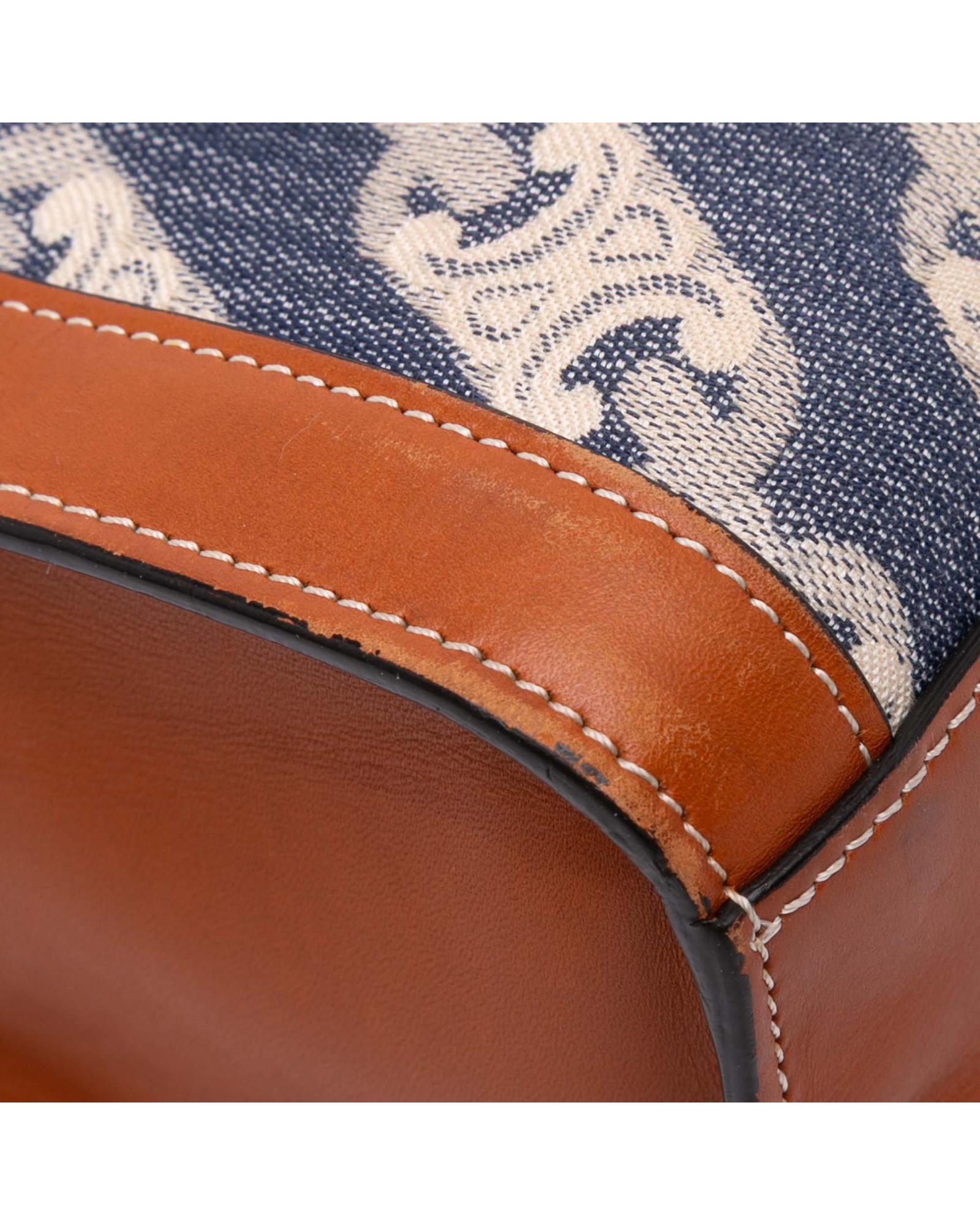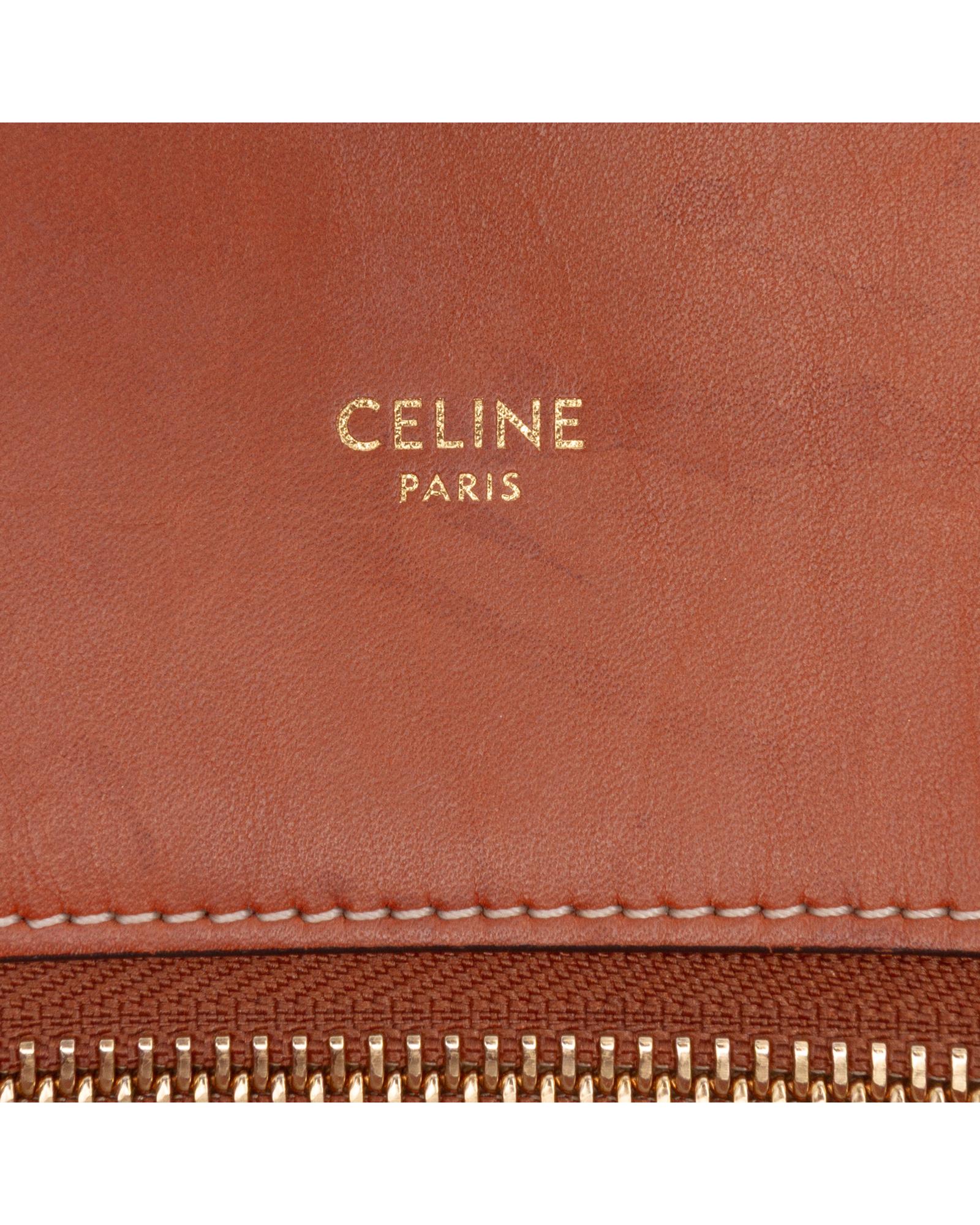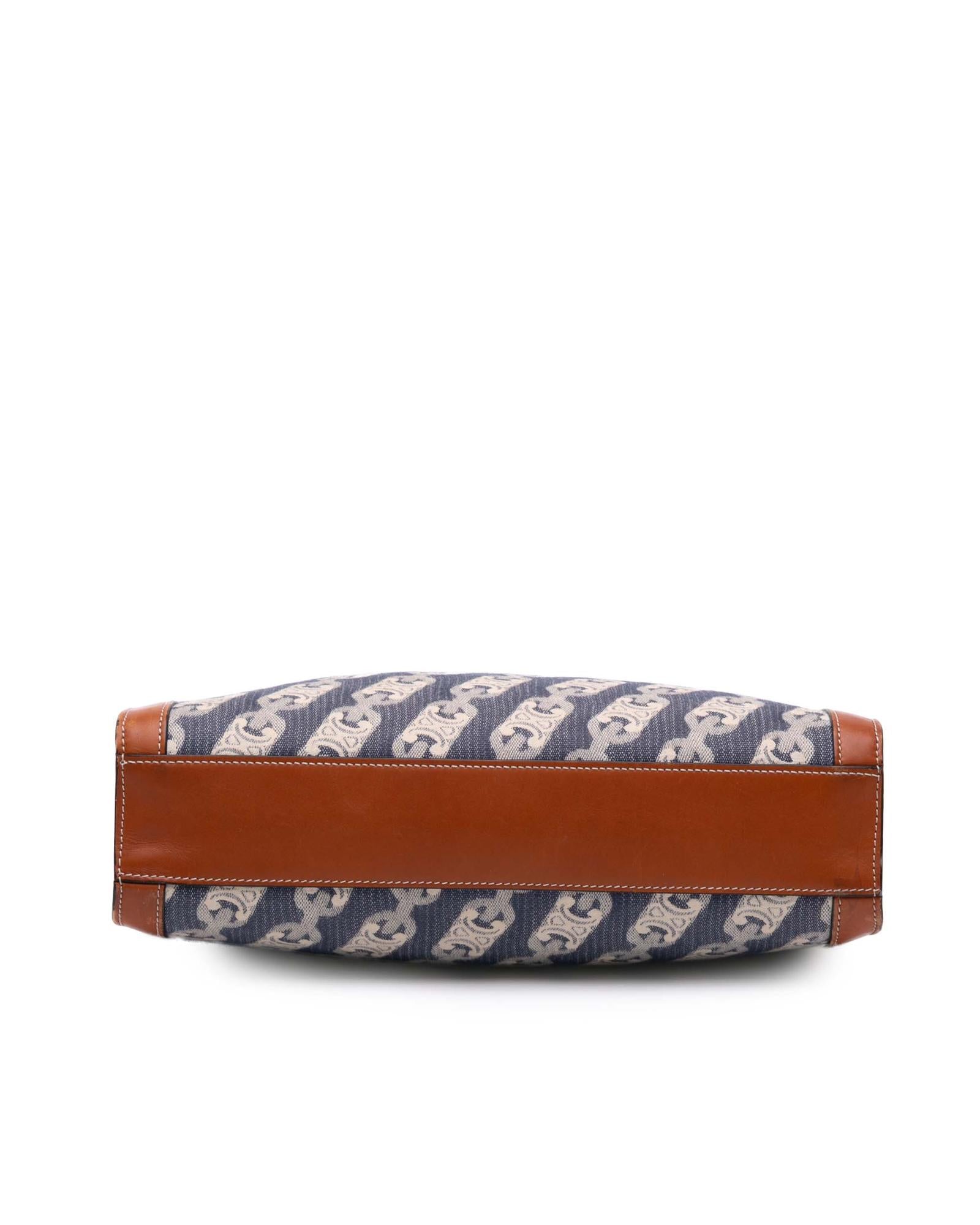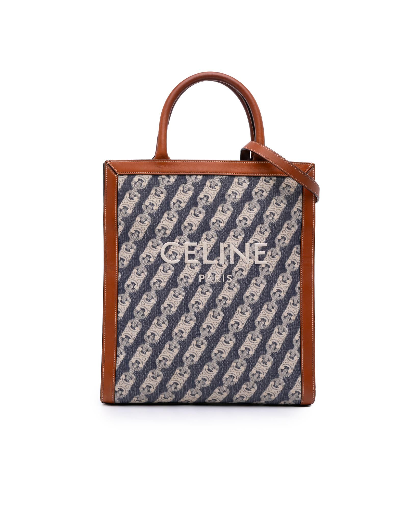 The Vertical Cabas features a canvas body with leather trim rolled leather handles a detachable flat leather shoulder strap an open top and an interior zip pocket.Brand: Celine Vintage