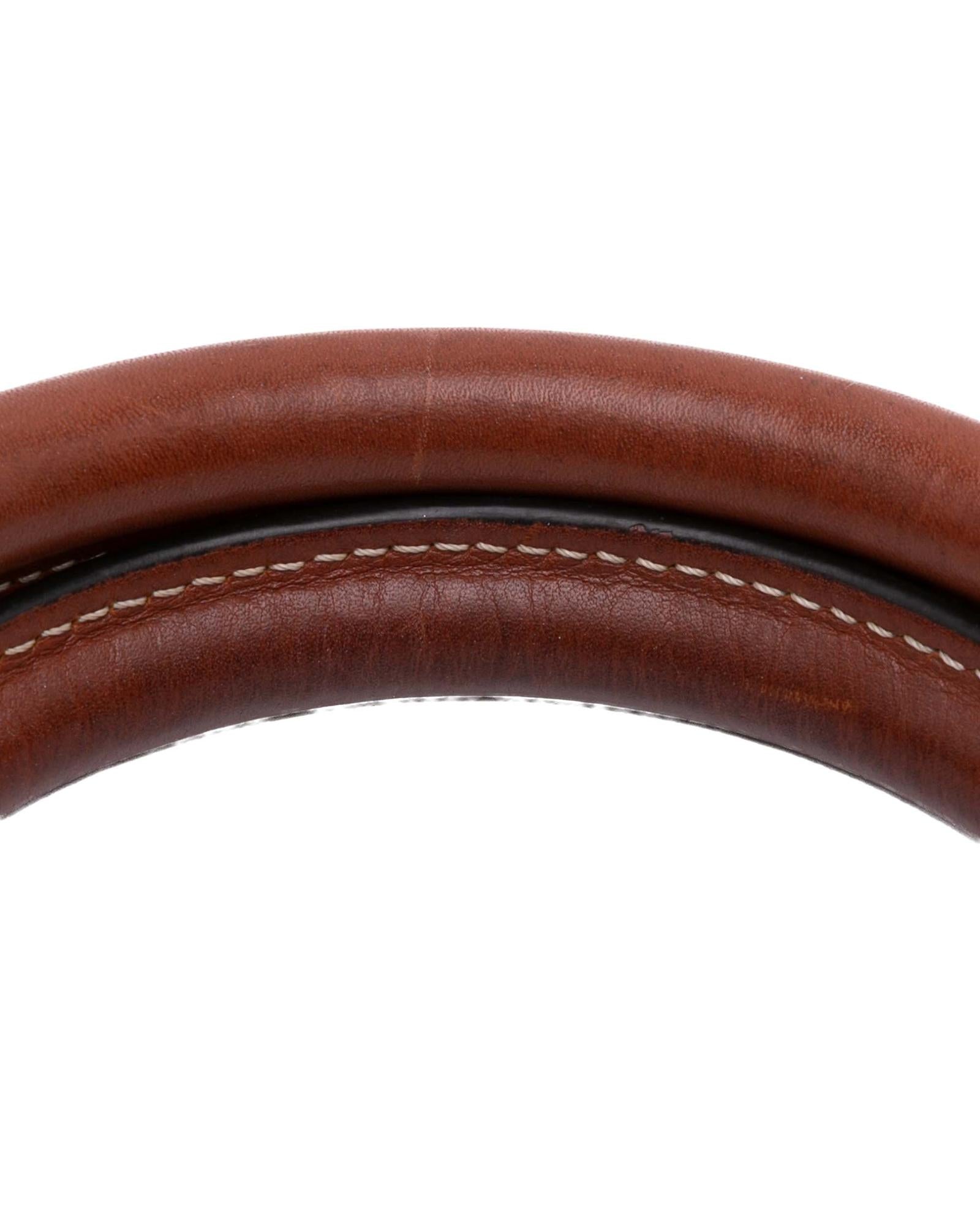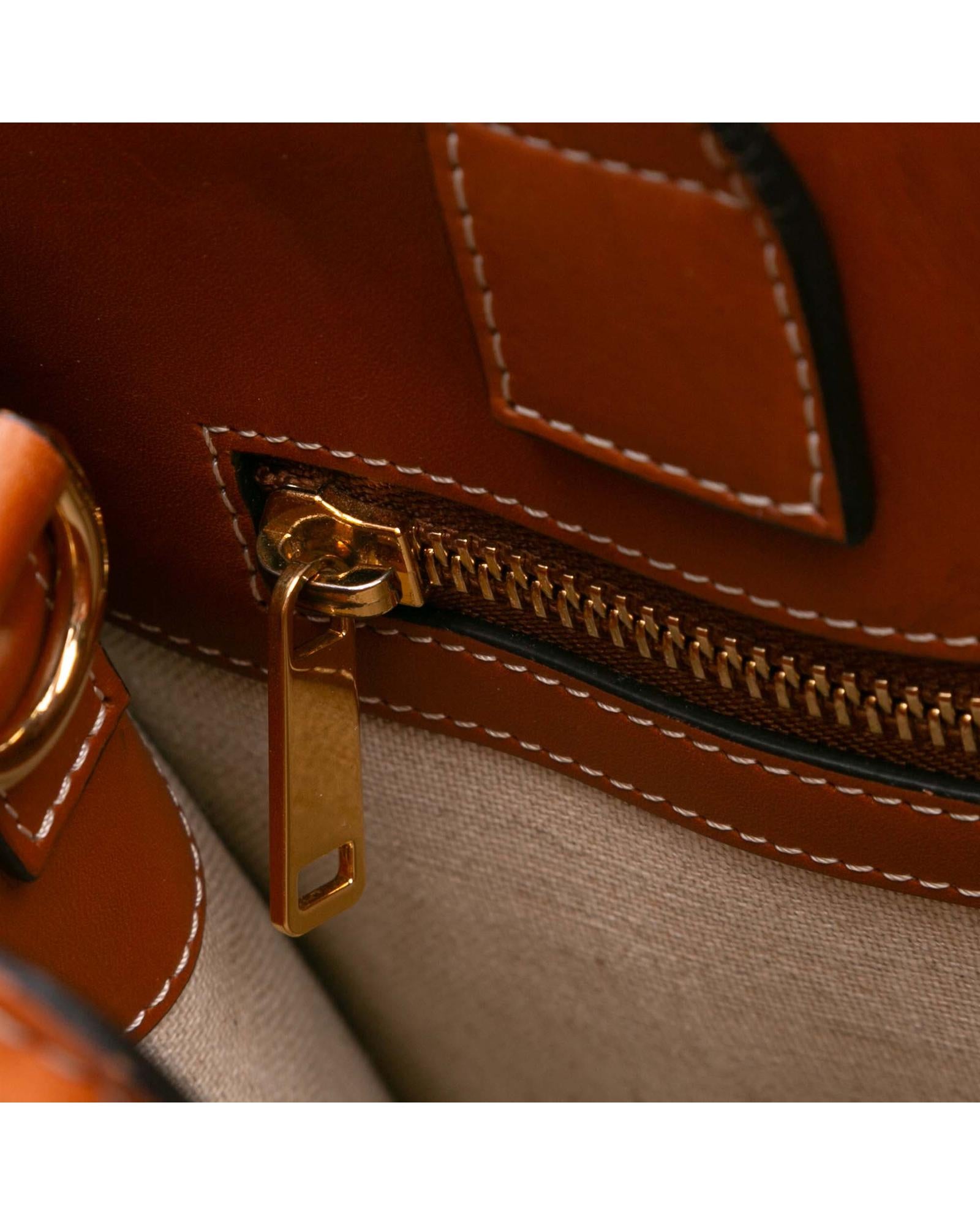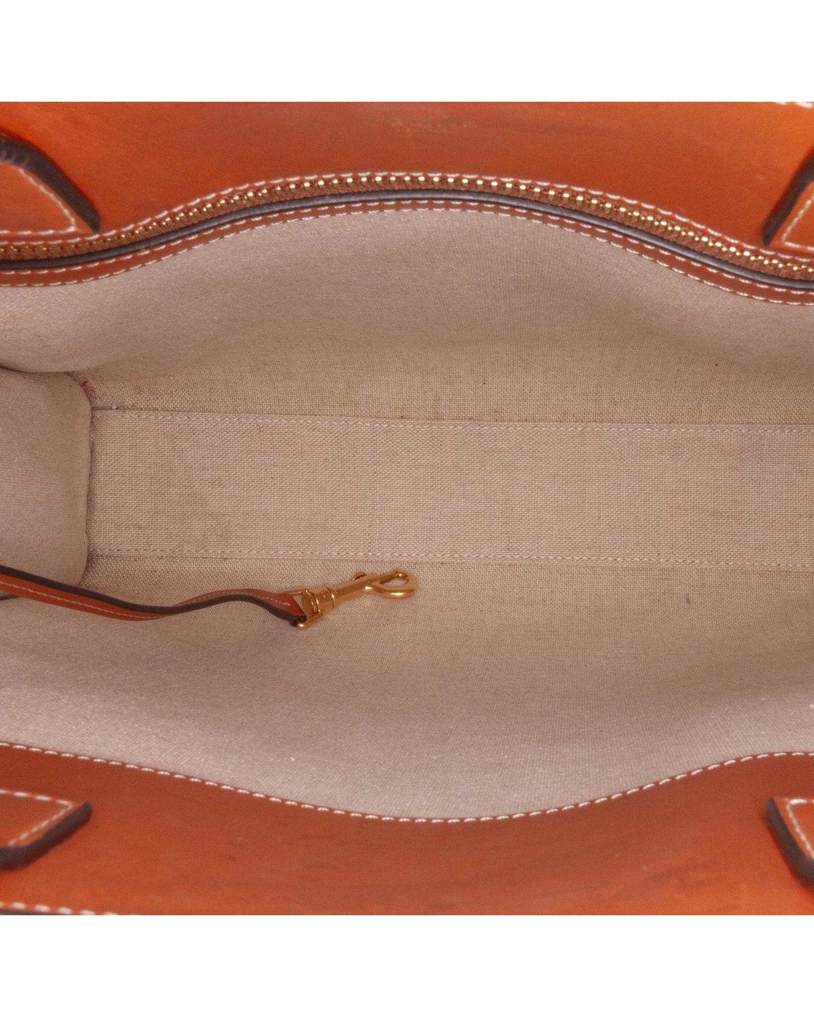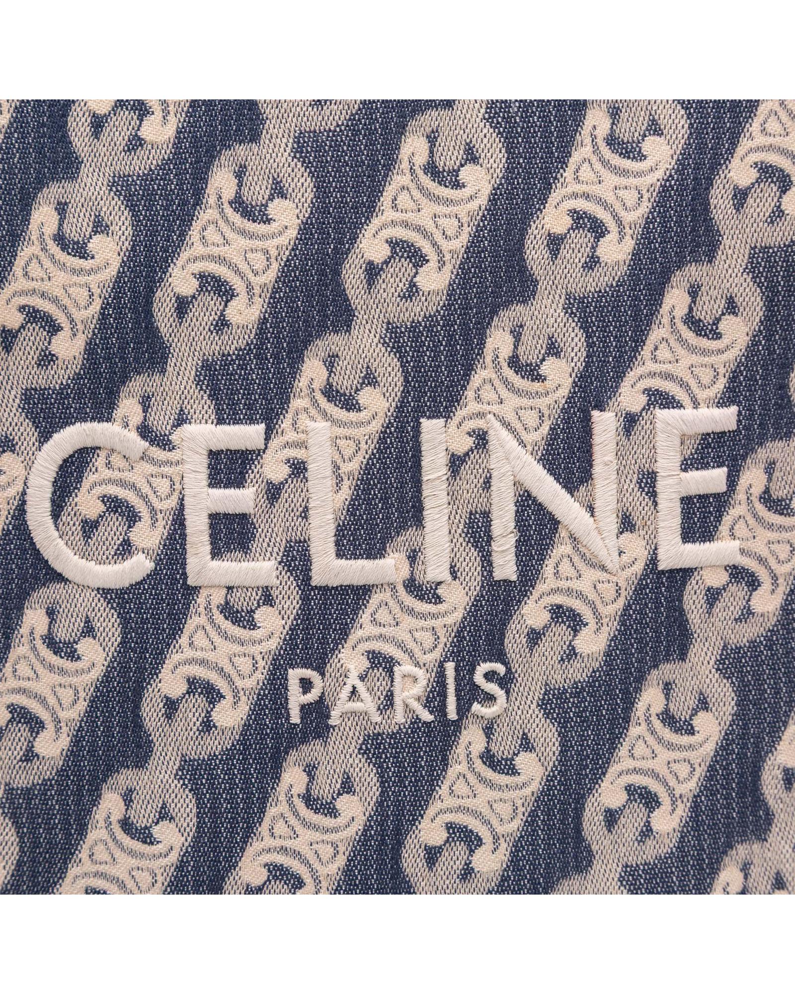 The Vertical Cabas features a canvas body with leather trim rolled leather handles a detachable flat leather shoulder strap an open top and an interior zip pocket.Brand: Celine Vintage
