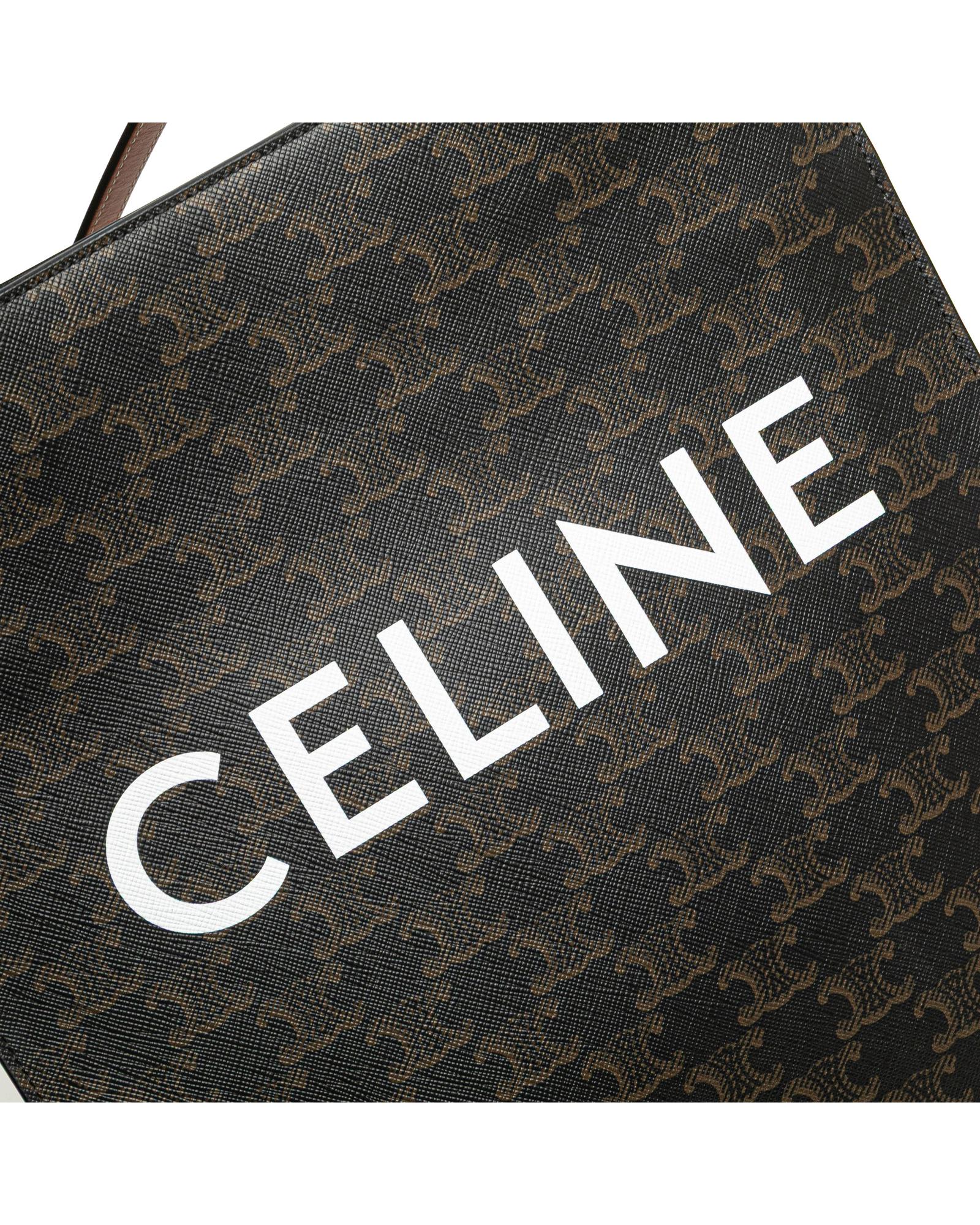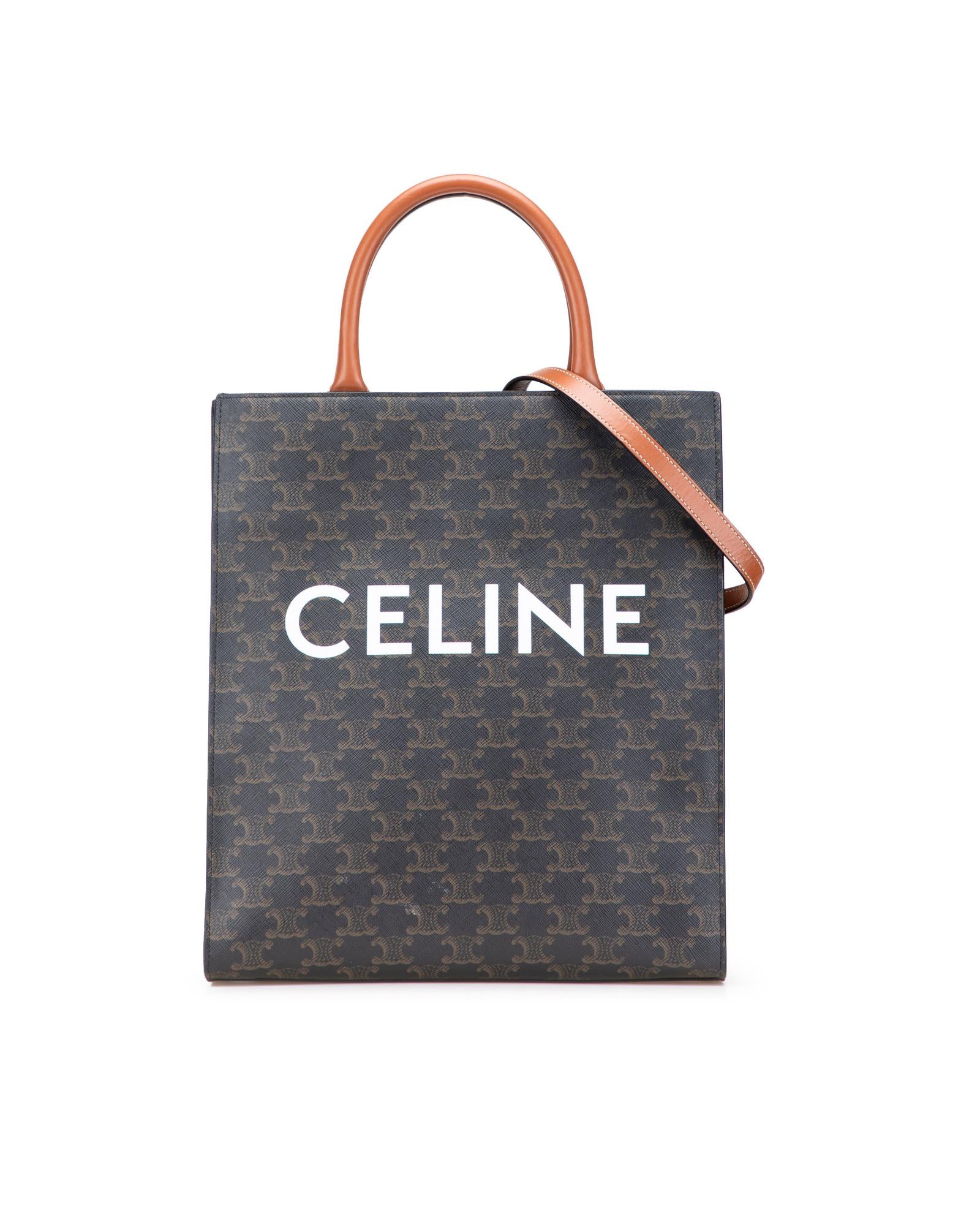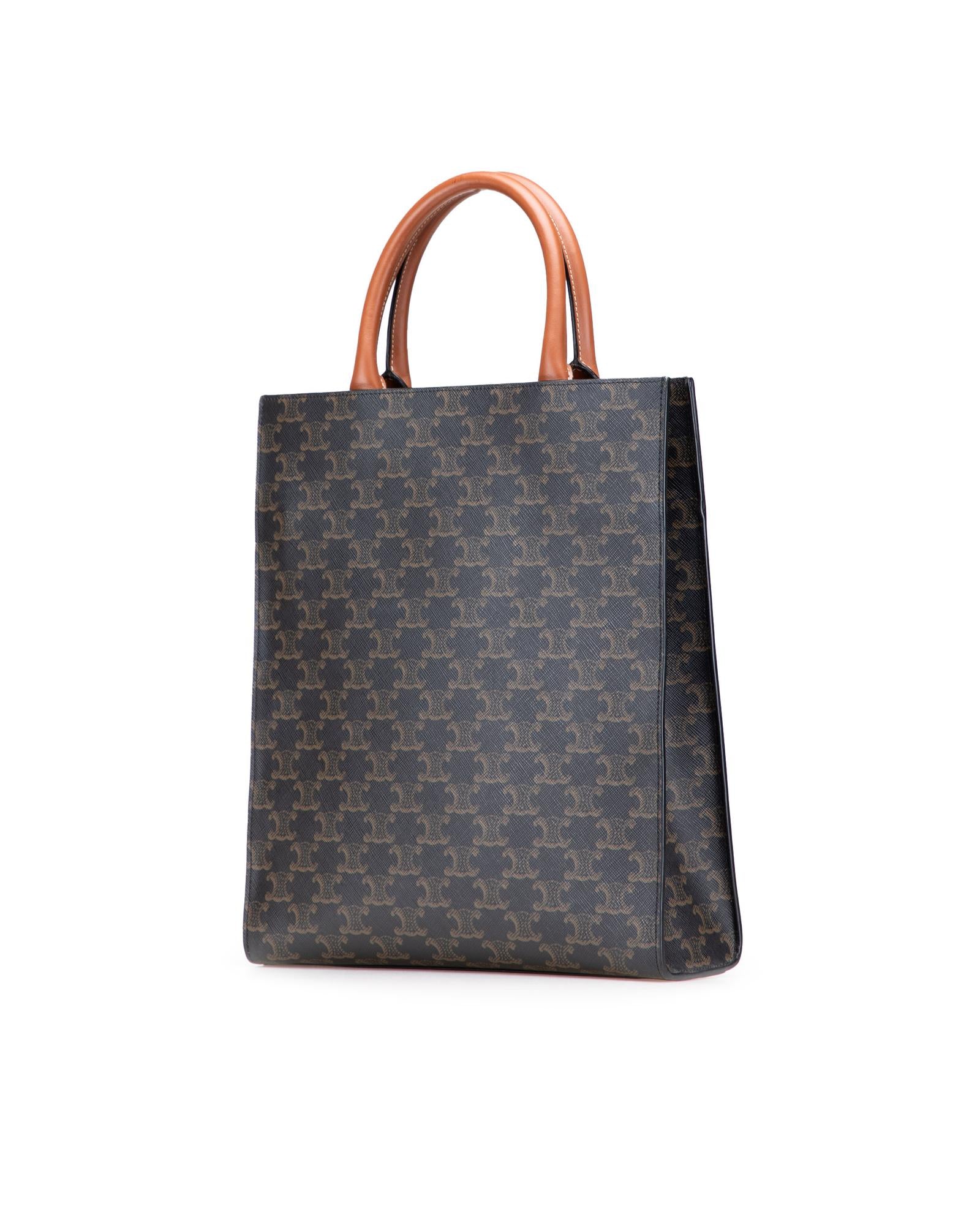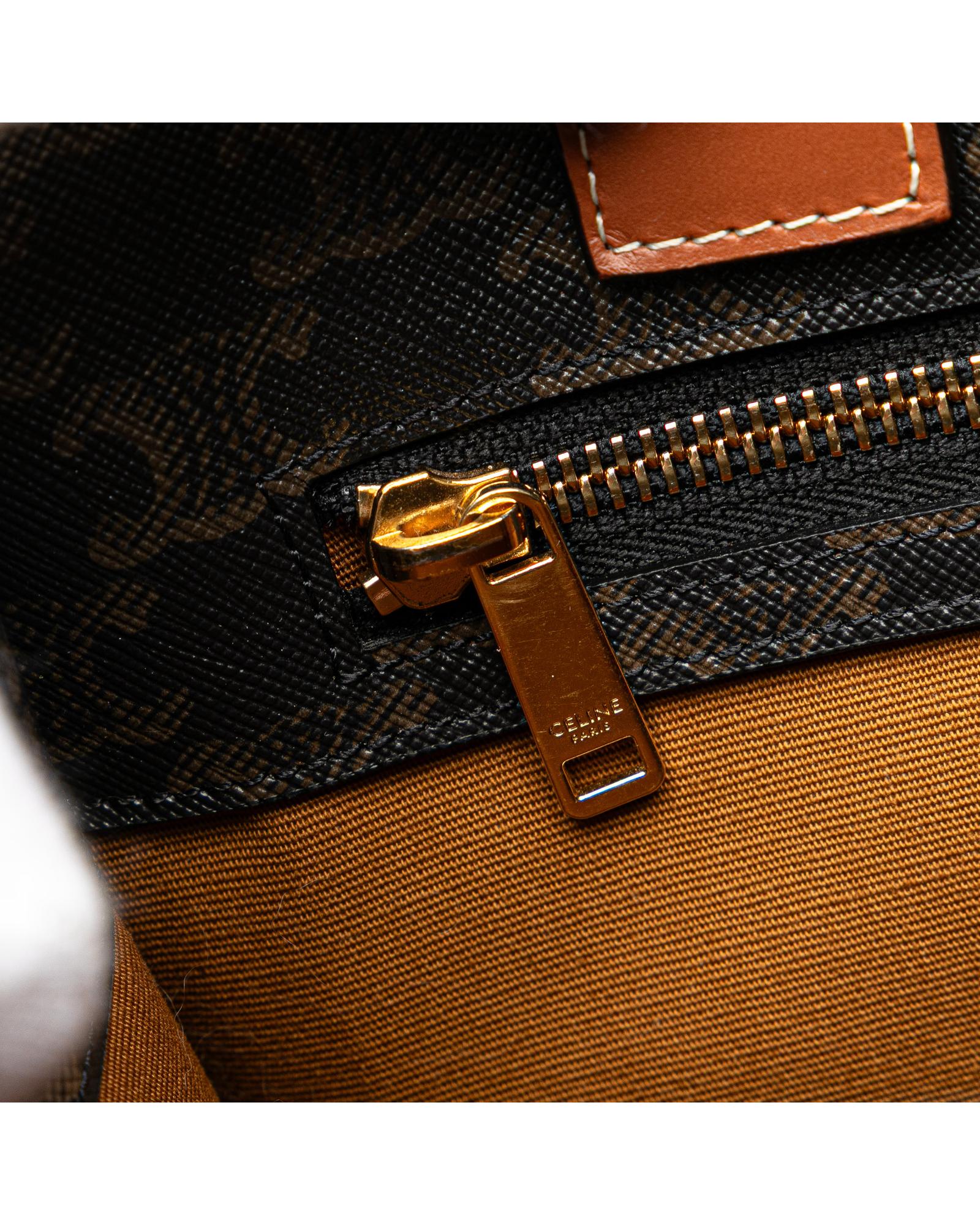 The Vertical Cabas Tote features a coated canvas body rolled leather handles a flat leather strap an open top and an interior zip pocket.Brand: Celine Vintage