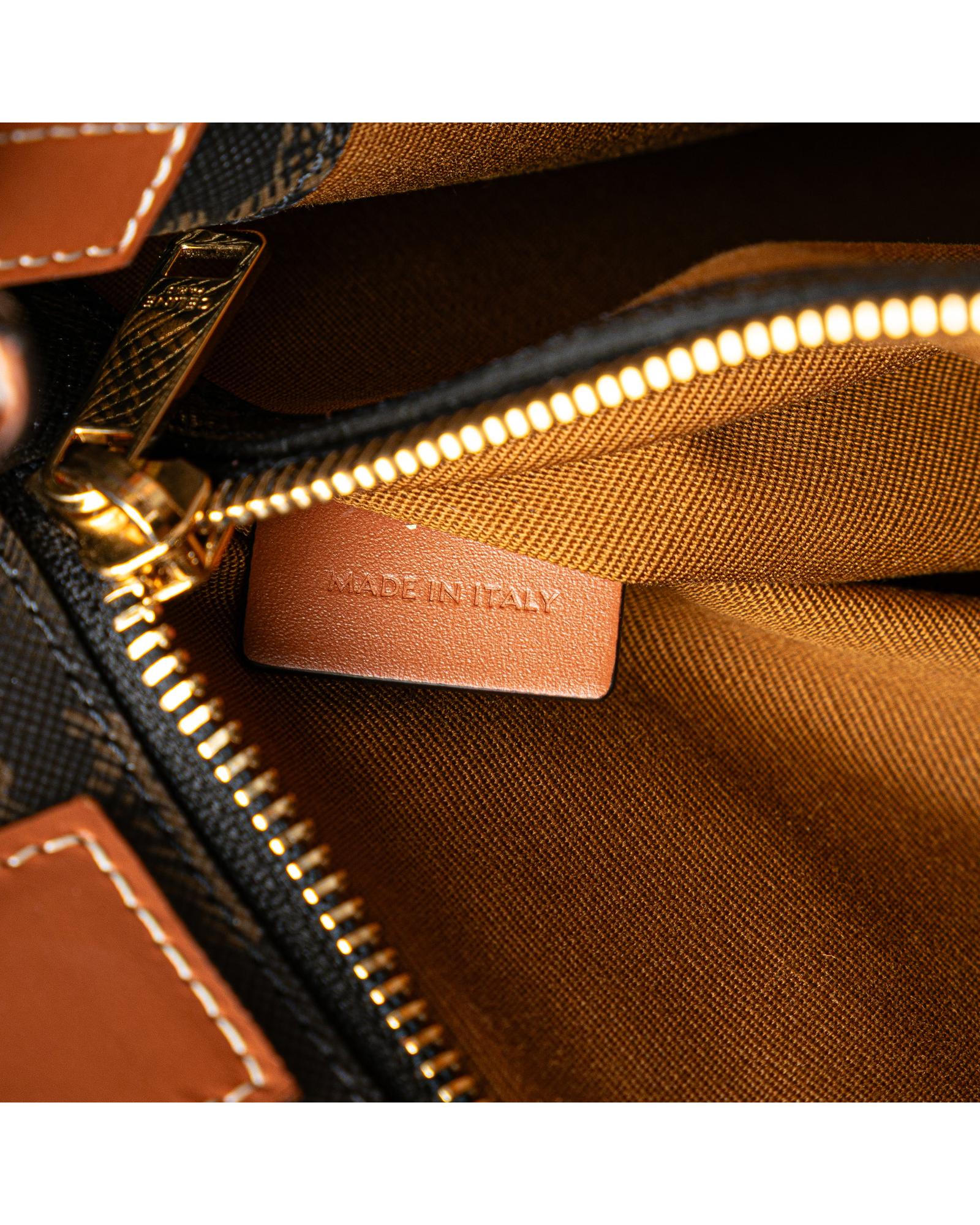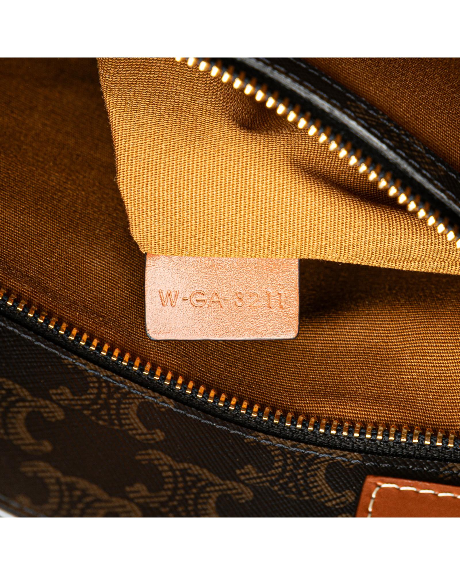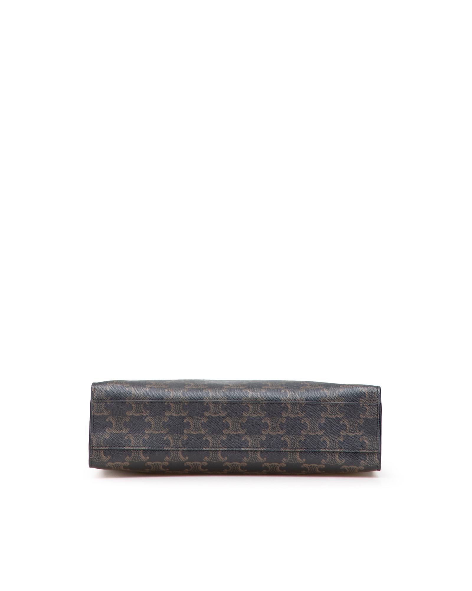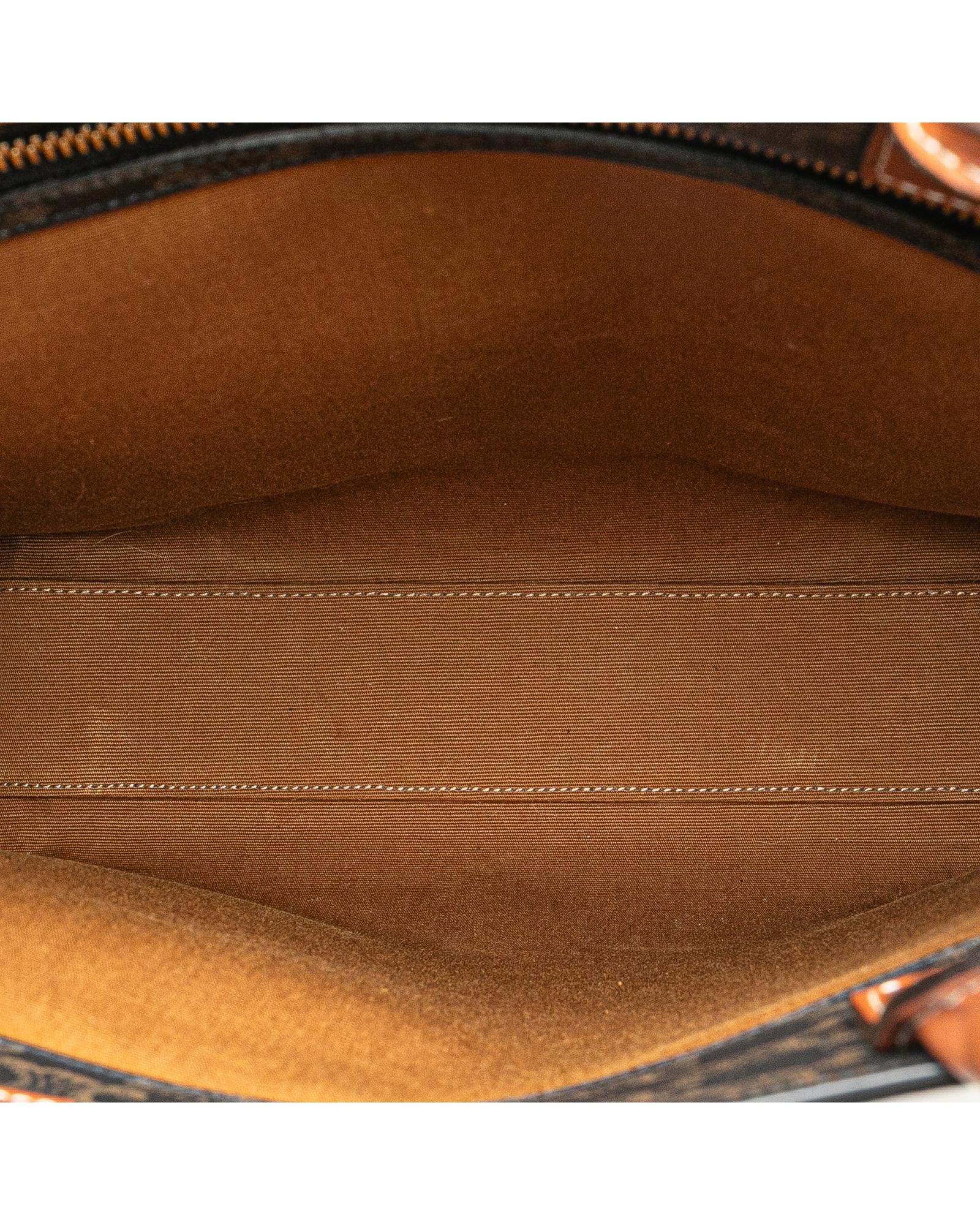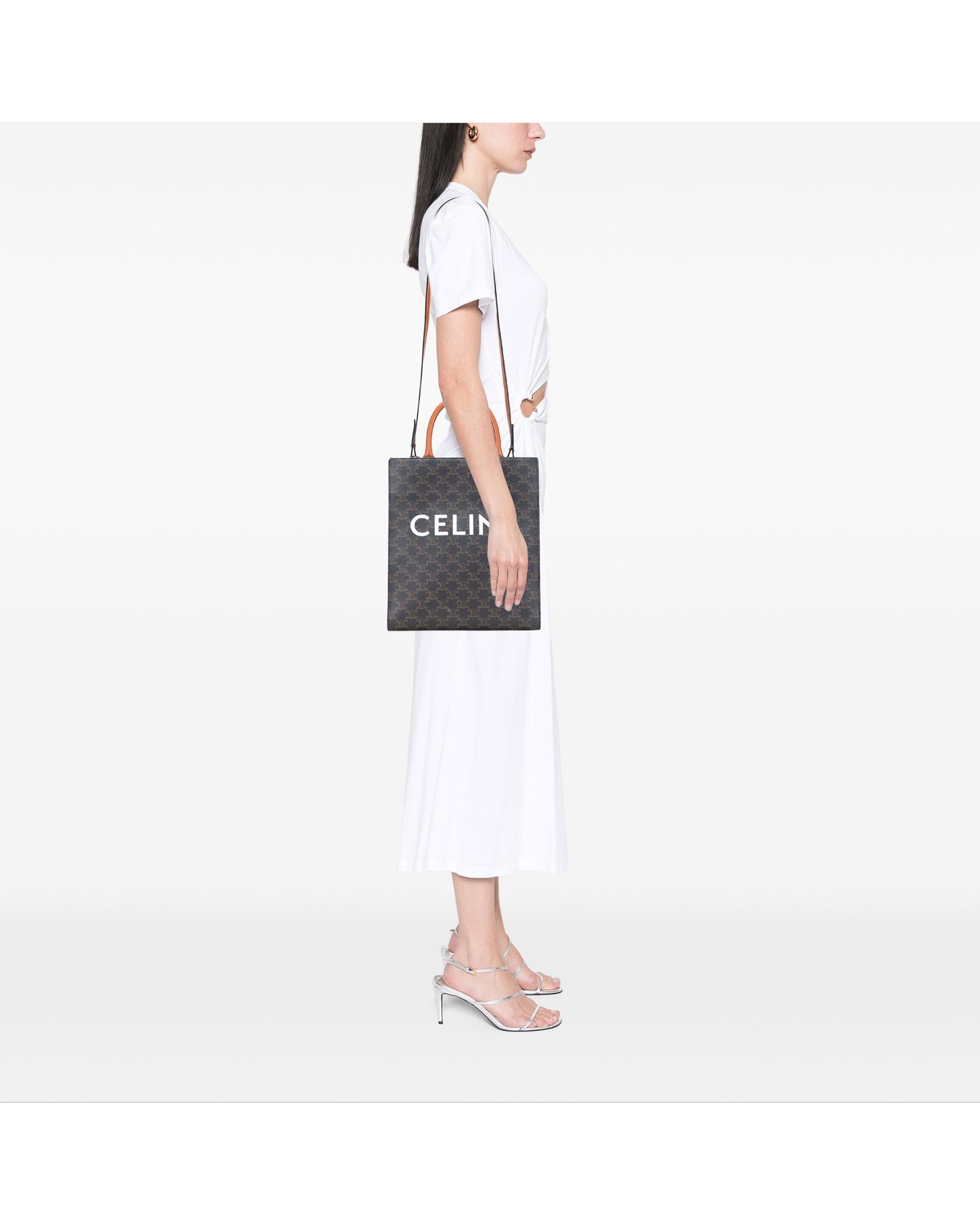 The Vertical Cabas Tote features a coated canvas body rolled leather handles a flat leather strap an open top and an interior zip pocket.Brand: Celine Vintage