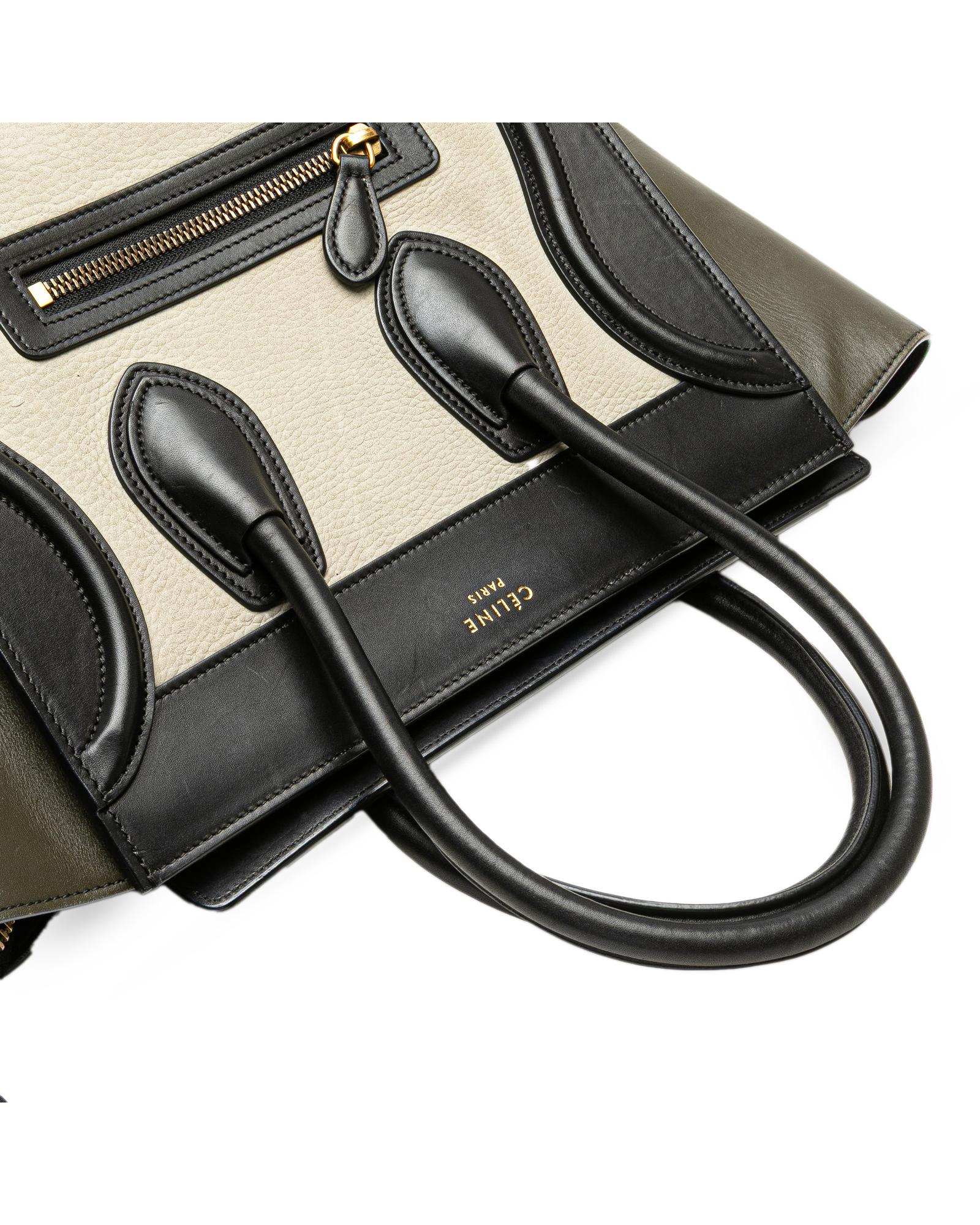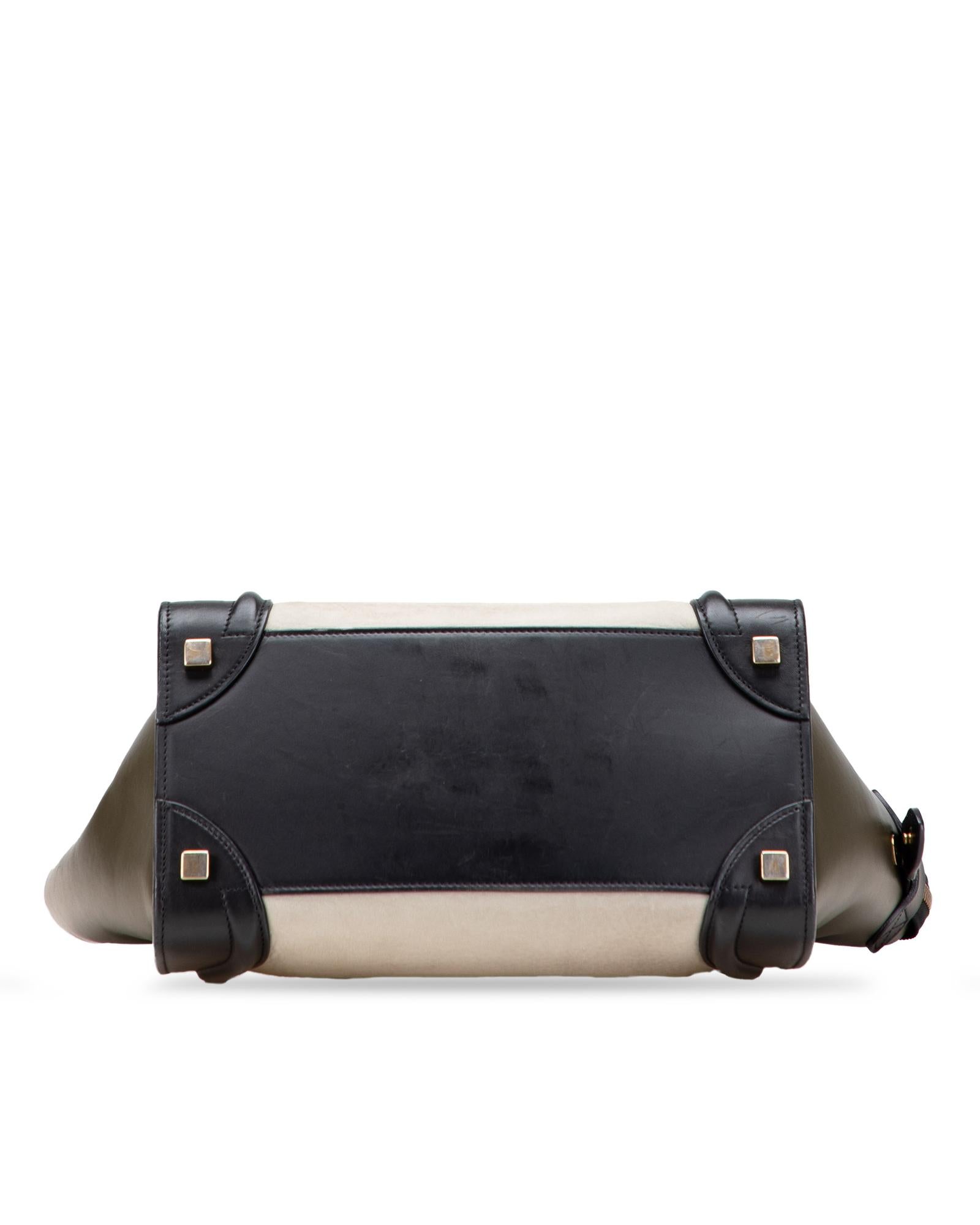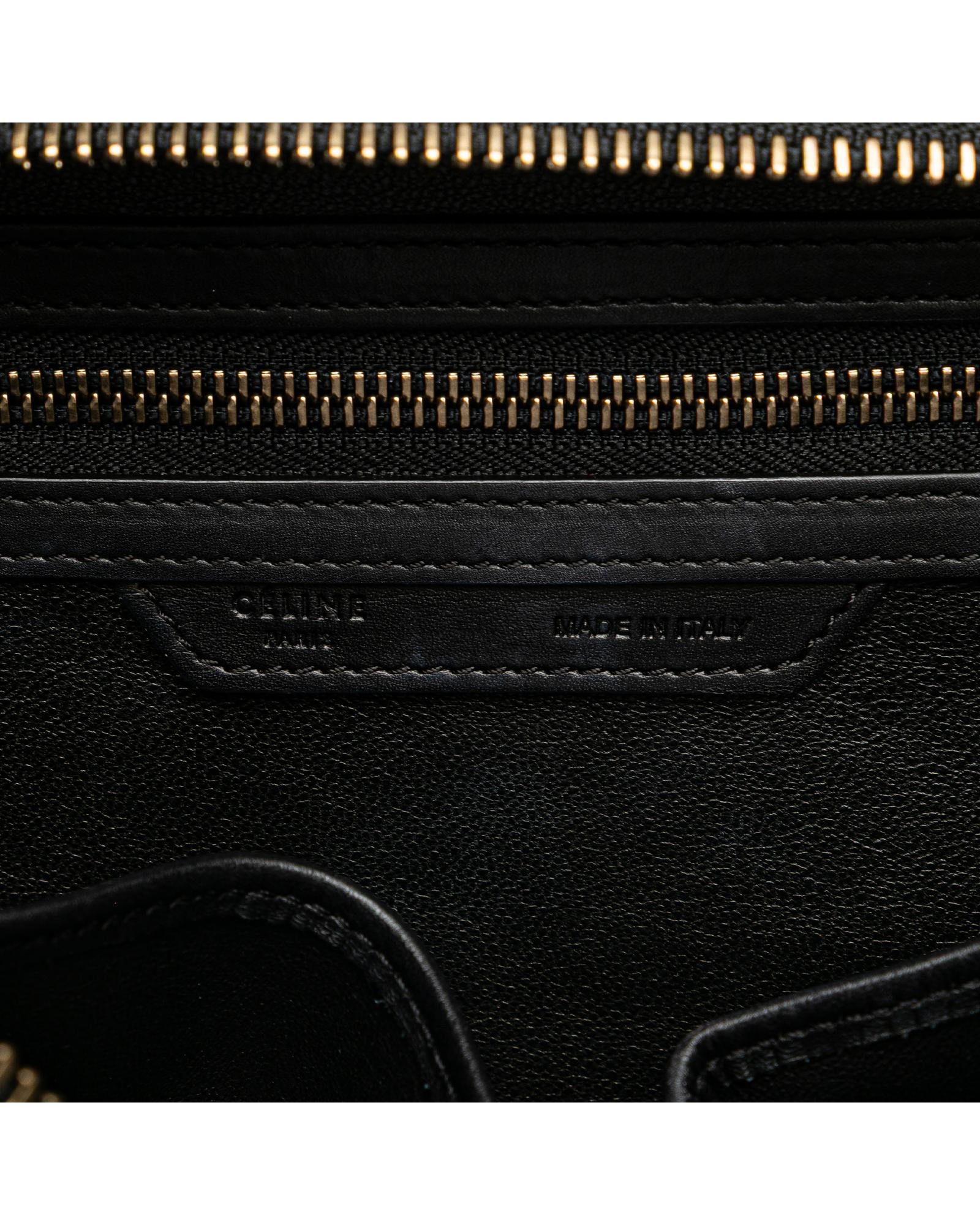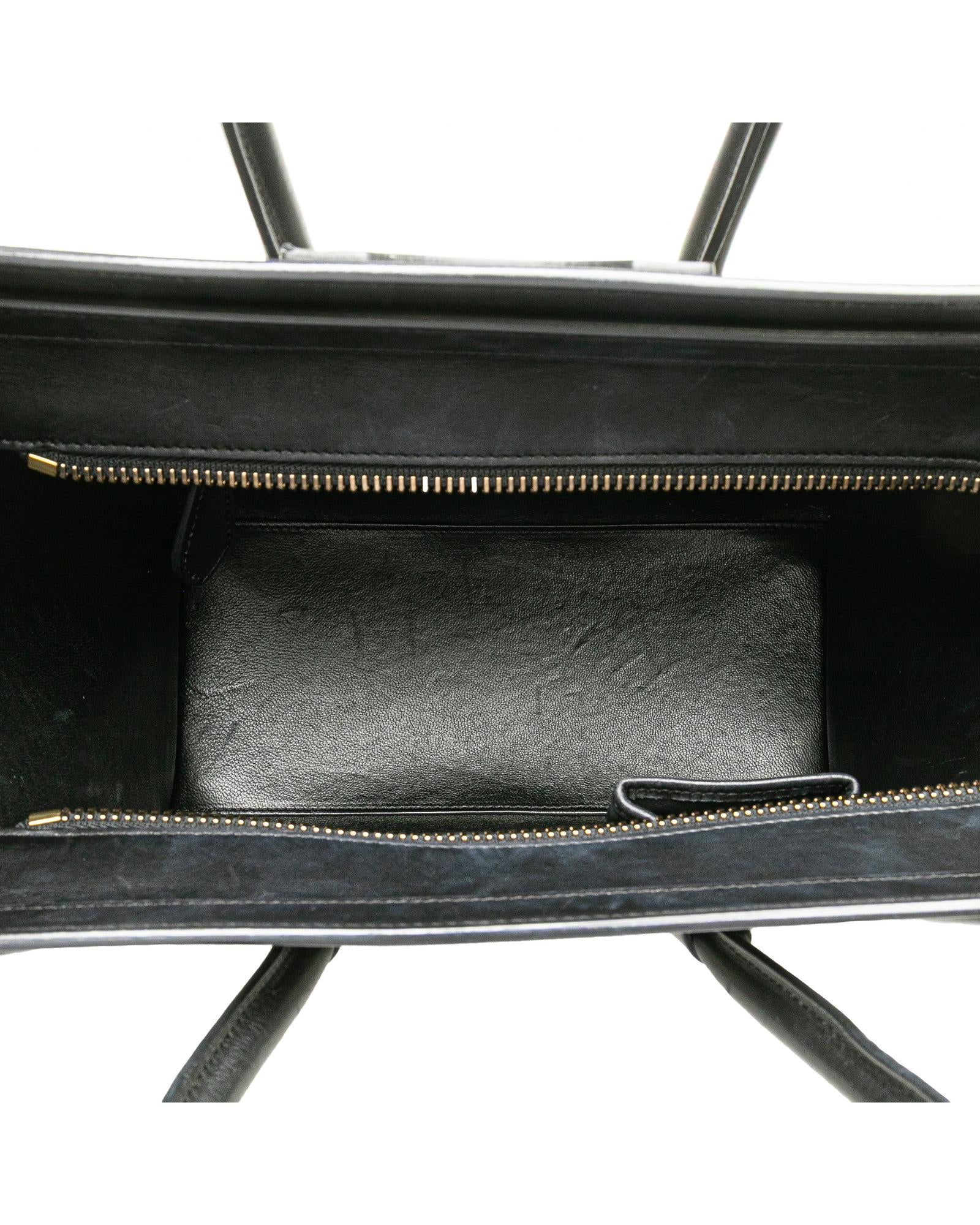 The Luggage Tote features a leather body rolled leather handles a top zip closure an exterior front zip pocket and an interior zip pocket.Brand: Celine Vintage