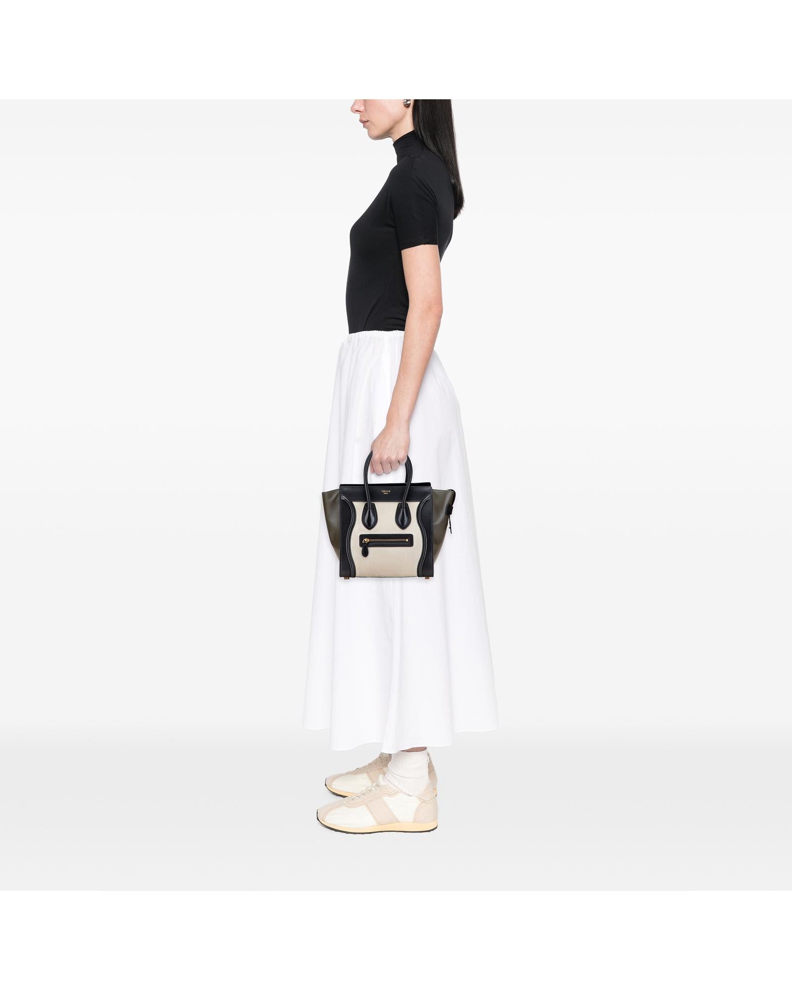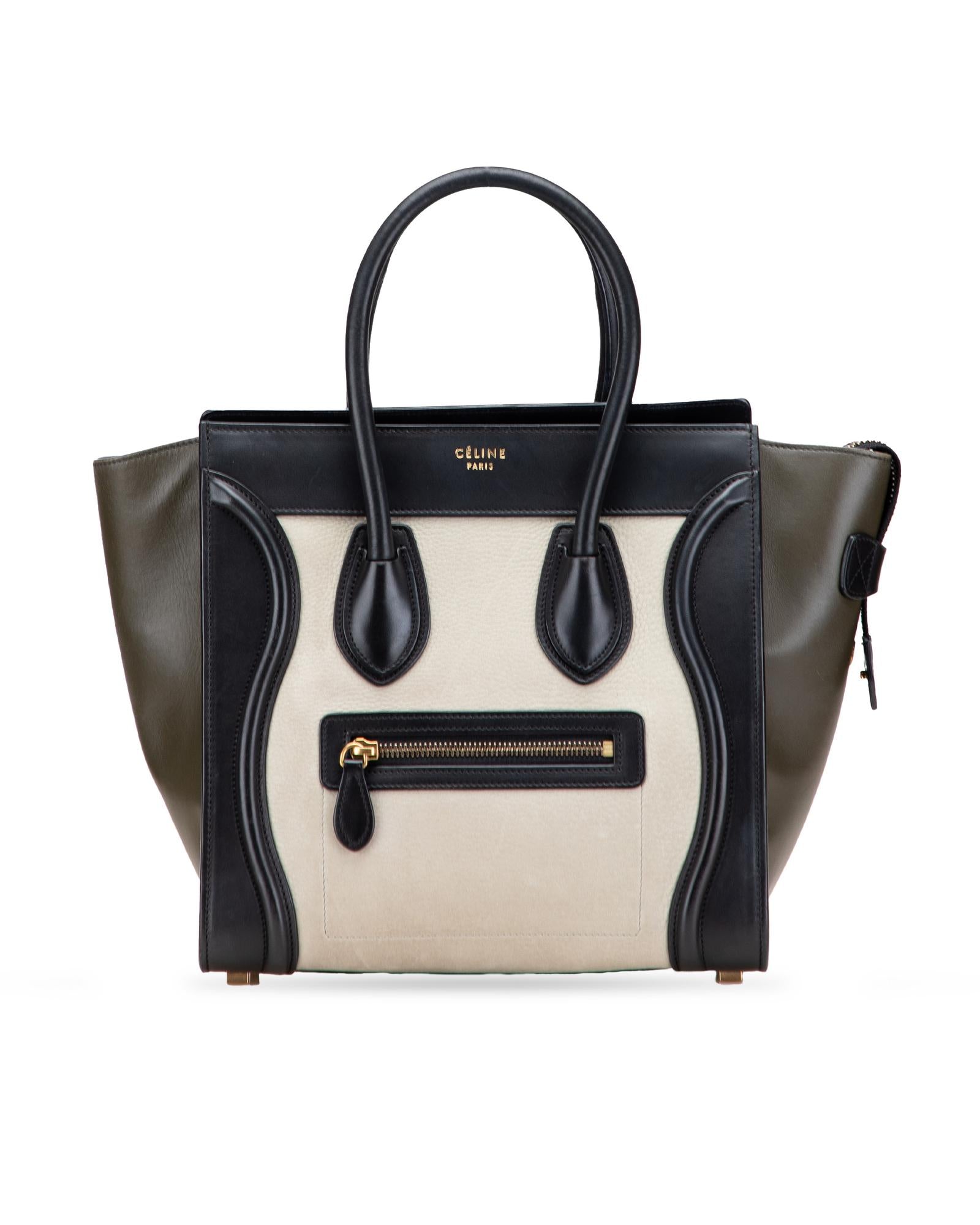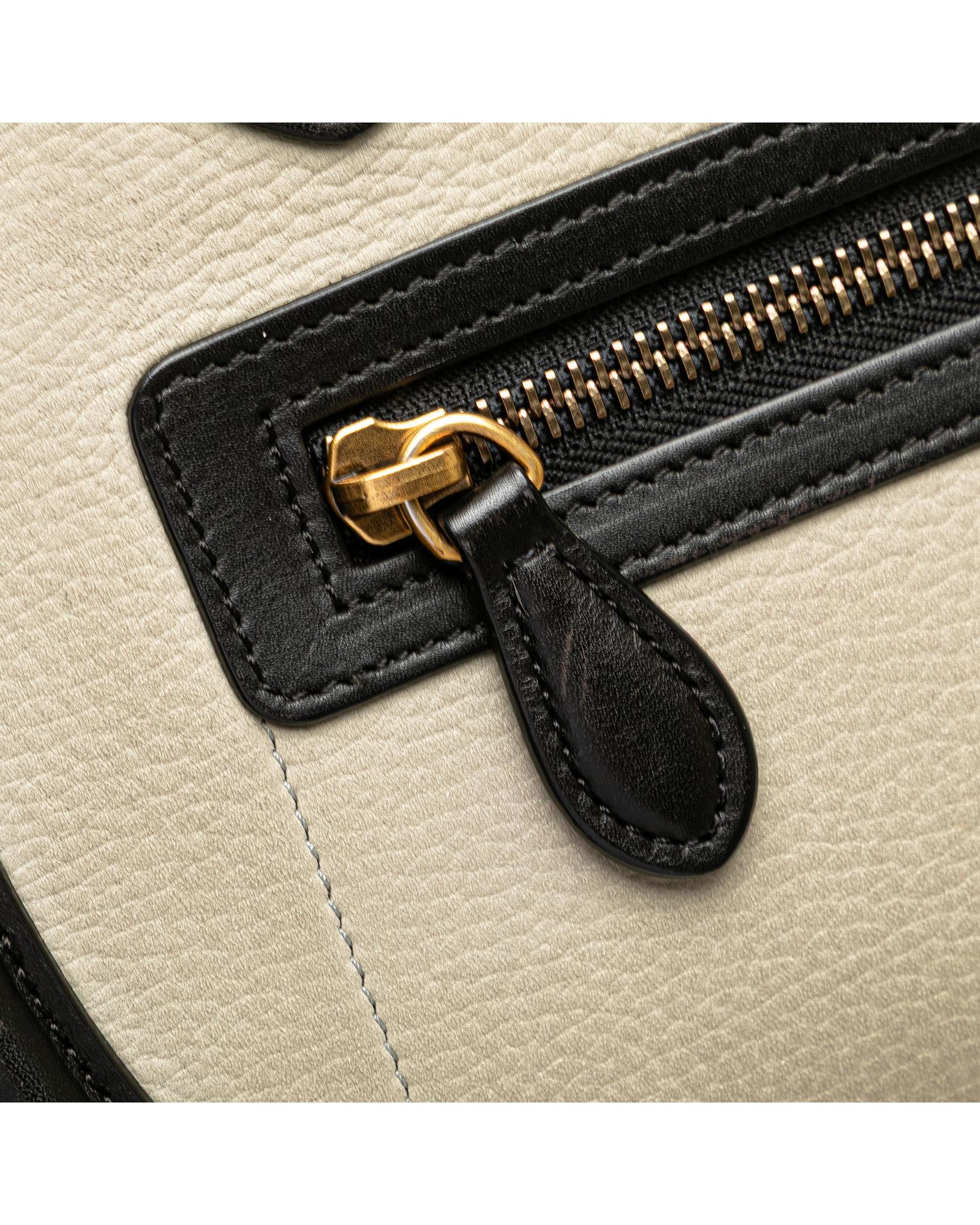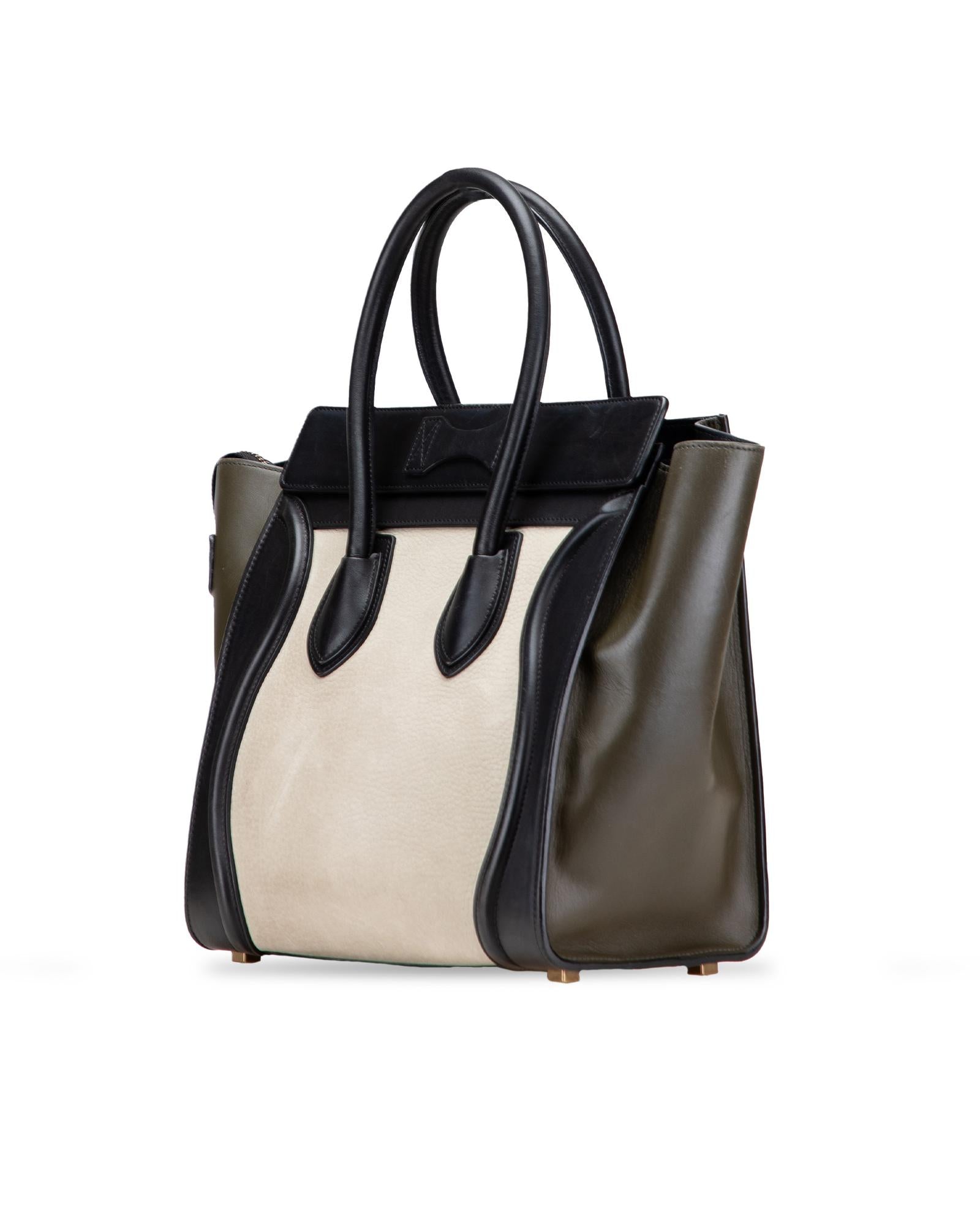 The Luggage Tote features a leather body rolled leather handles a top zip closure an exterior front zip pocket and an interior zip pocket.Brand: Celine Vintage