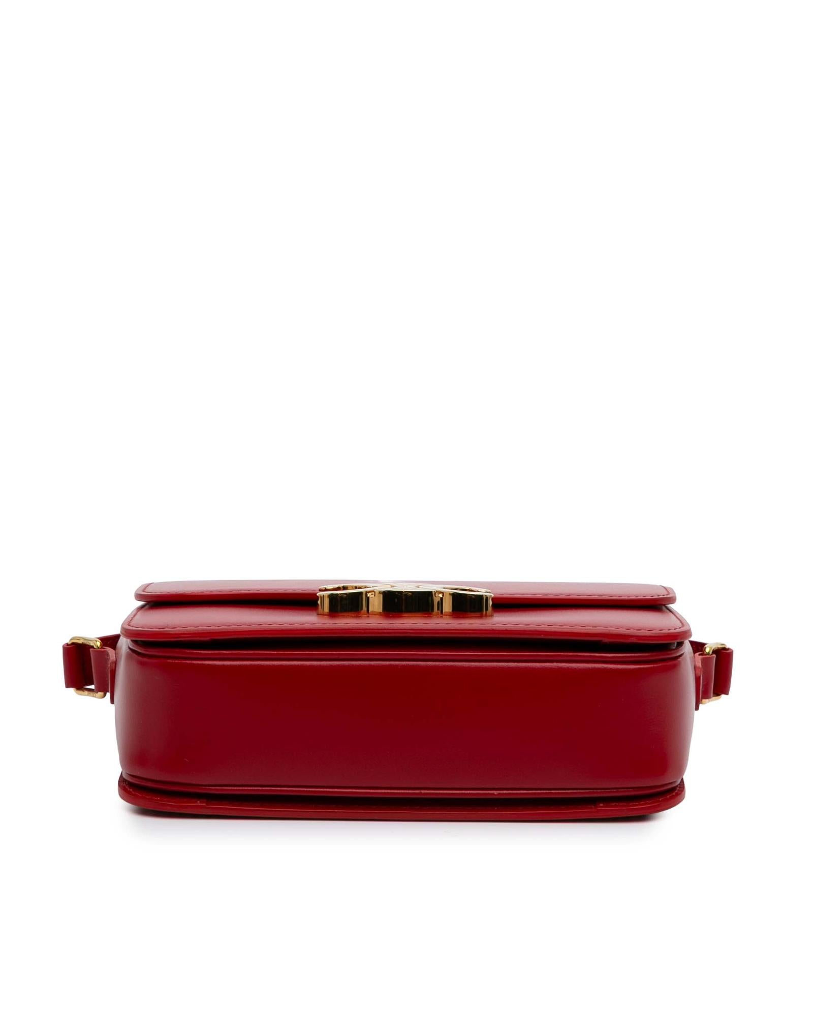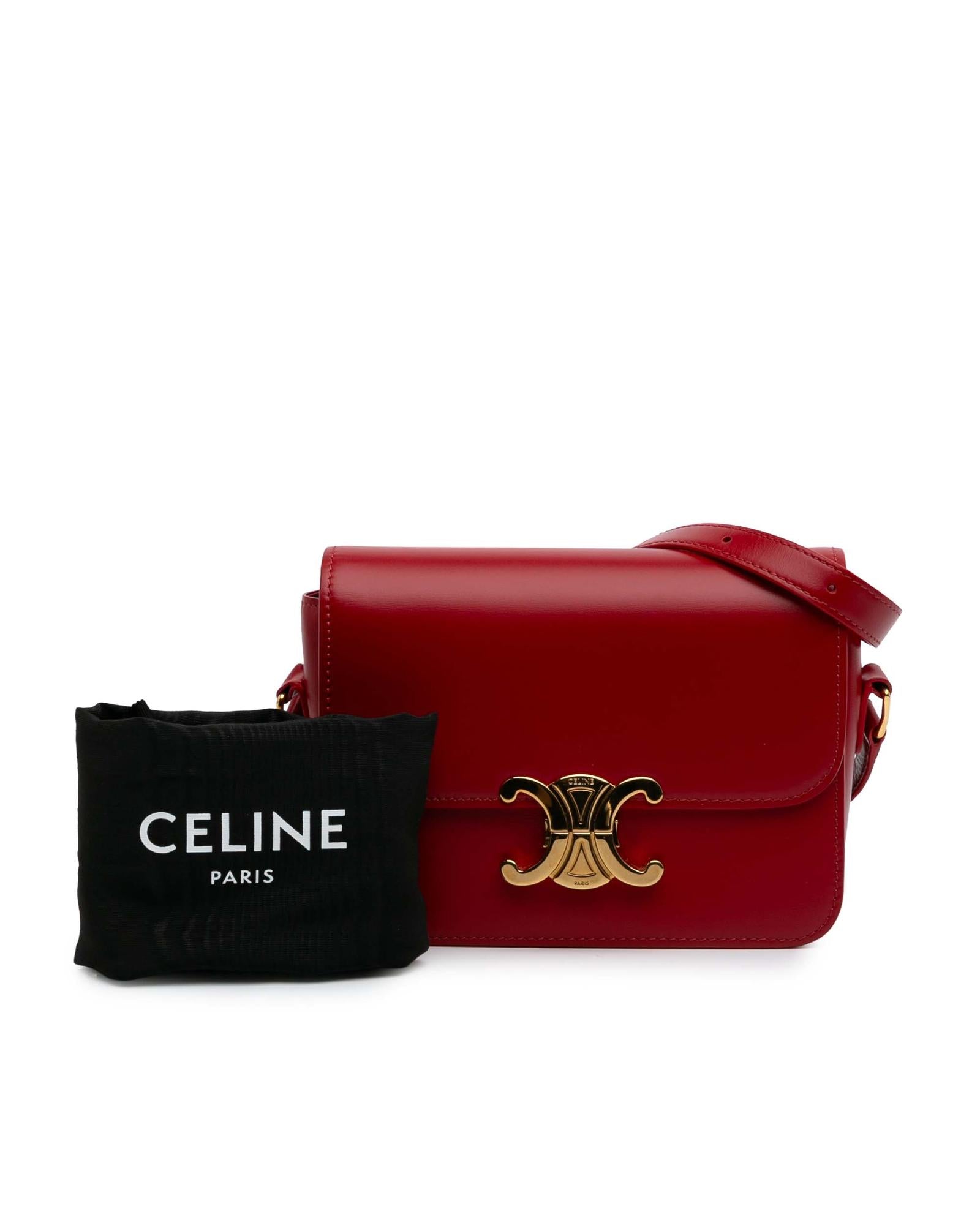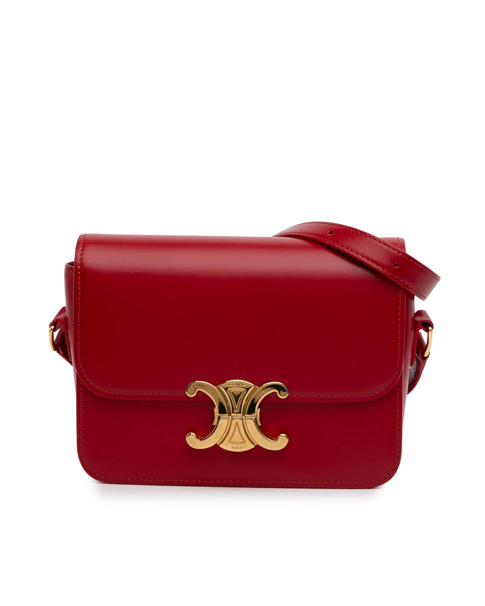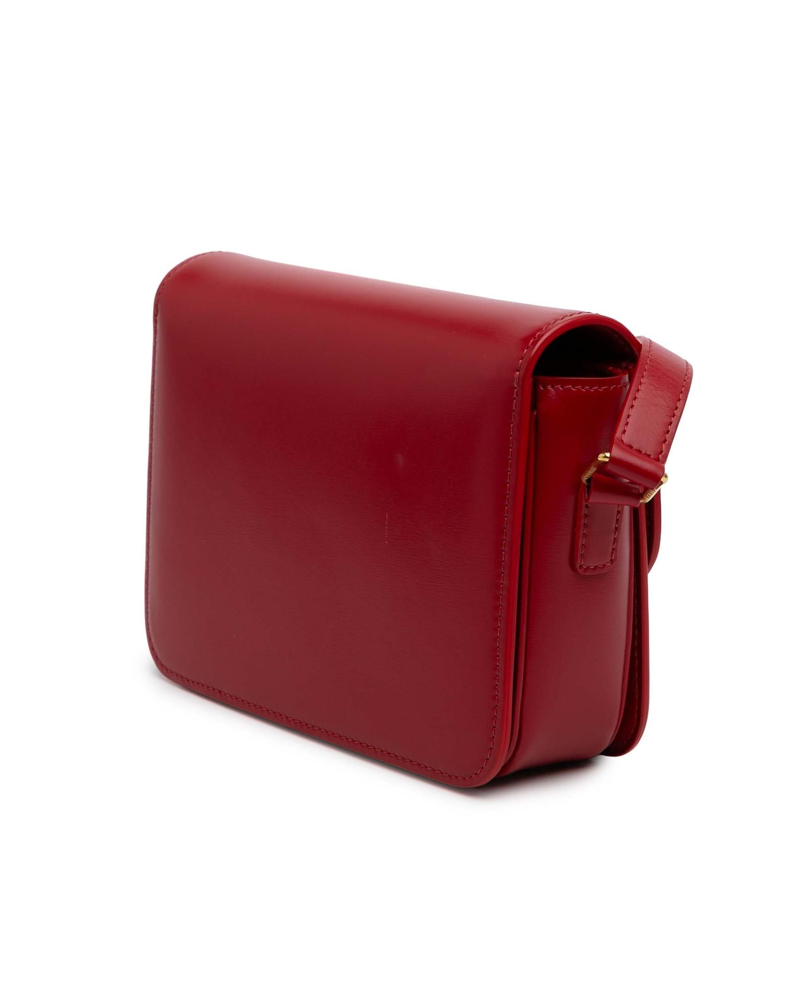 The Teen Triomphe crossbody bag features a leather body a flat leather shoulder strap a front flap with push lock closure and an interior slip pocket.