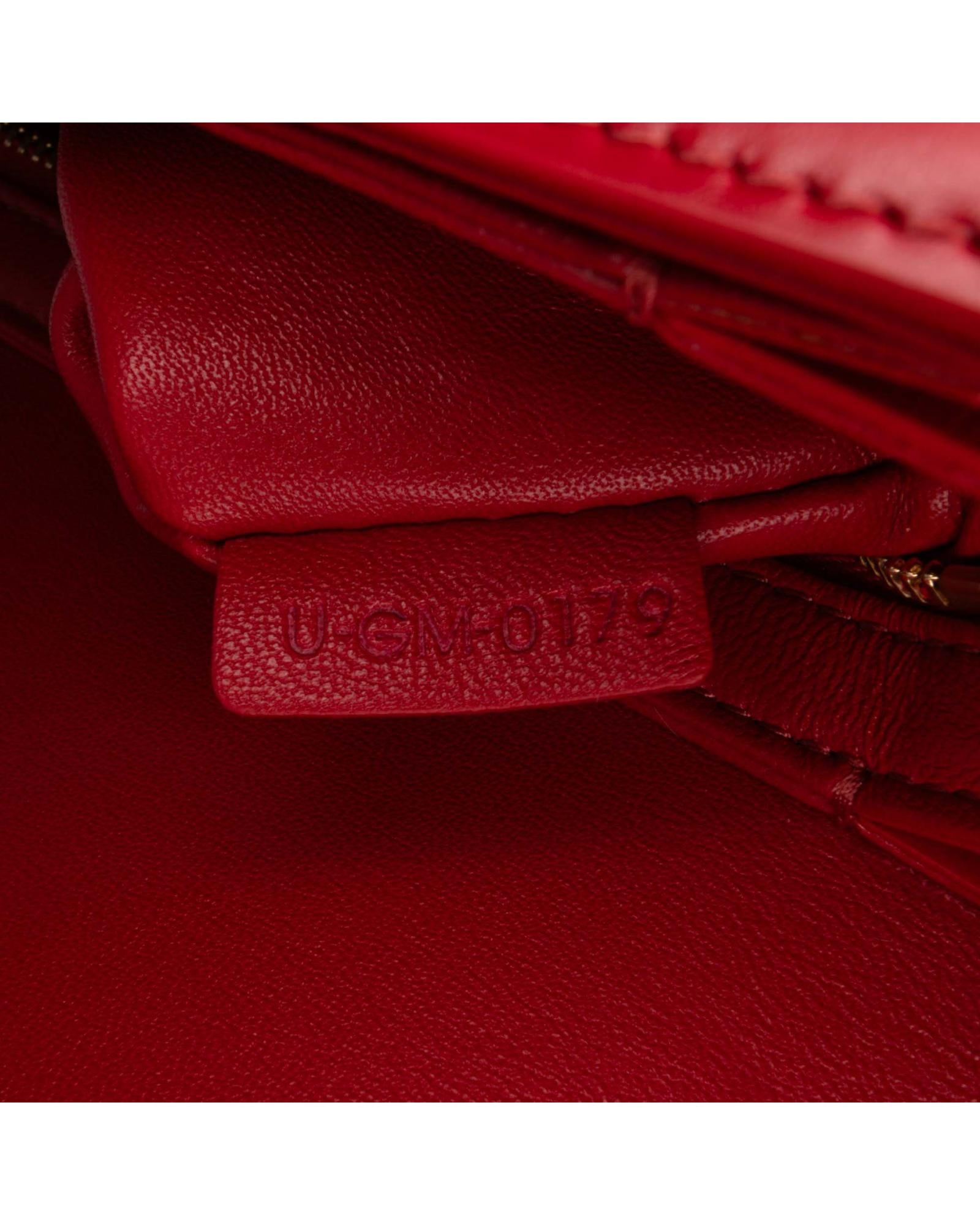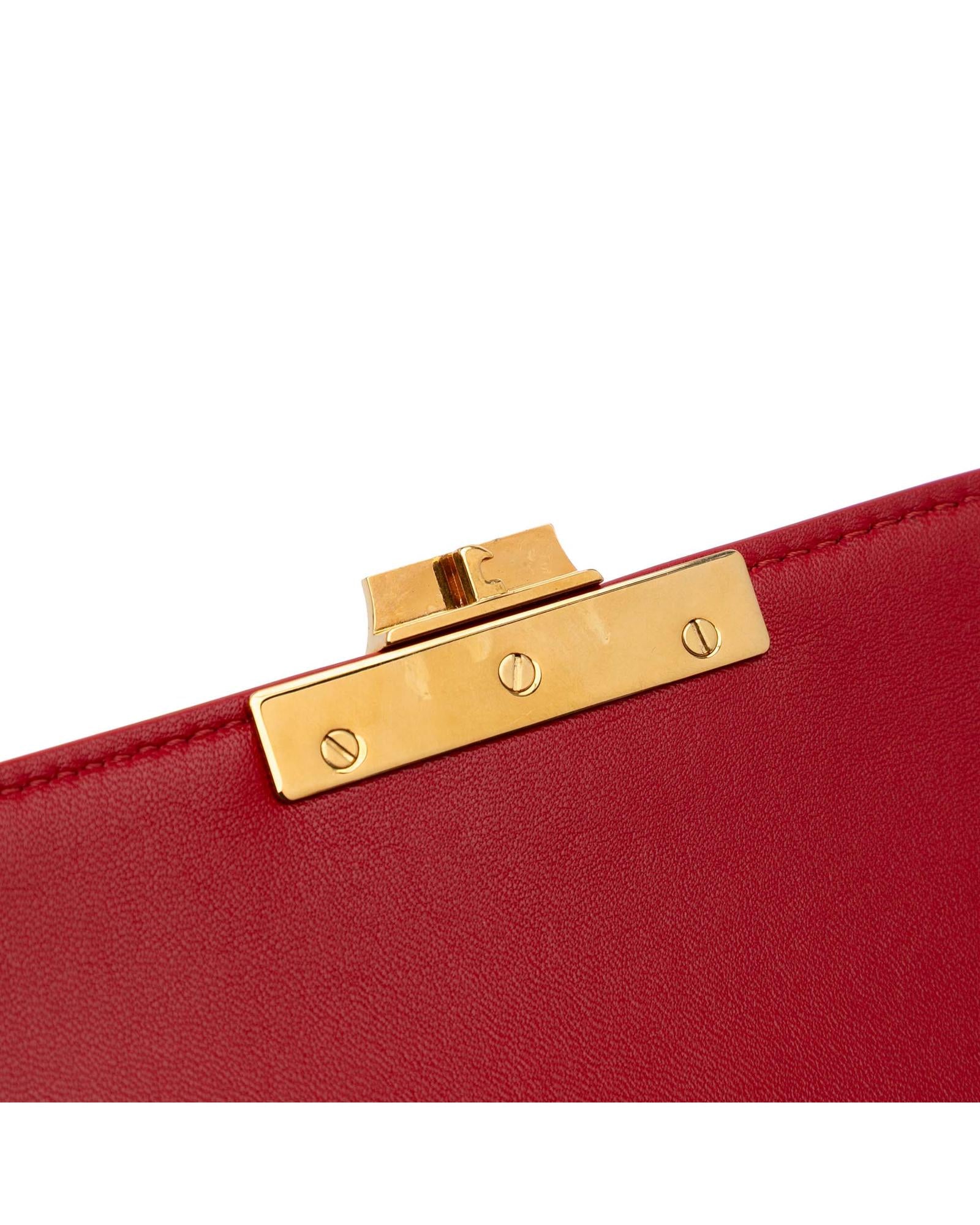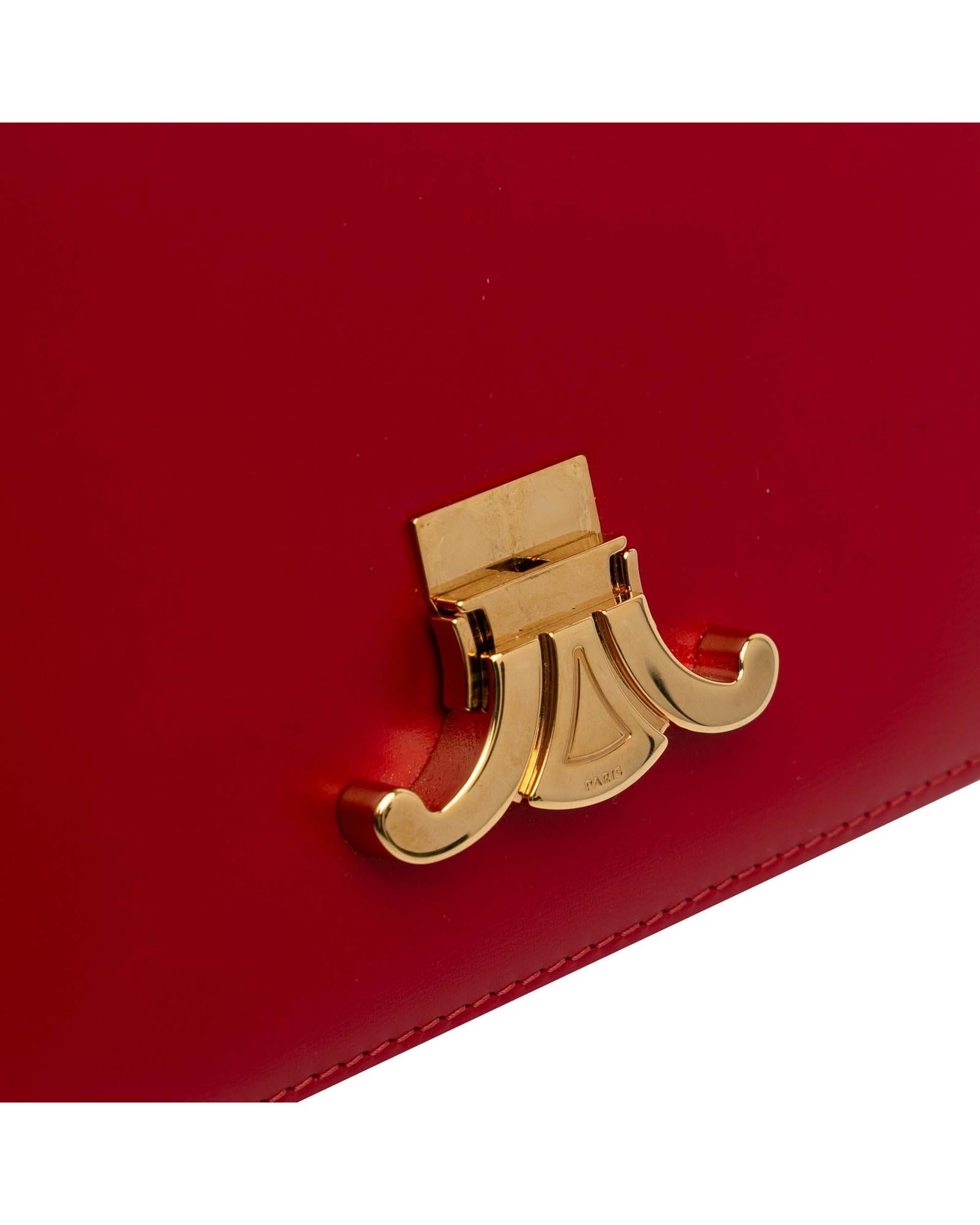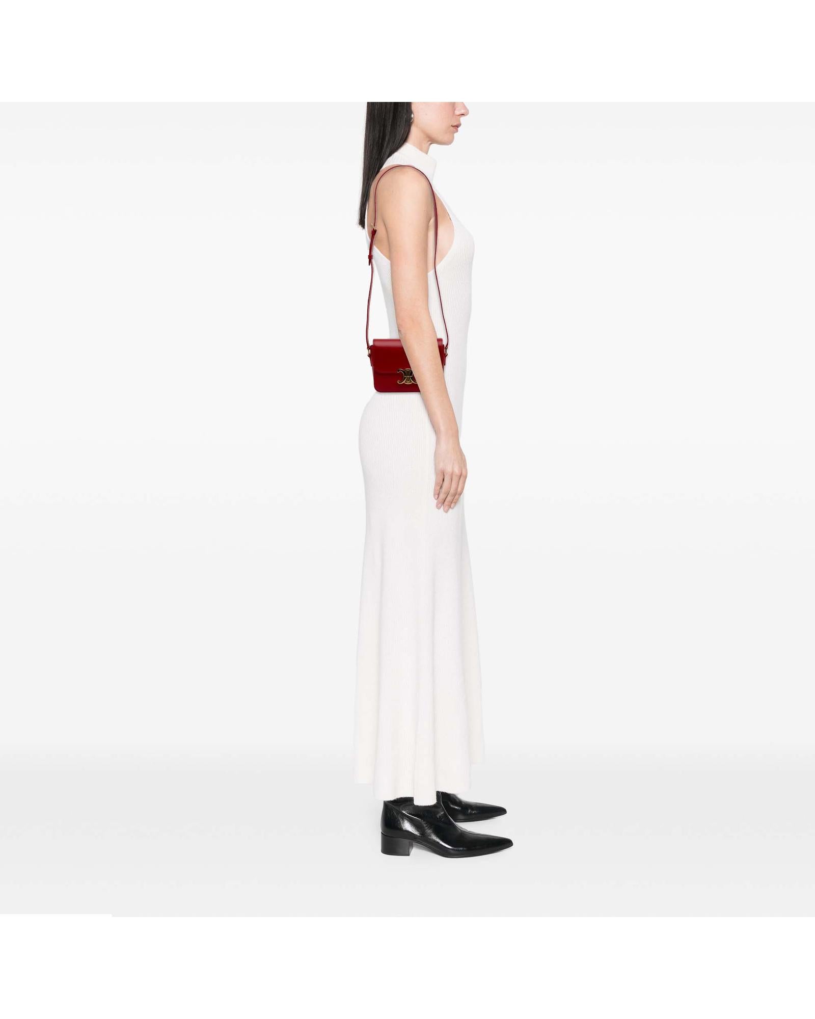 The Teen Triomphe crossbody bag features a leather body a flat leather shoulder strap a front flap with push lock closure and an interior slip pocket.
