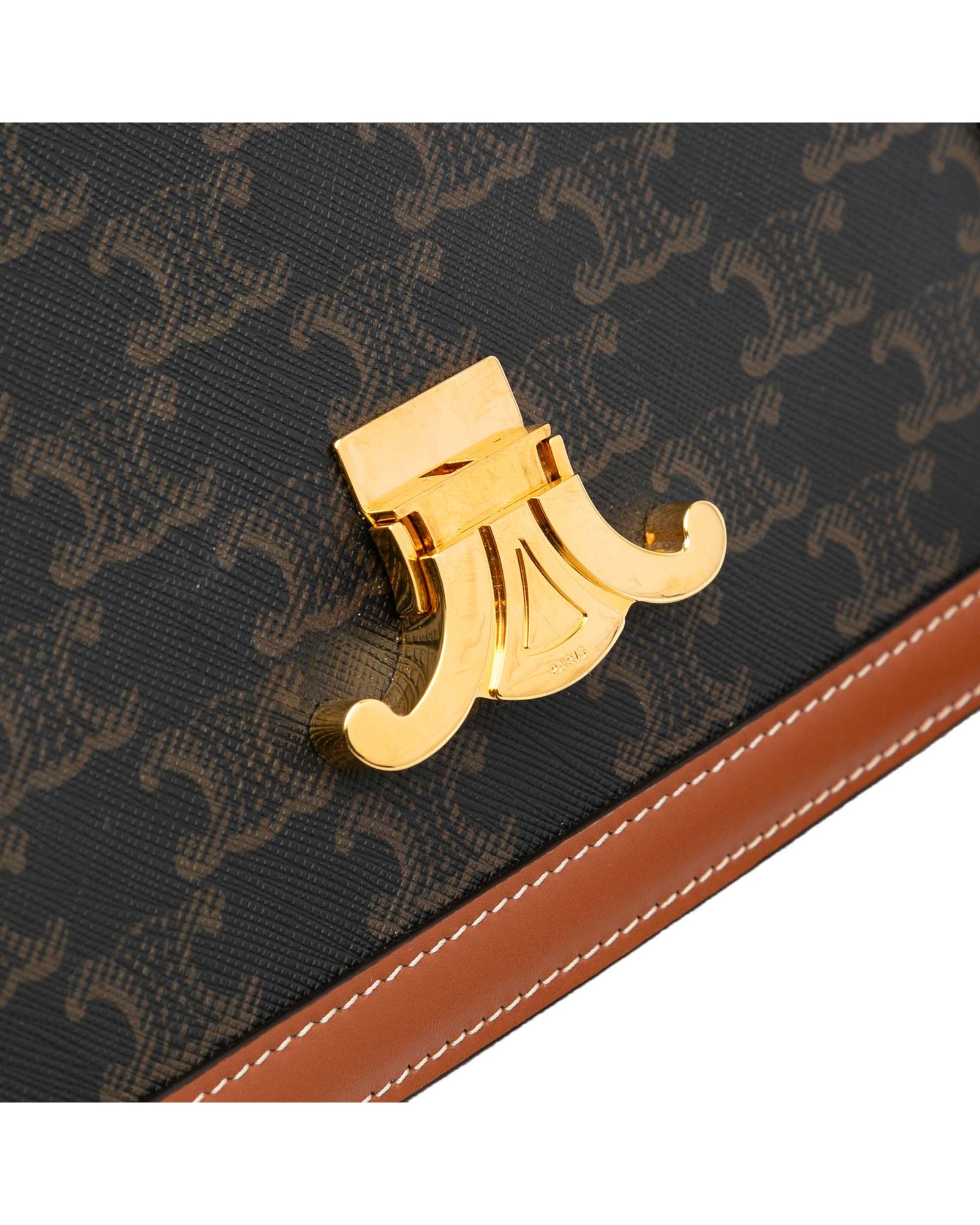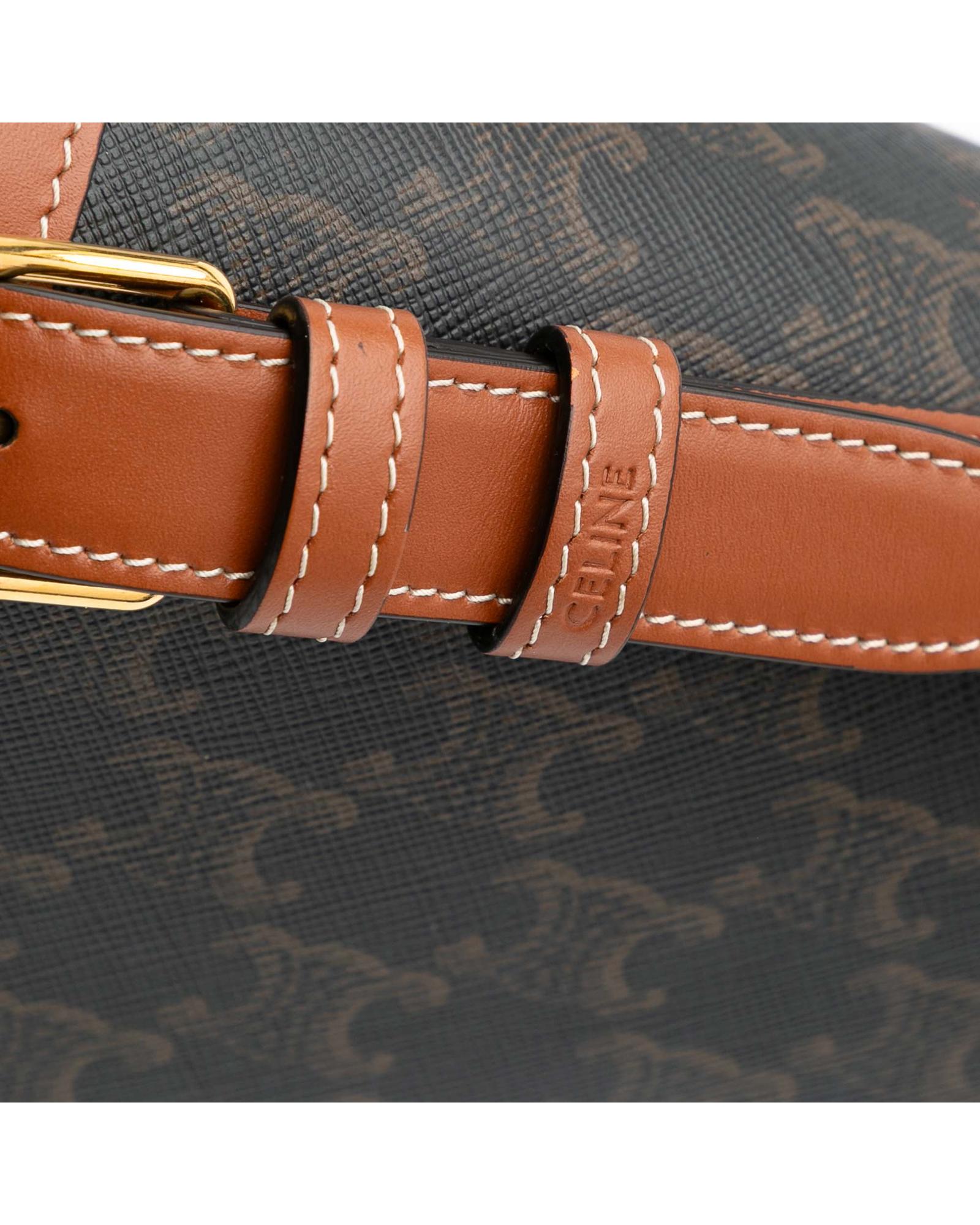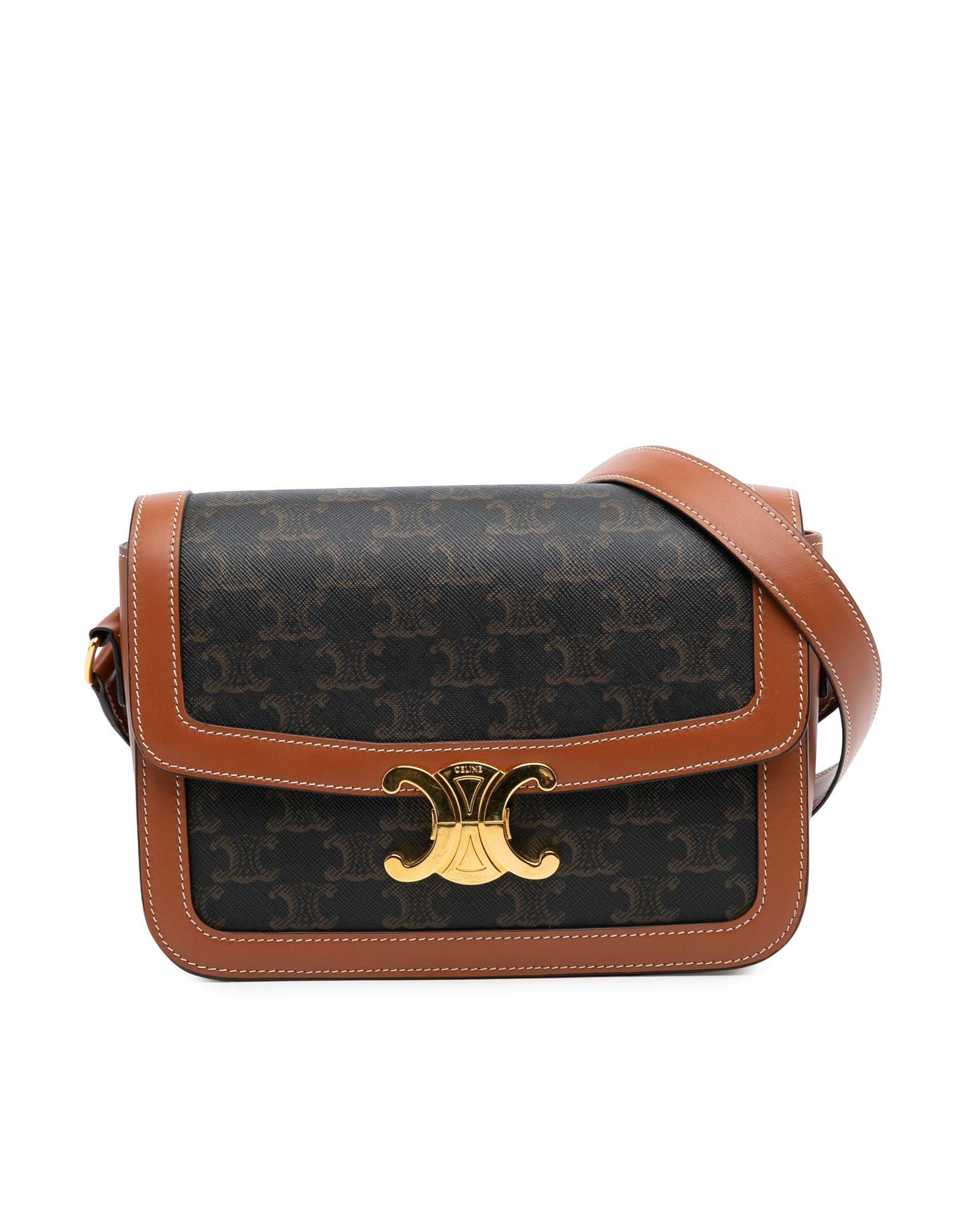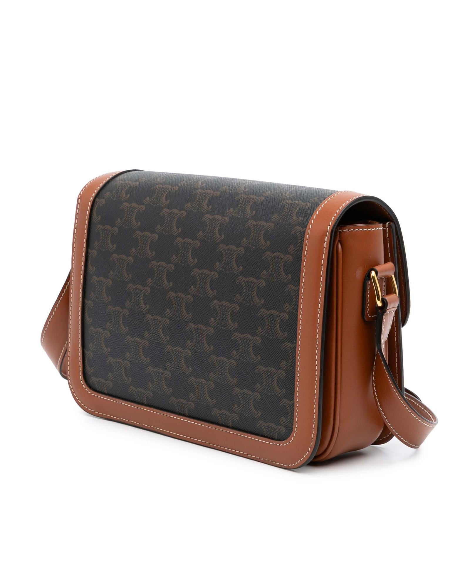 This crossbody bag features a coated canvas body with leather trim an adjustable flat leather shoulder strap a front flap with a push lock closure and interior zip and slip pockets.