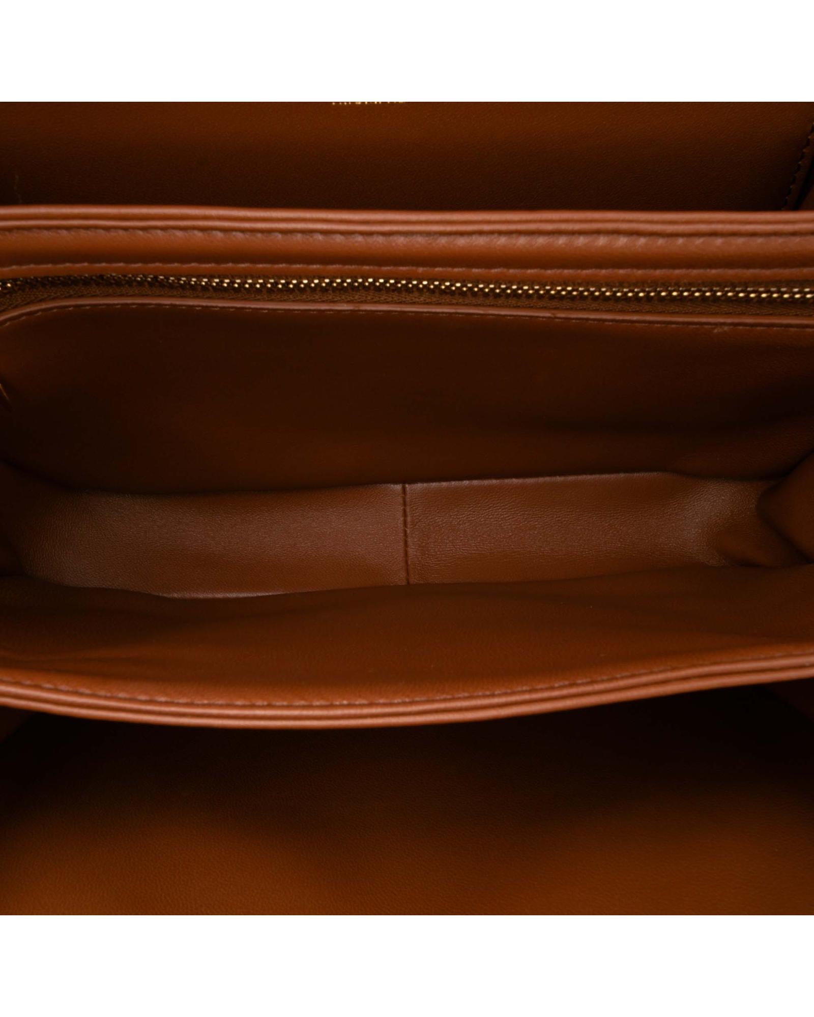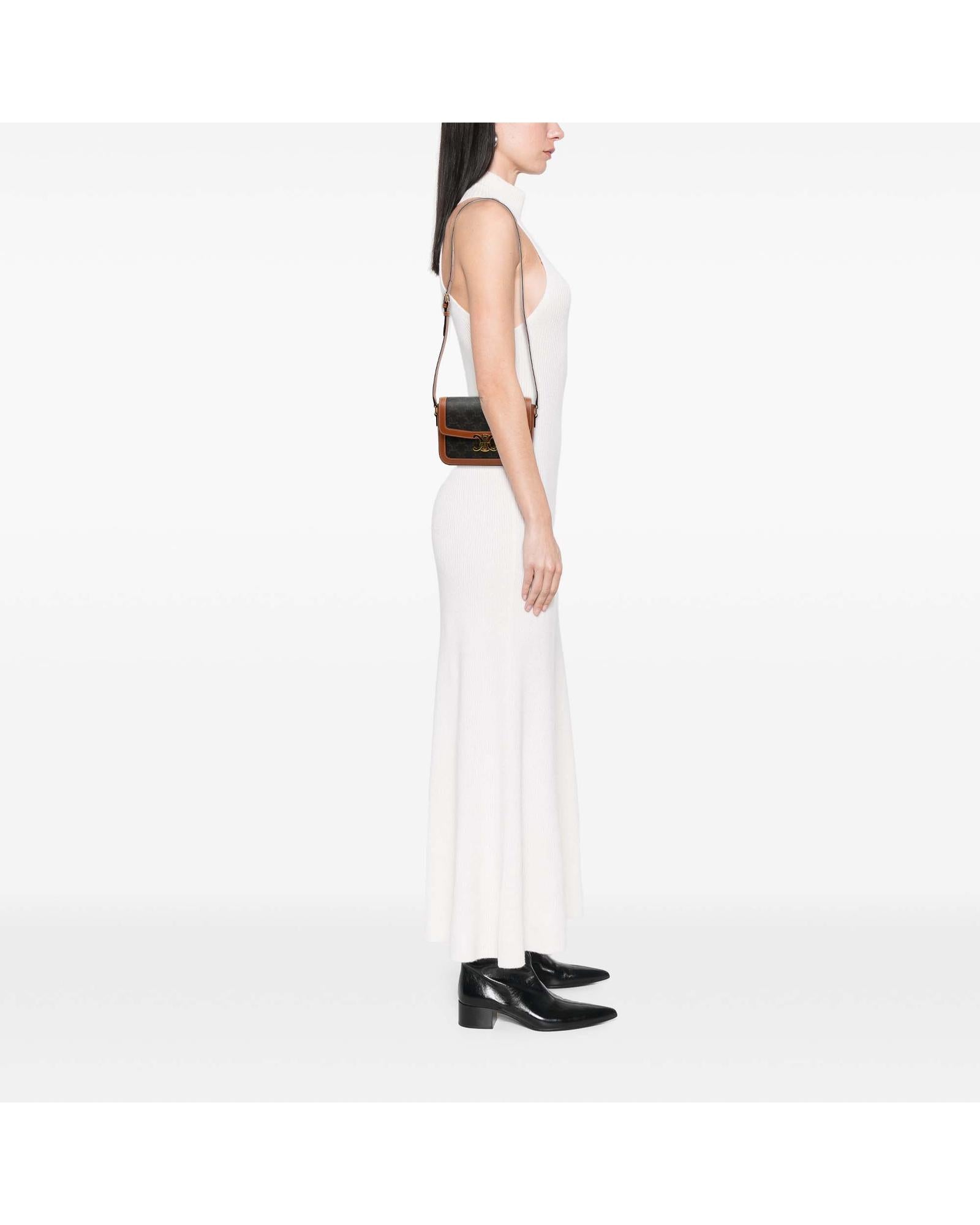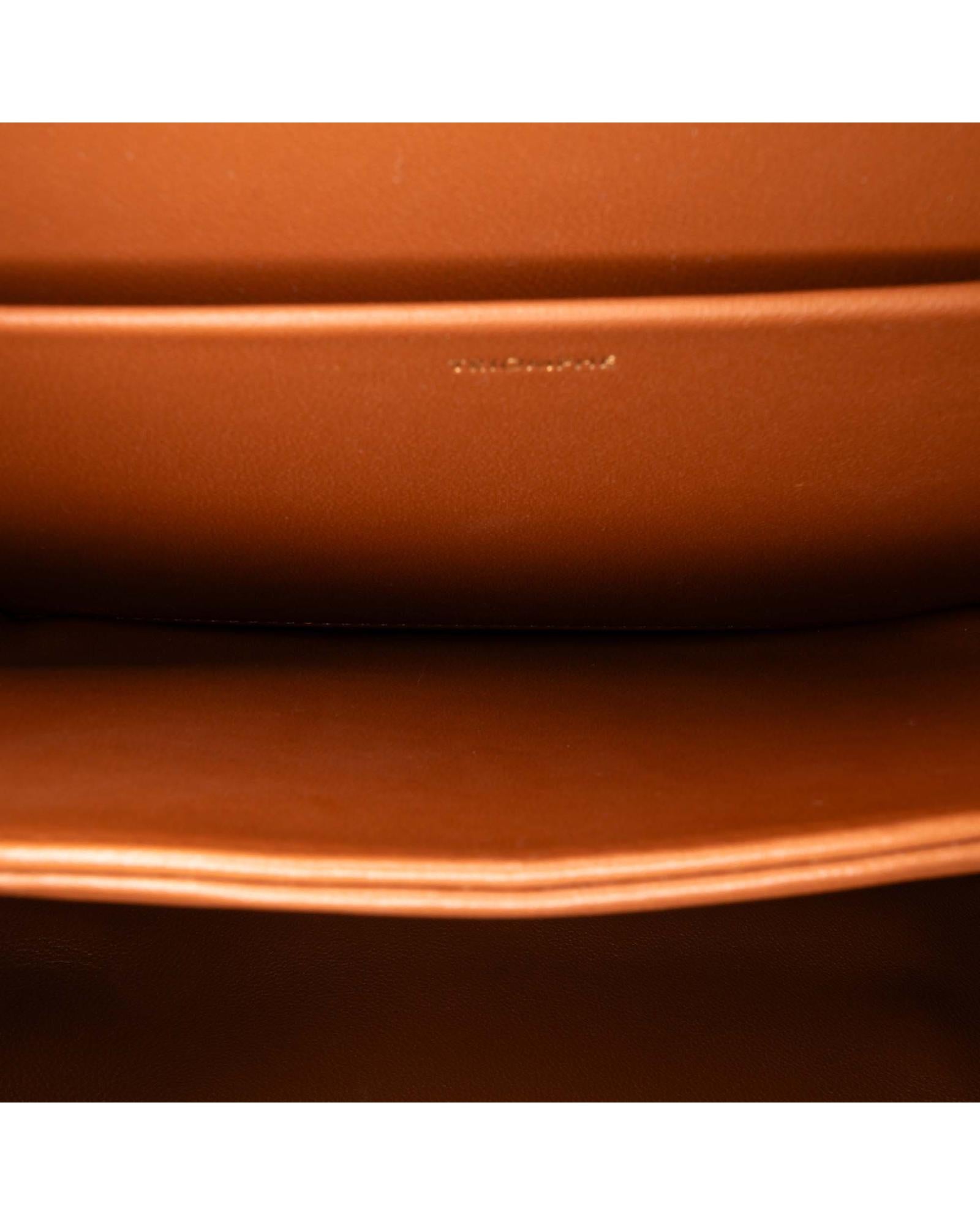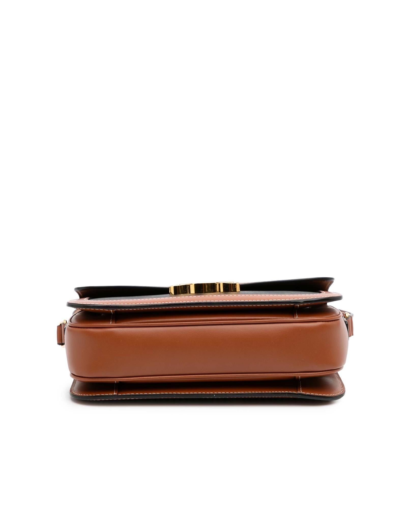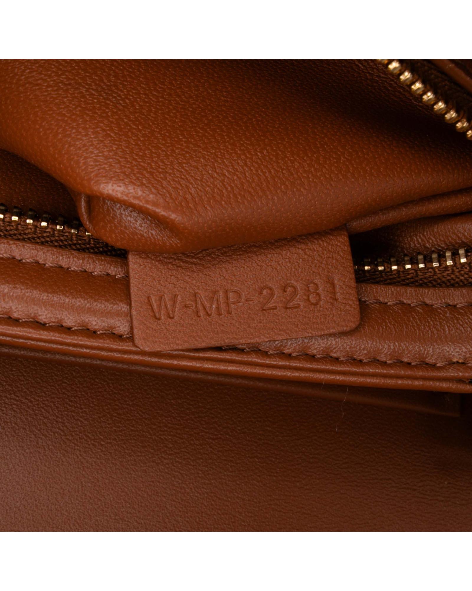 This crossbody bag features a coated canvas body with leather trim an adjustable flat leather shoulder strap a front flap with a push lock closure and interior zip and slip pockets.
