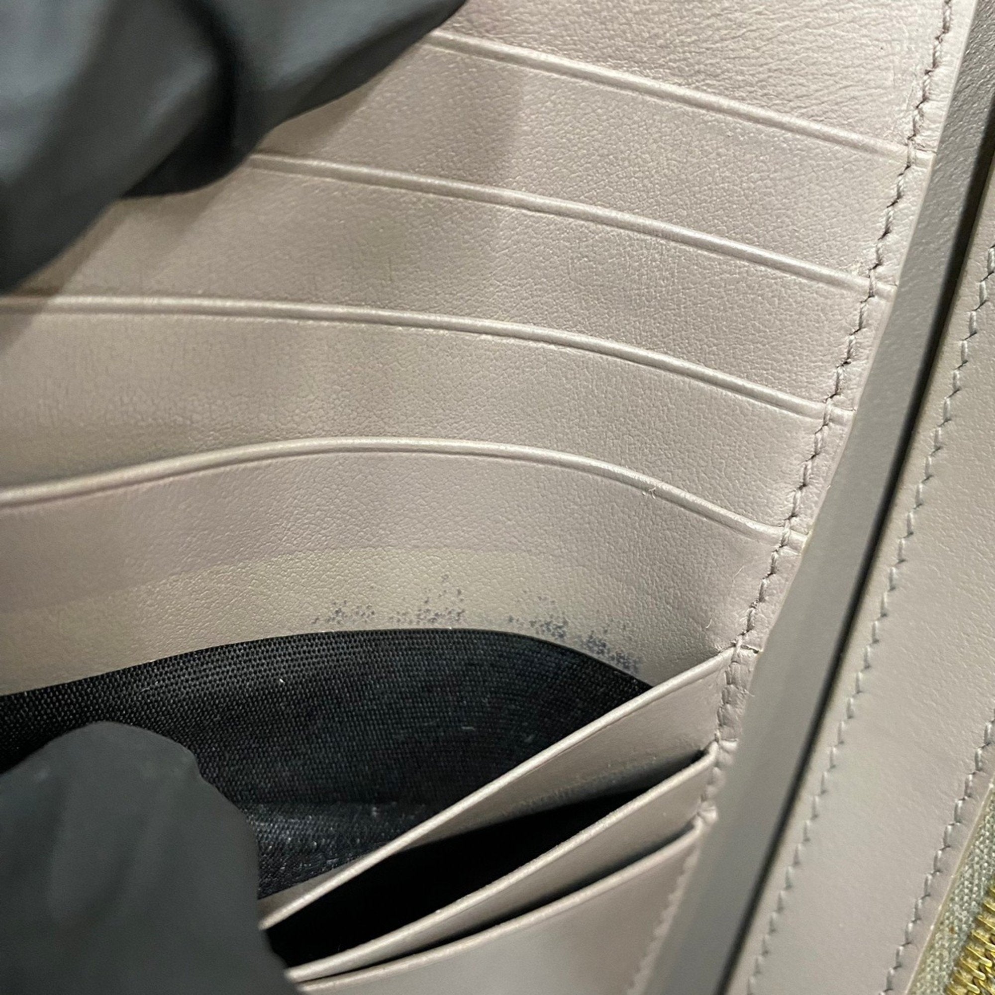 The overall condition remains exquisite with only a slight dent observed on the inside adding a subtle touch of character without compromising the wallet's practicality.
