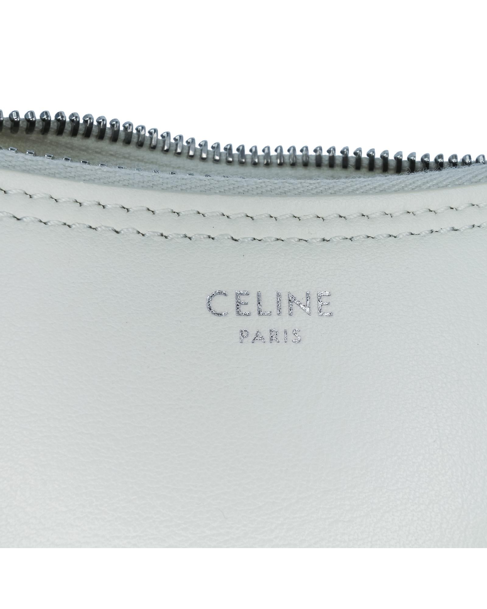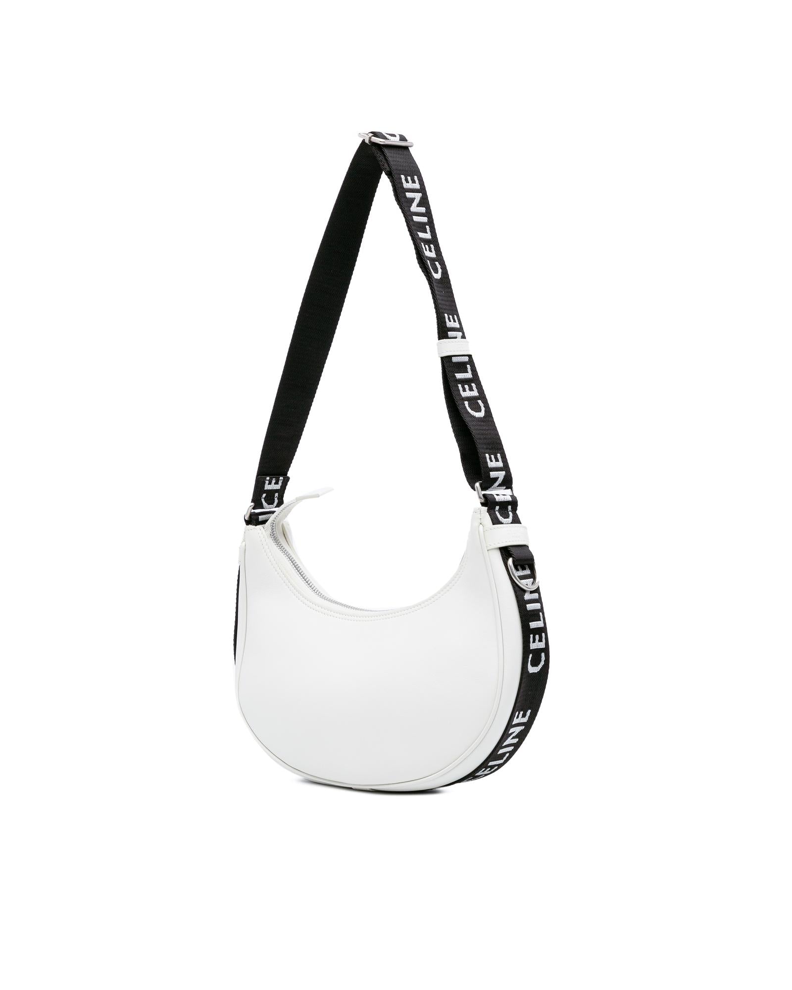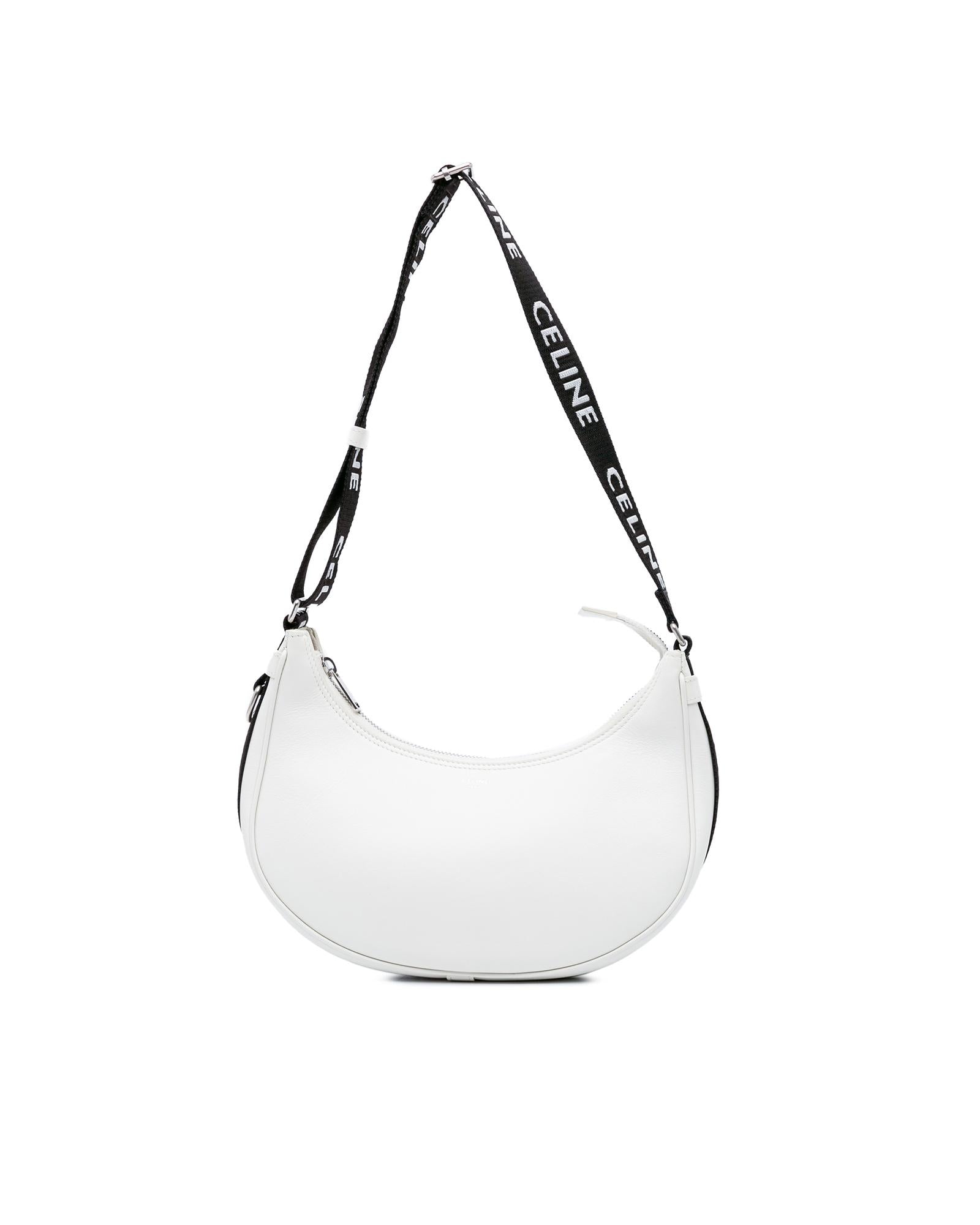 The Ava features a smooth calf leather body an adjustable flat canvas shoulder strap a top zip closure and an interior slip pocket.Brand: Celine