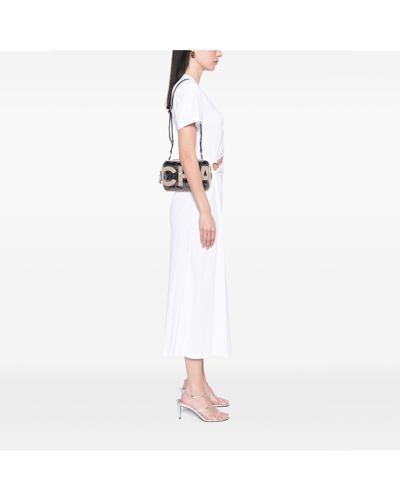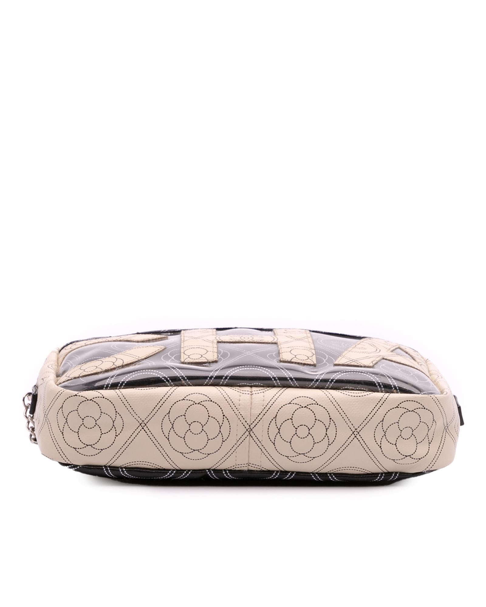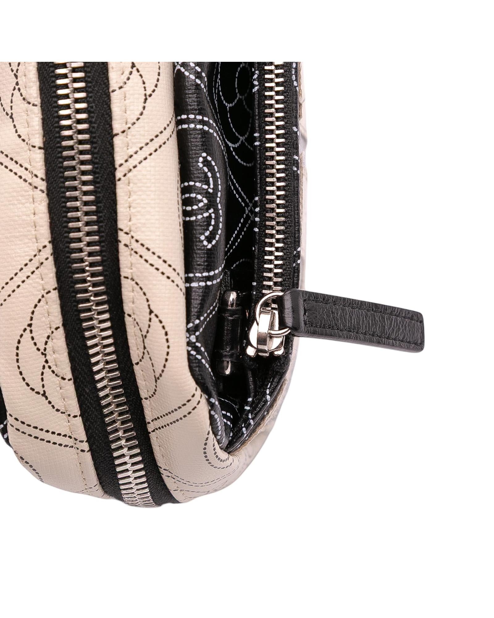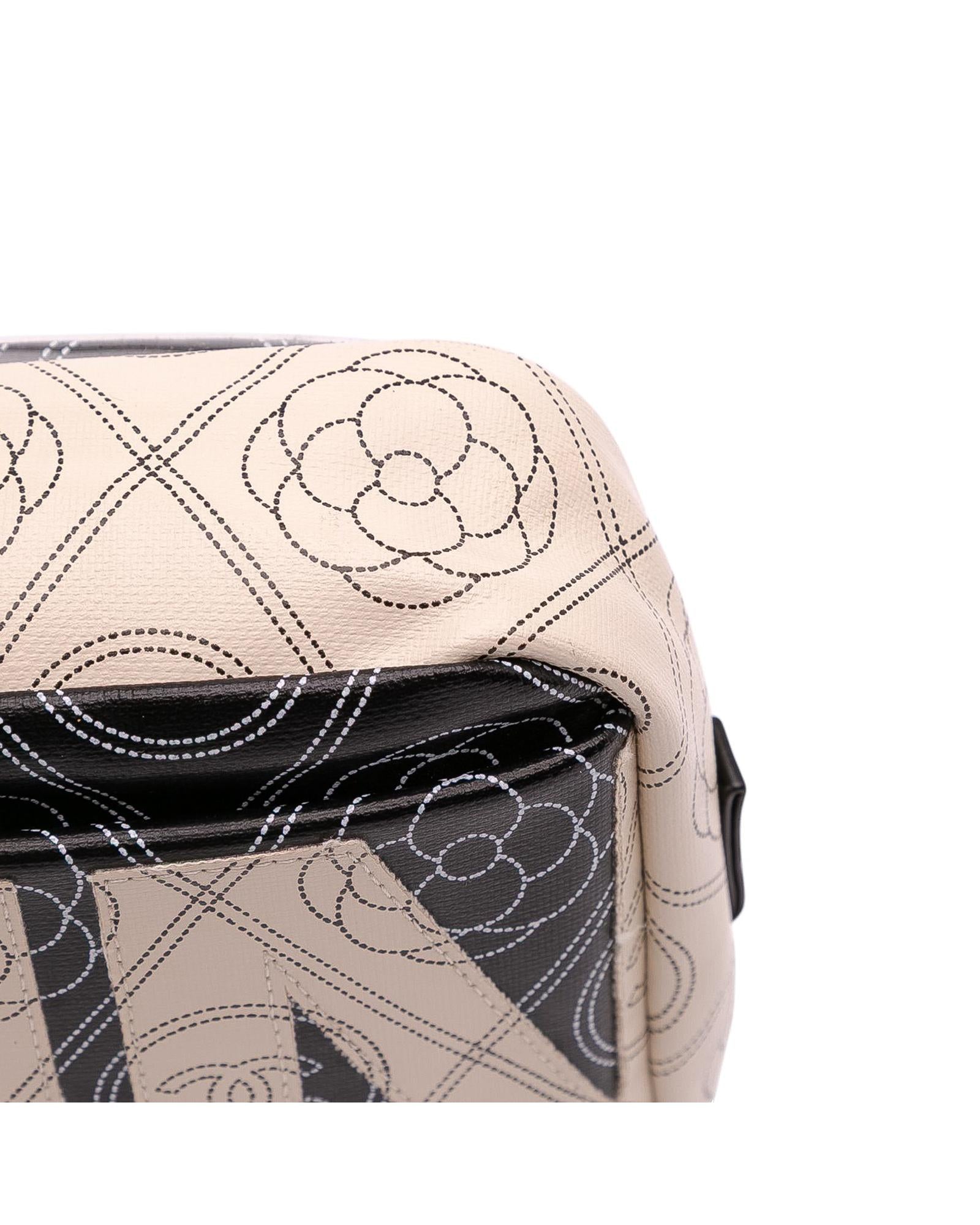 This camera bag features a printed coated canvas body an adjustable and detachable flat leather strap a top zip closure exterior zip and slip pockets and an interior zip pocket.Brand: Chanel Vintage