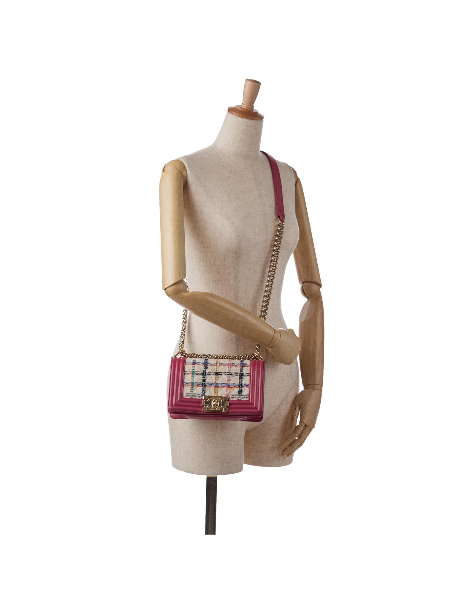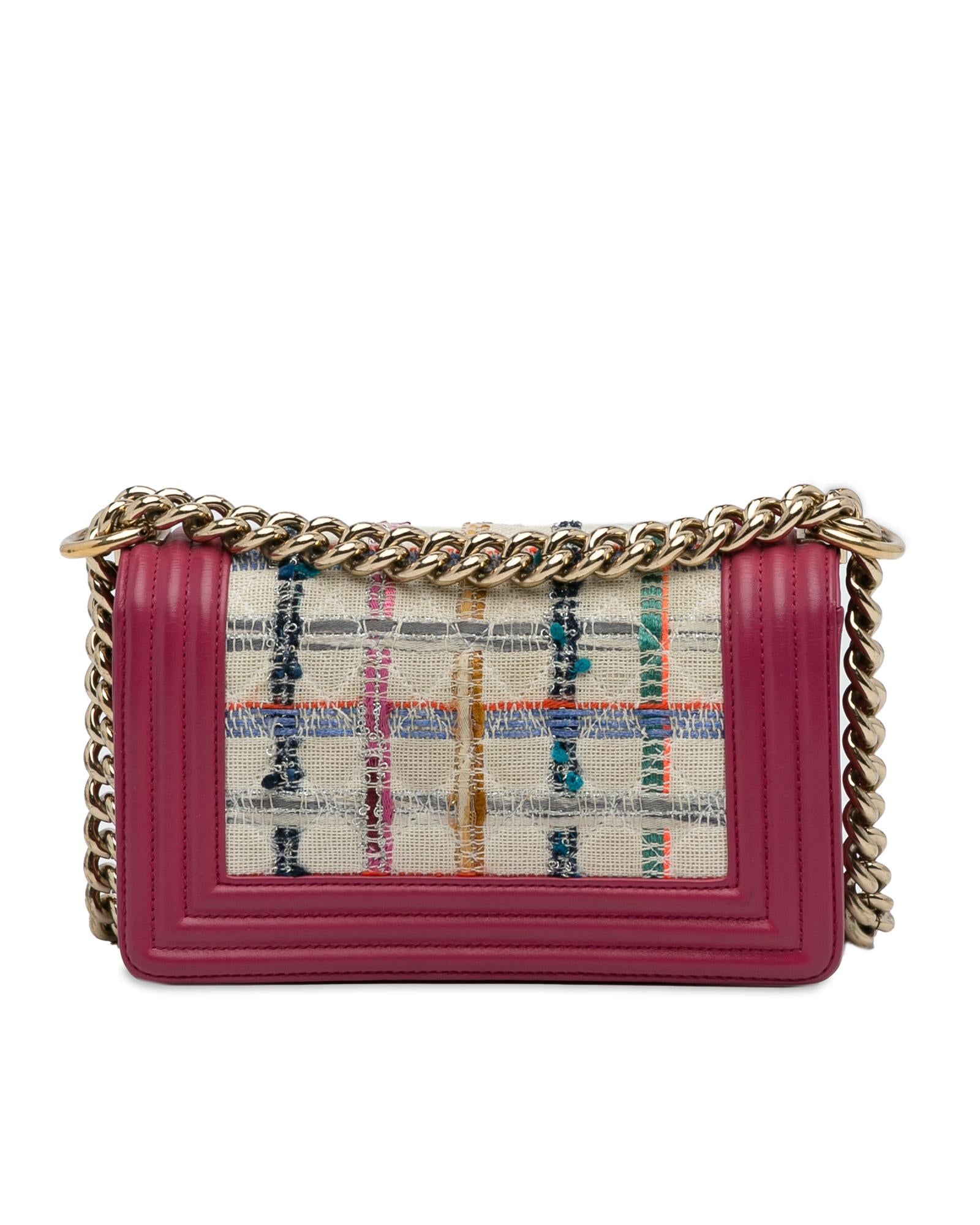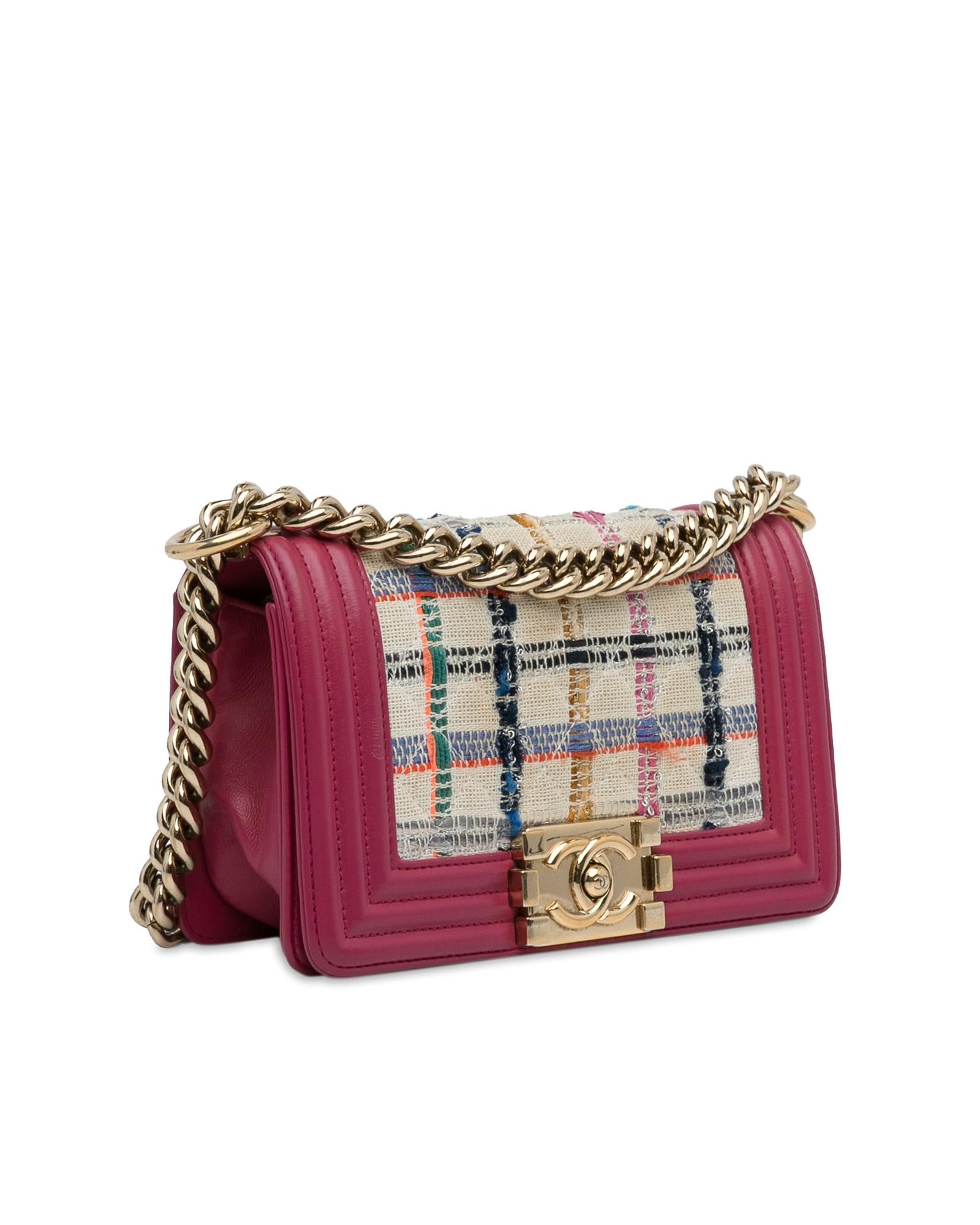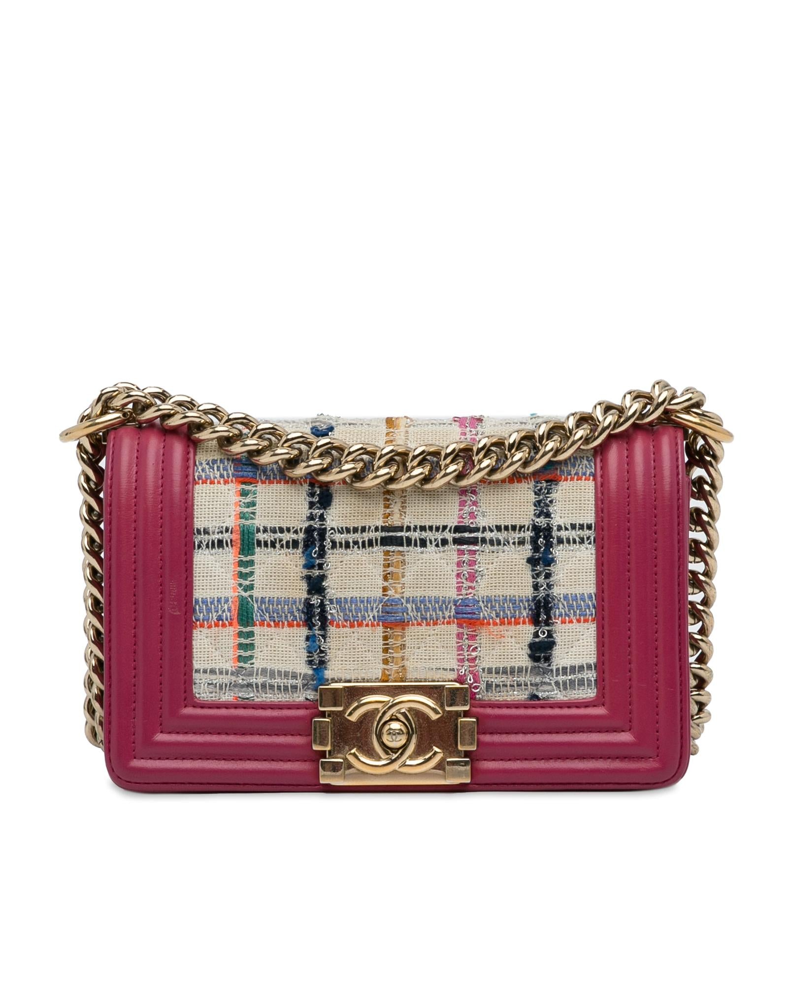 This shoulder bag features a tweed body with leather trim a front flap with a CC push-lock closure a curb chain strap and an interior slip pocket.Brand: Chanel Vintage