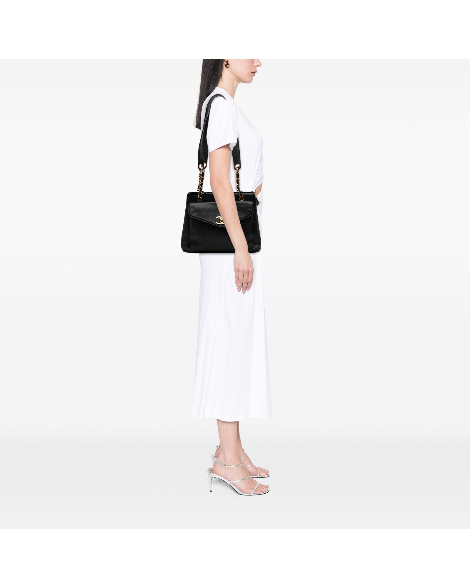 Pre-owned Elegant Handbag with Chain-Detailed Straps and Front Flap Pocket