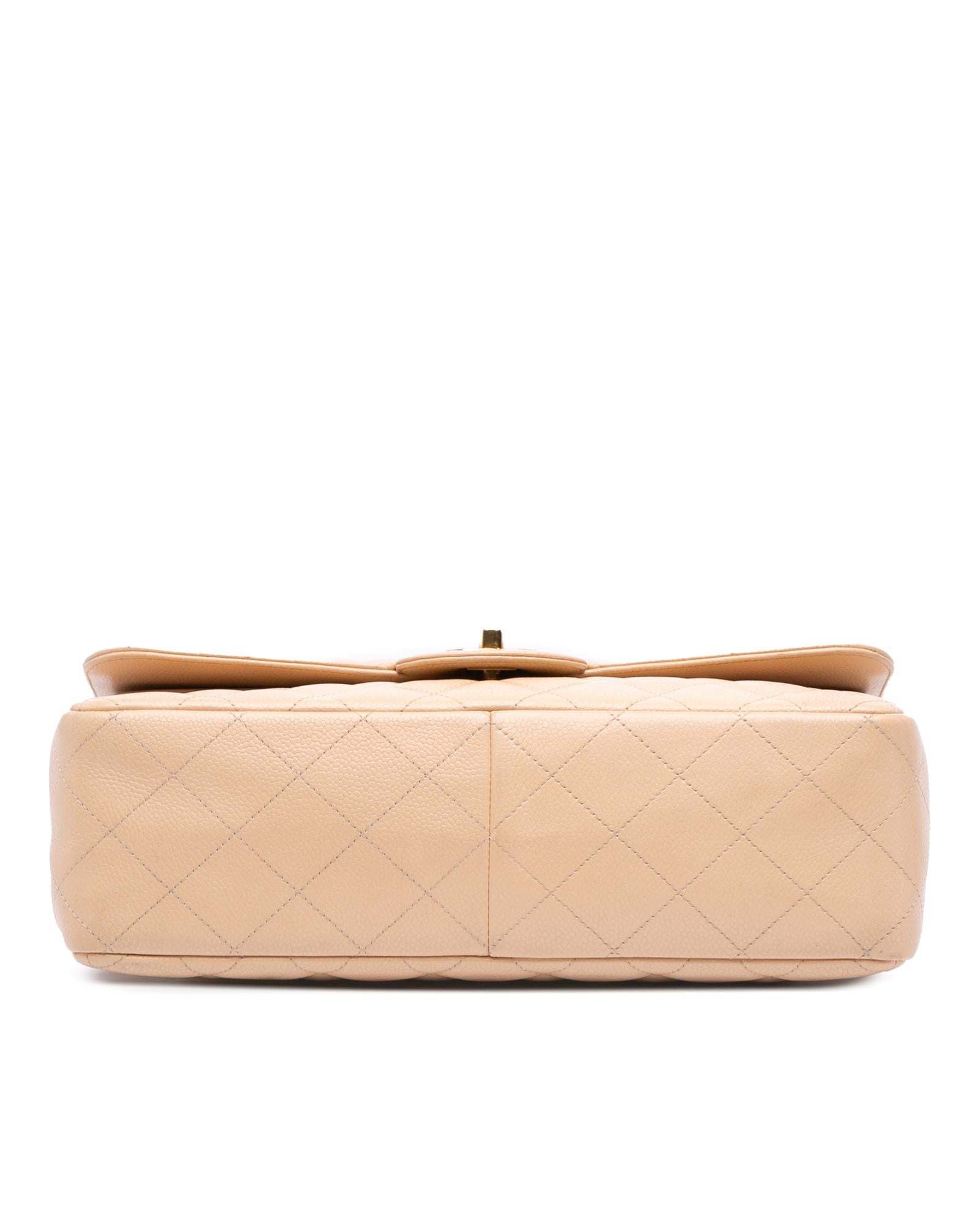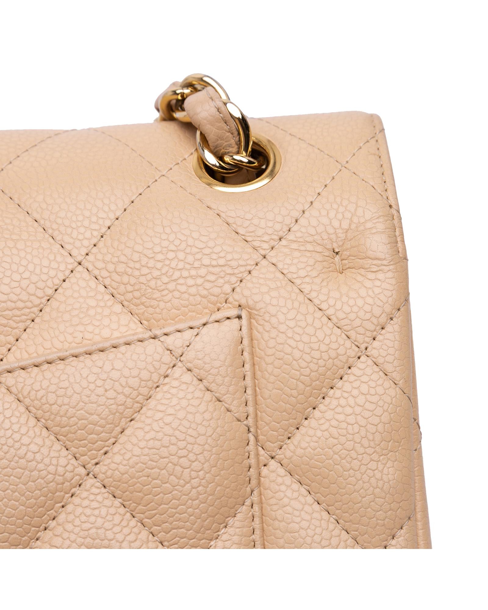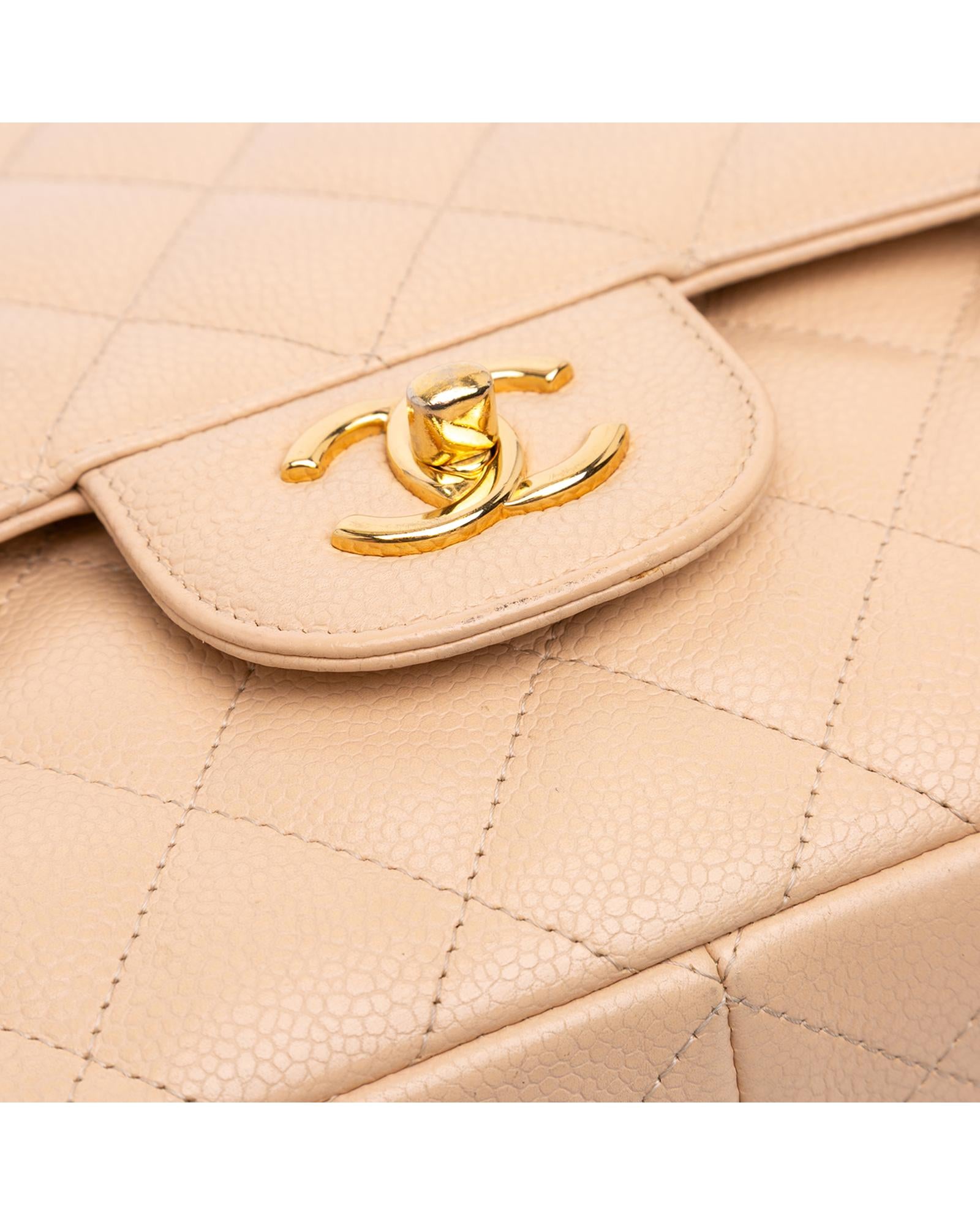 This shoulder bag features a quilted caviar leather body leather woven chain straps a double top flap with CC turn-lock closure an exterior back slip pocket and interior zip and slip pockets.Brand: Chanel Vintage