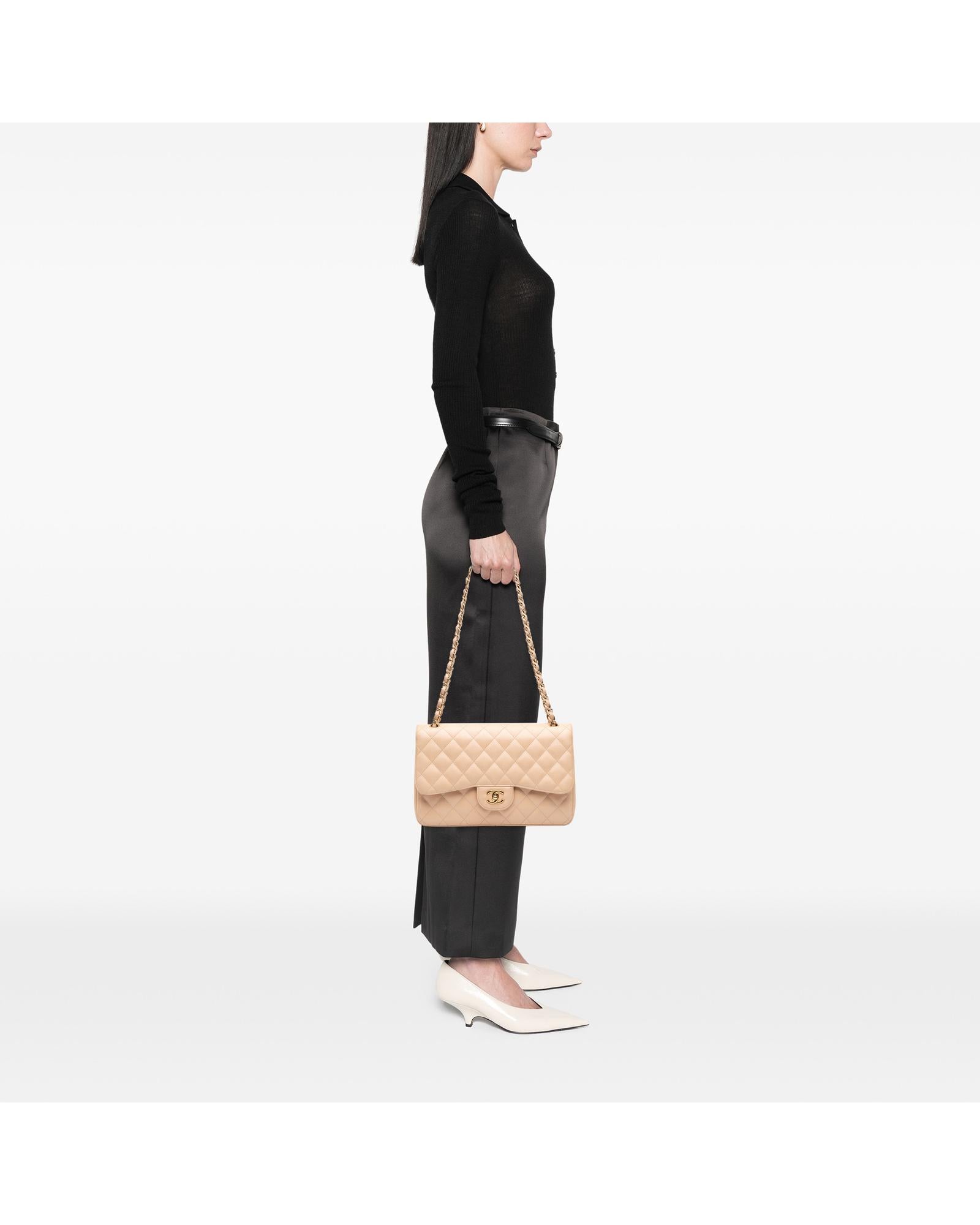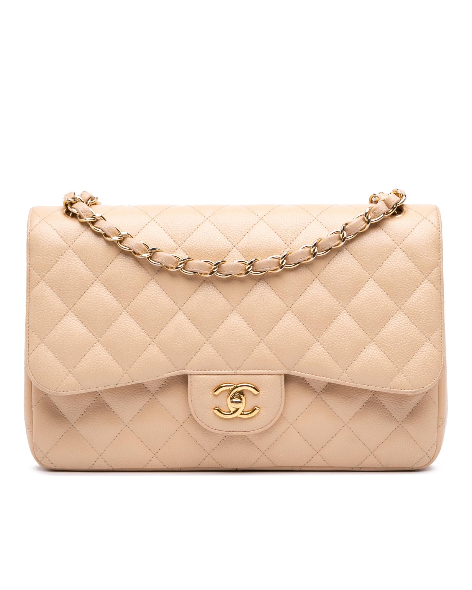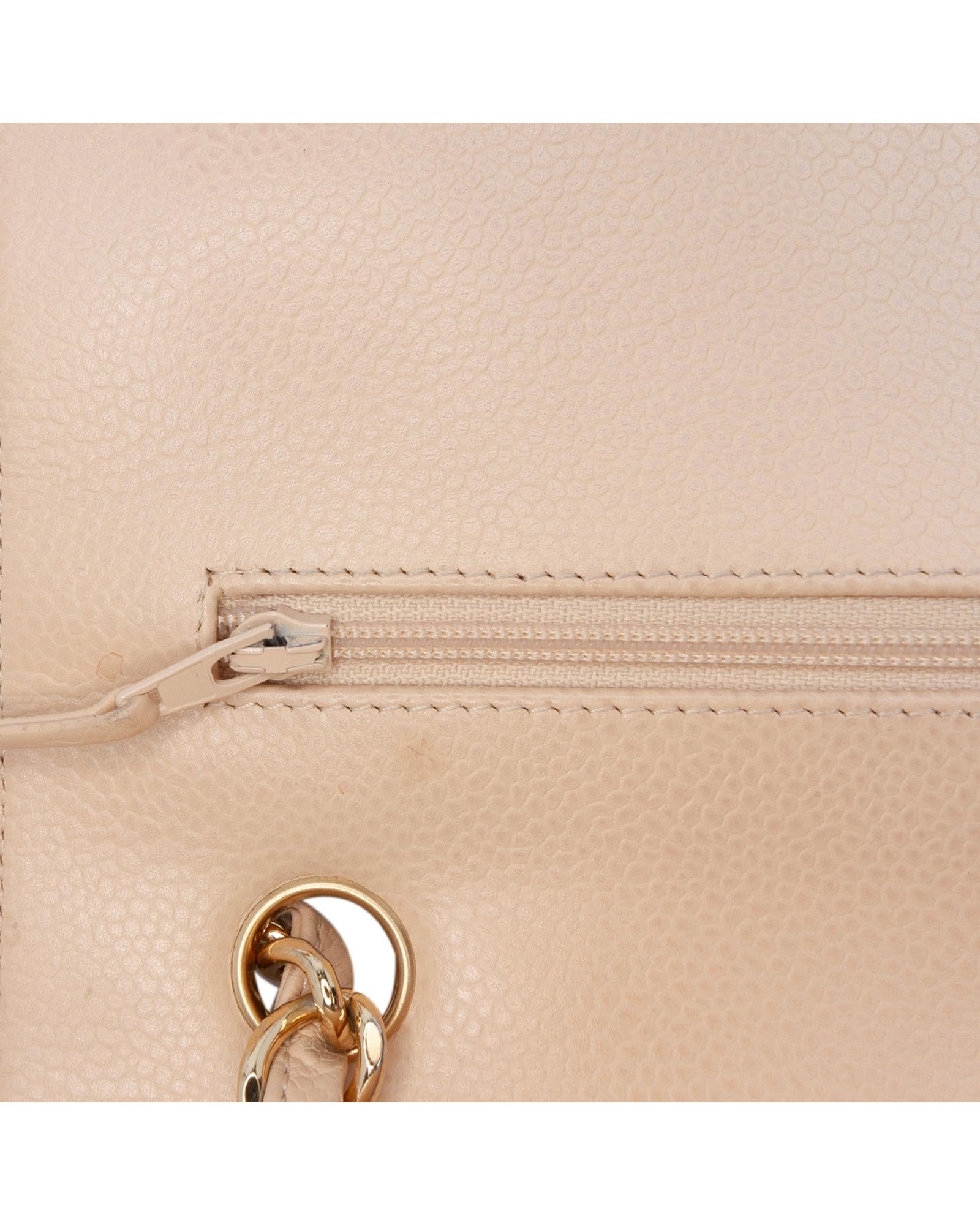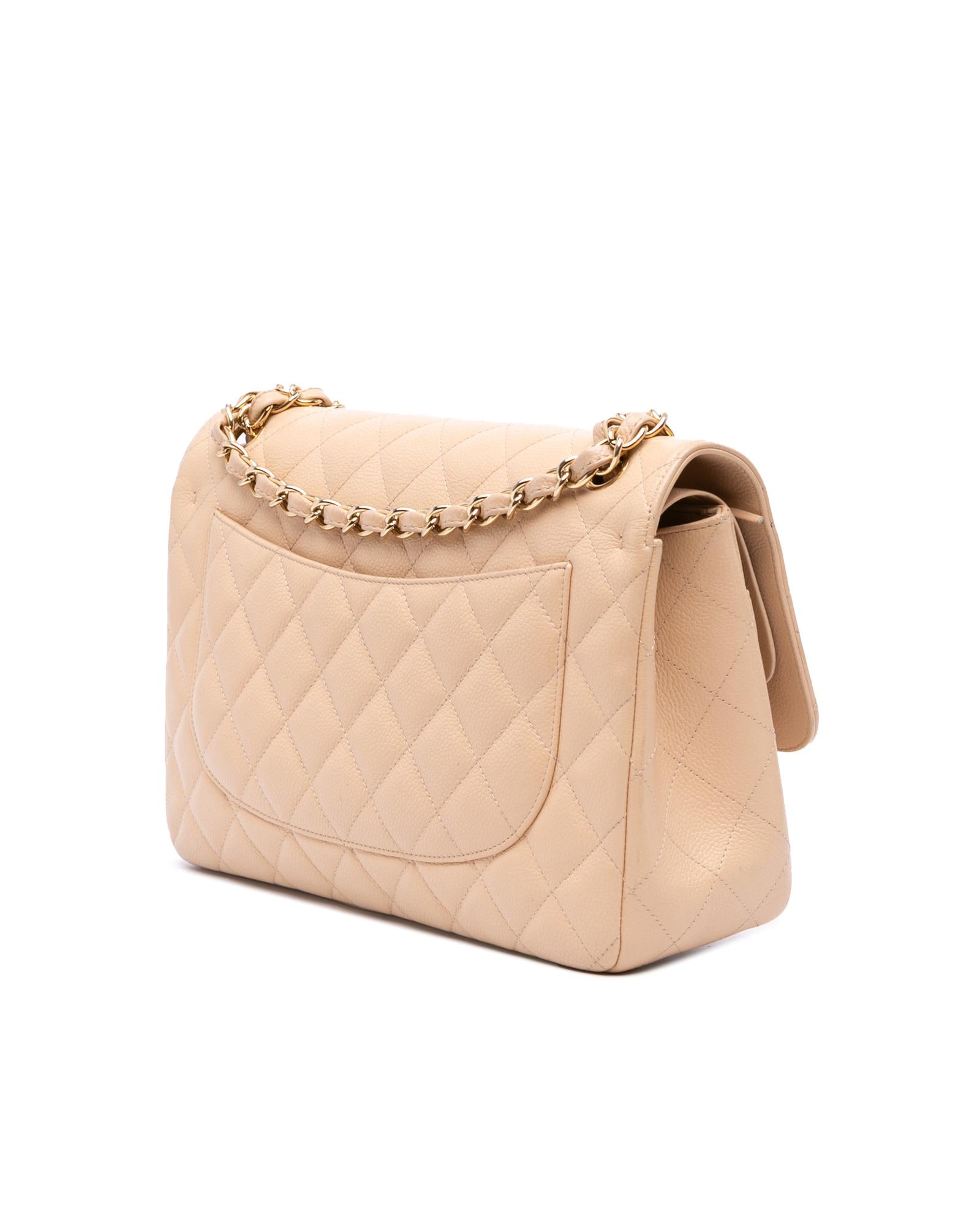 This shoulder bag features a quilted caviar leather body leather woven chain straps a double top flap with CC turn-lock closure an exterior back slip pocket and interior zip and slip pockets.Brand: Chanel Vintage