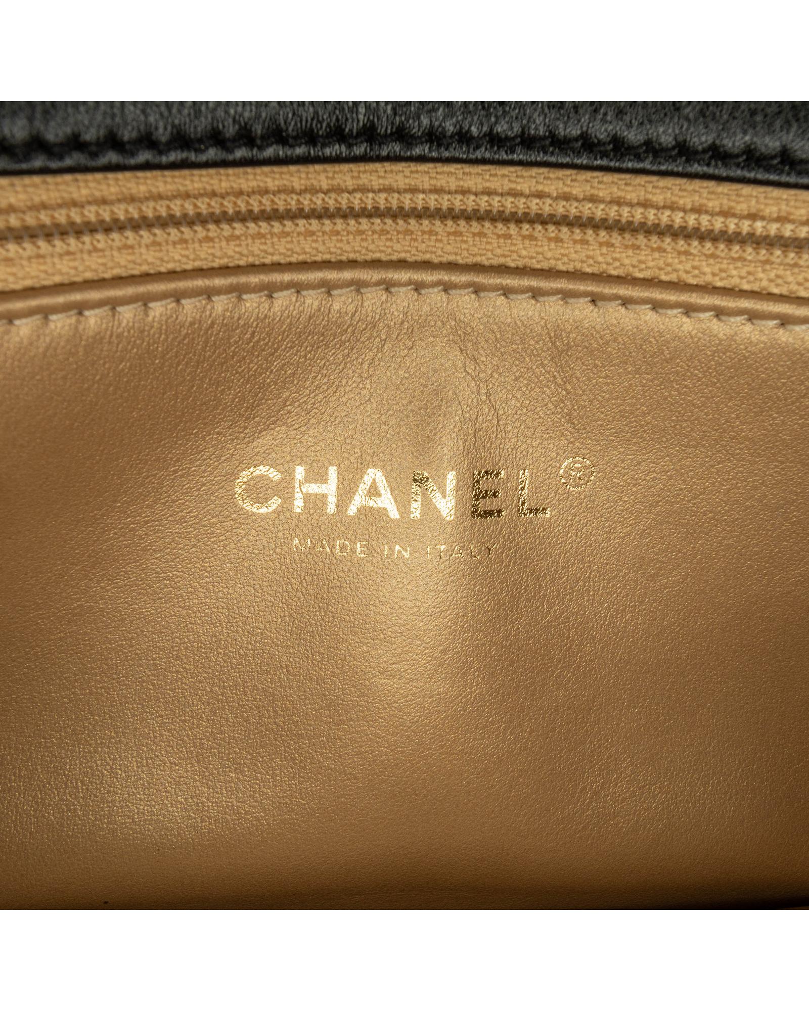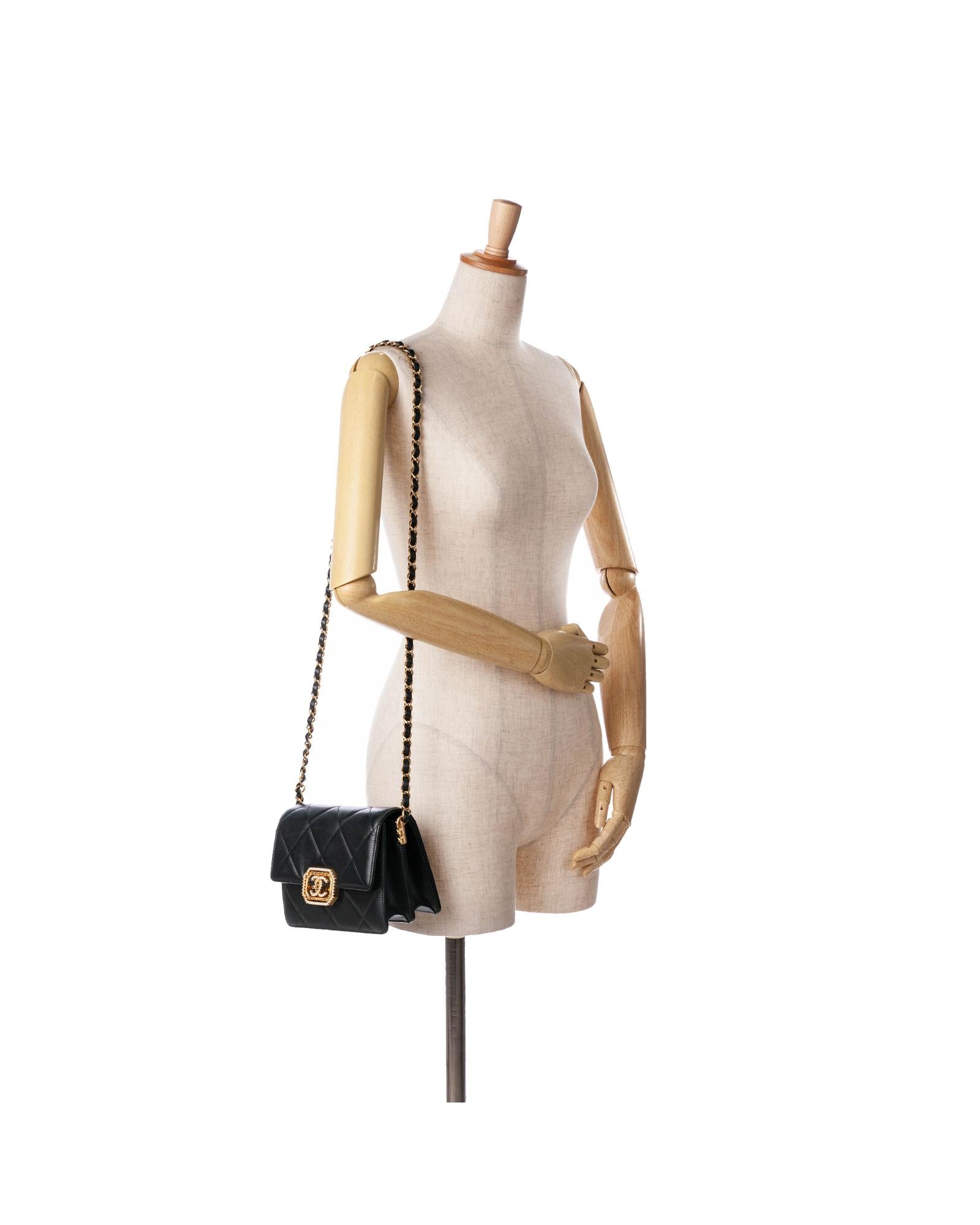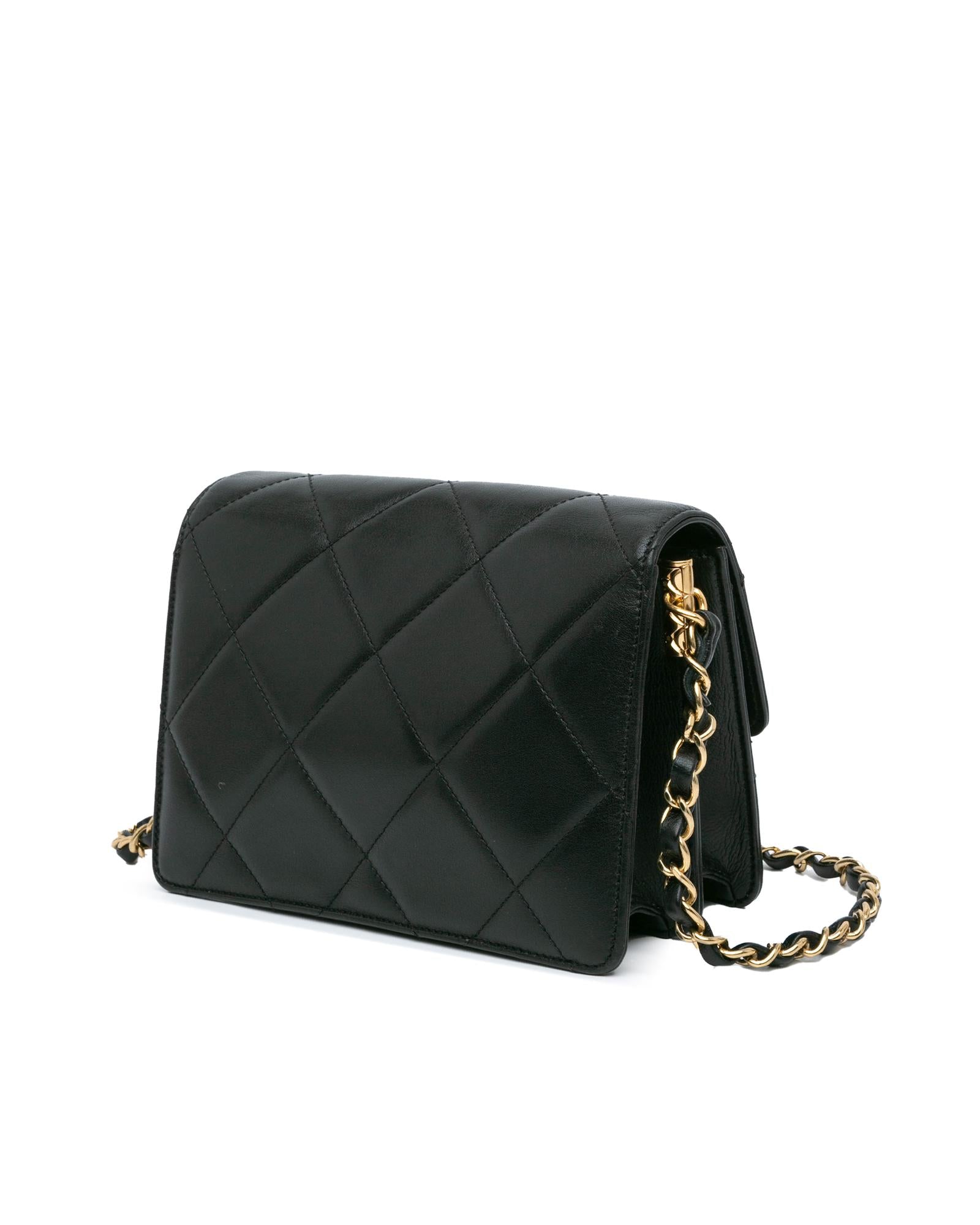 This crossbody bag features lambskin leather body a leather woven chain link shoulder strap a front flap with clasp closure and an interior zip pocket.Brand: Chanel Vintage