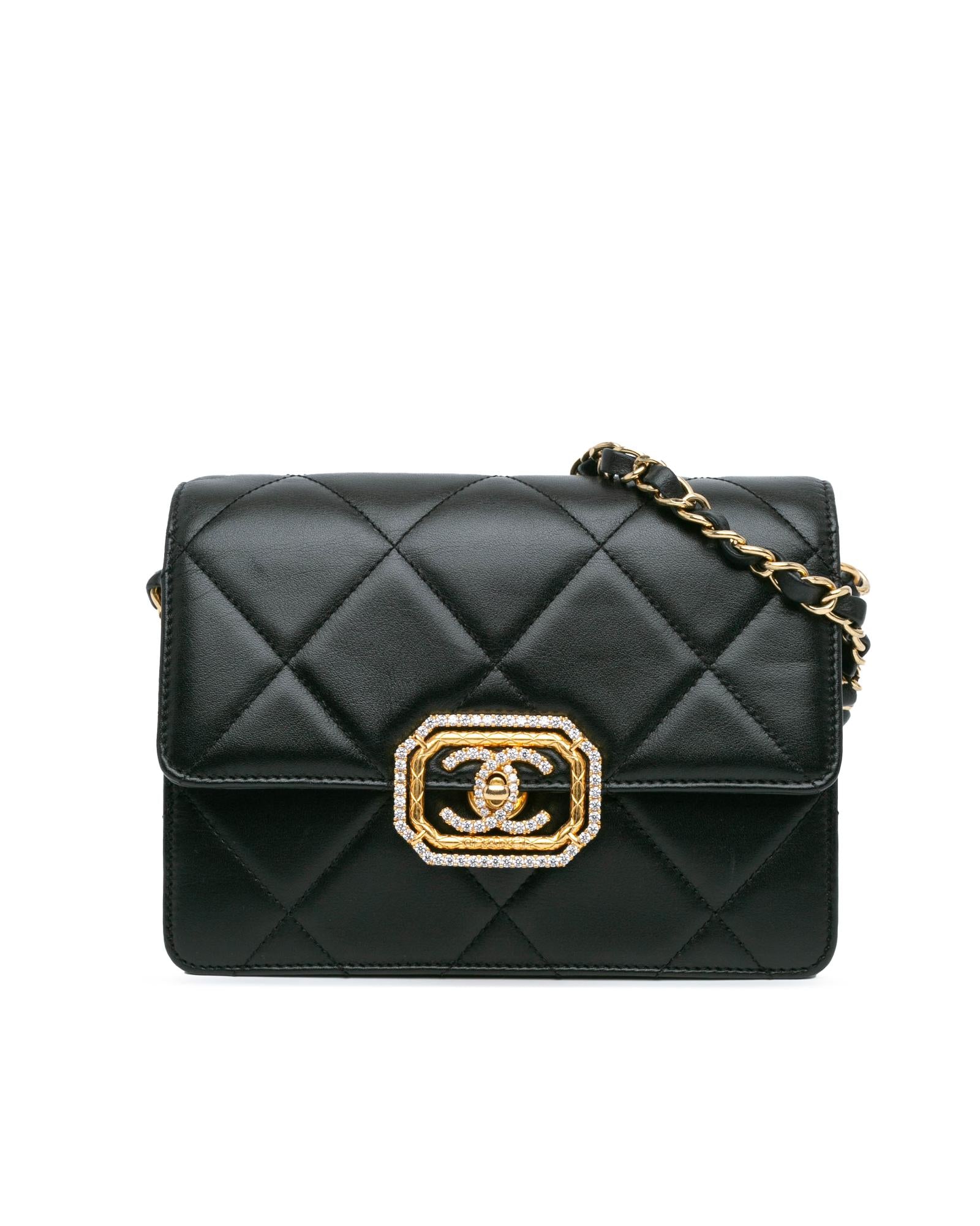 Pre-owned Quilted Leather Flap Chain Shoulder Bag with Jeweled Embellishment