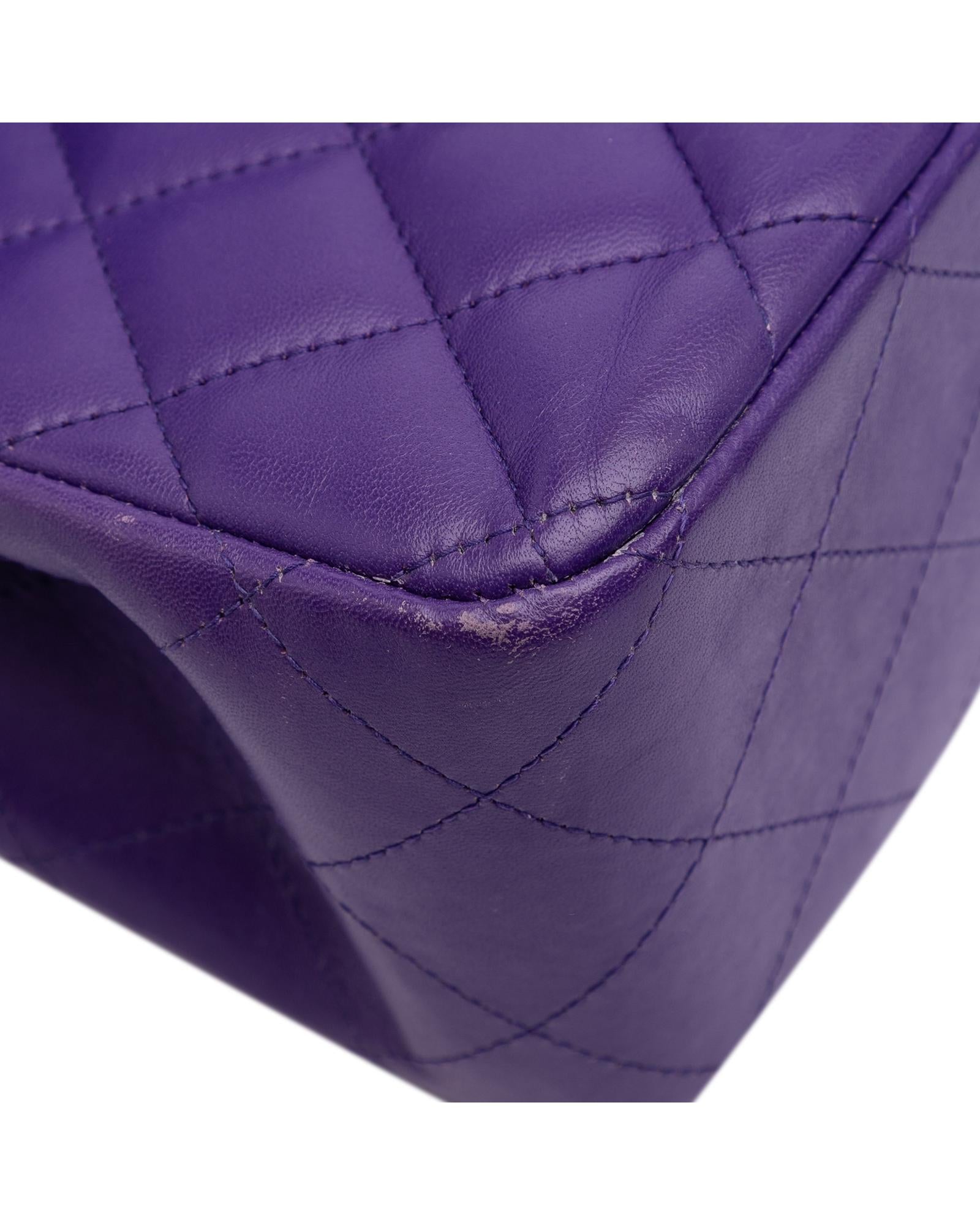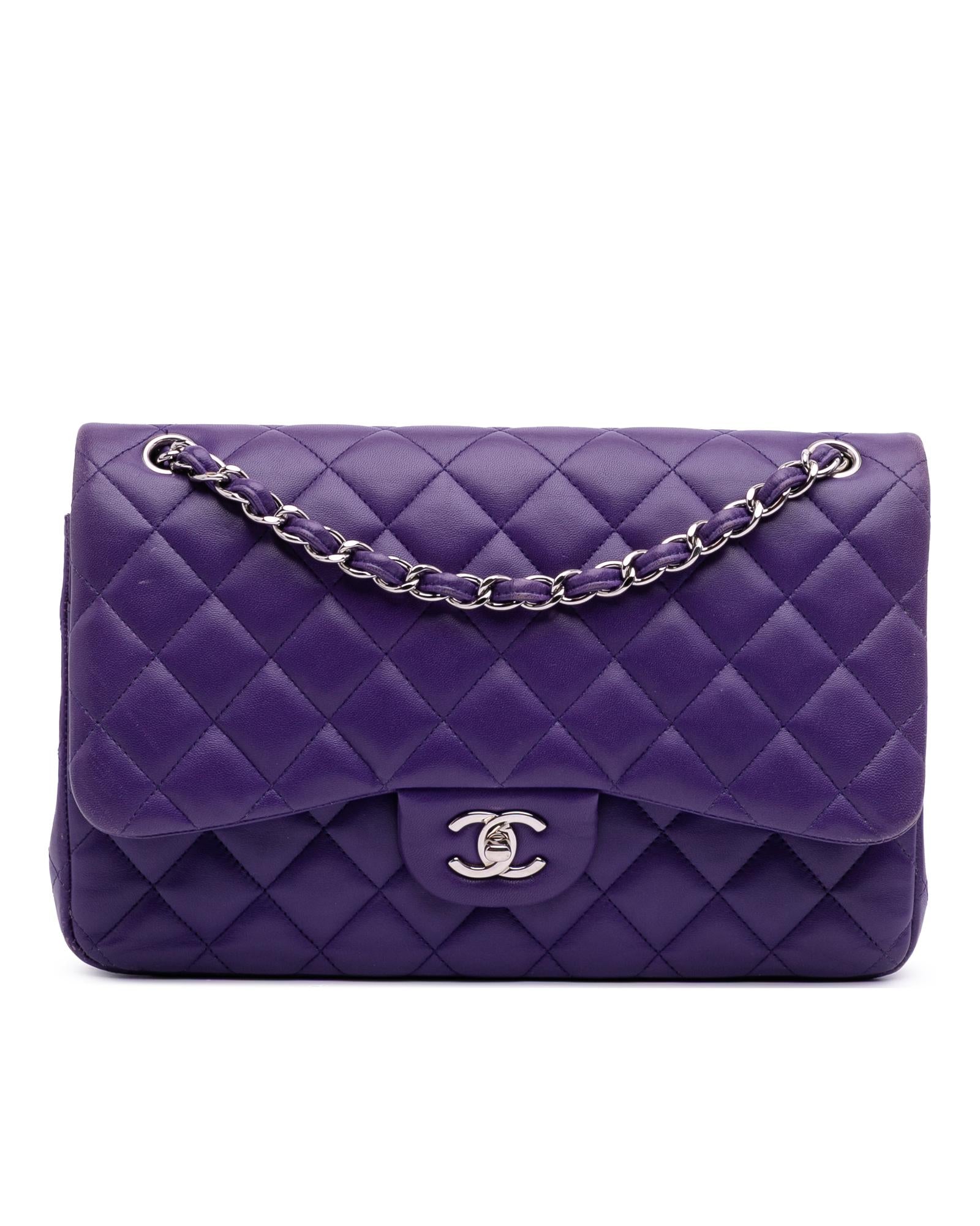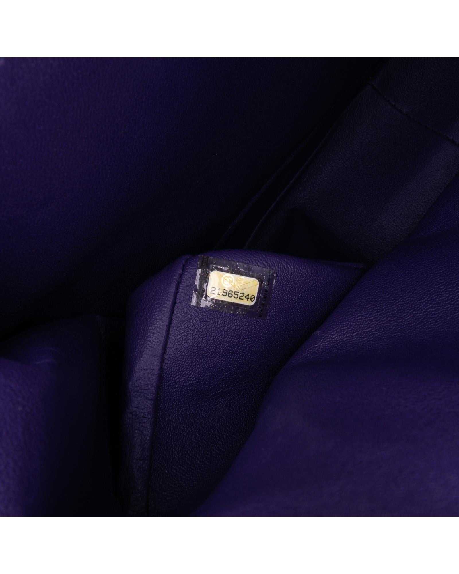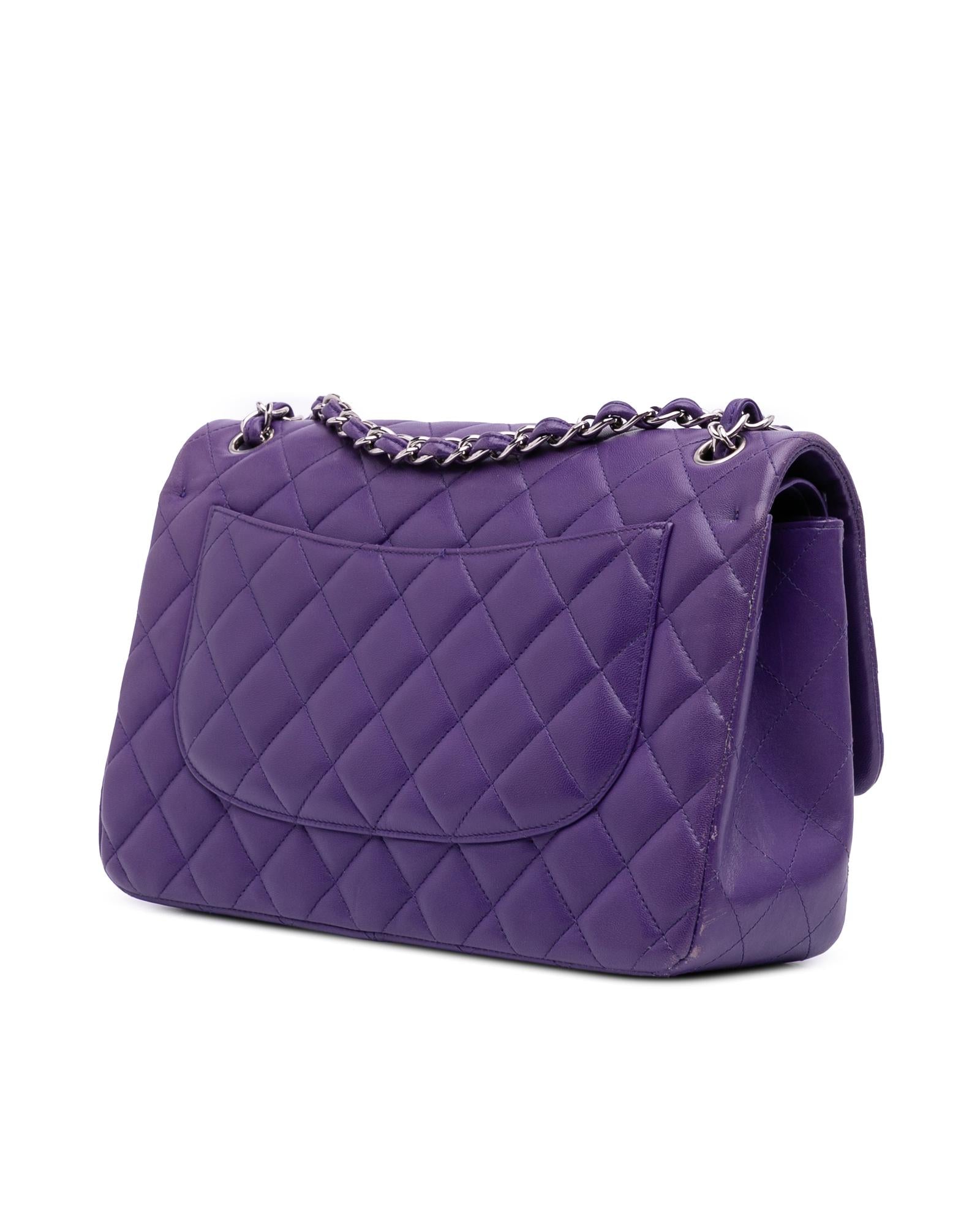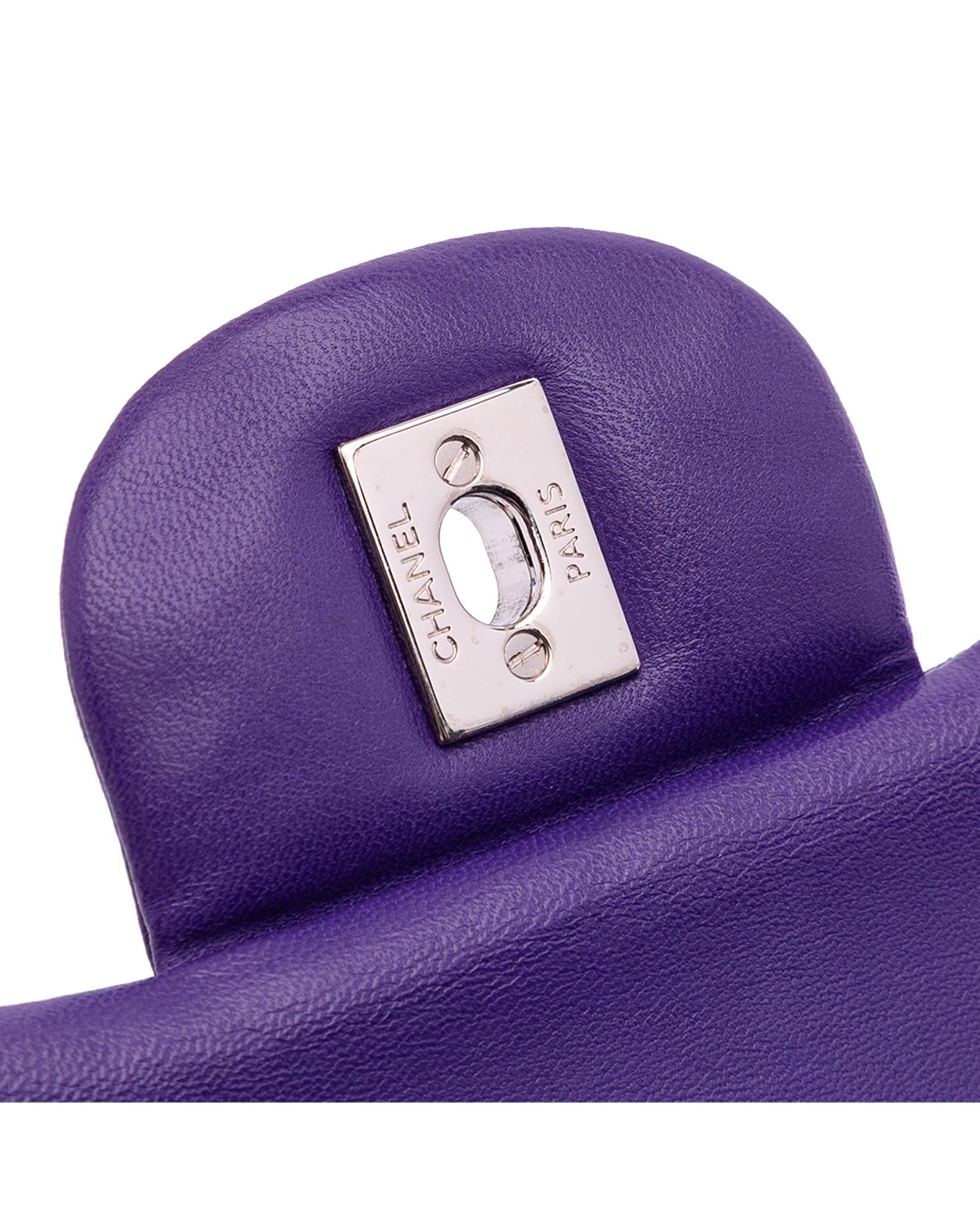 This shoulder bag features a quilted lambskin leather body leather-woven chain straps double front flaps with CC turnlock closure an exterior back slip pocket and interior slip pockets.Brand: Chanel Vintage