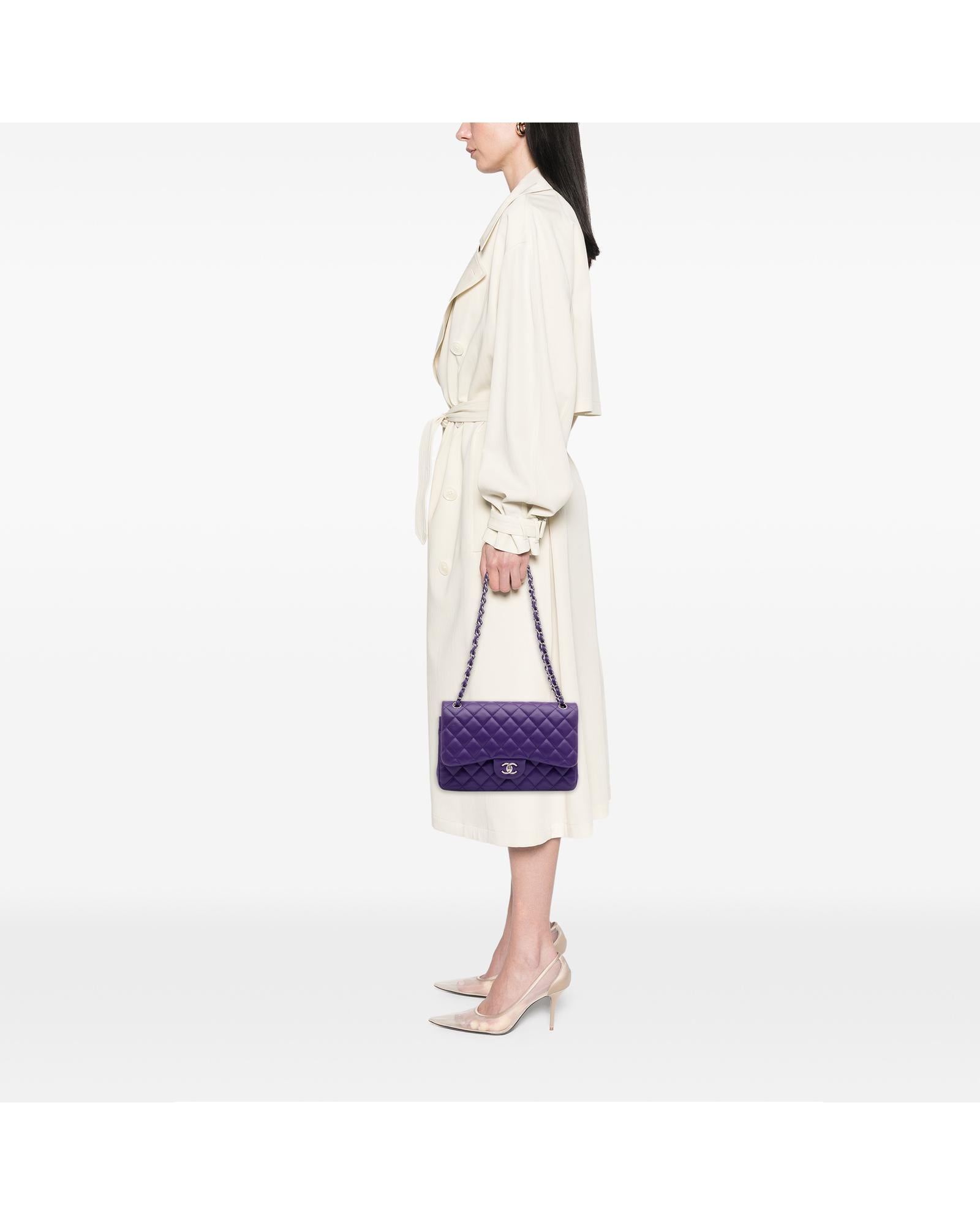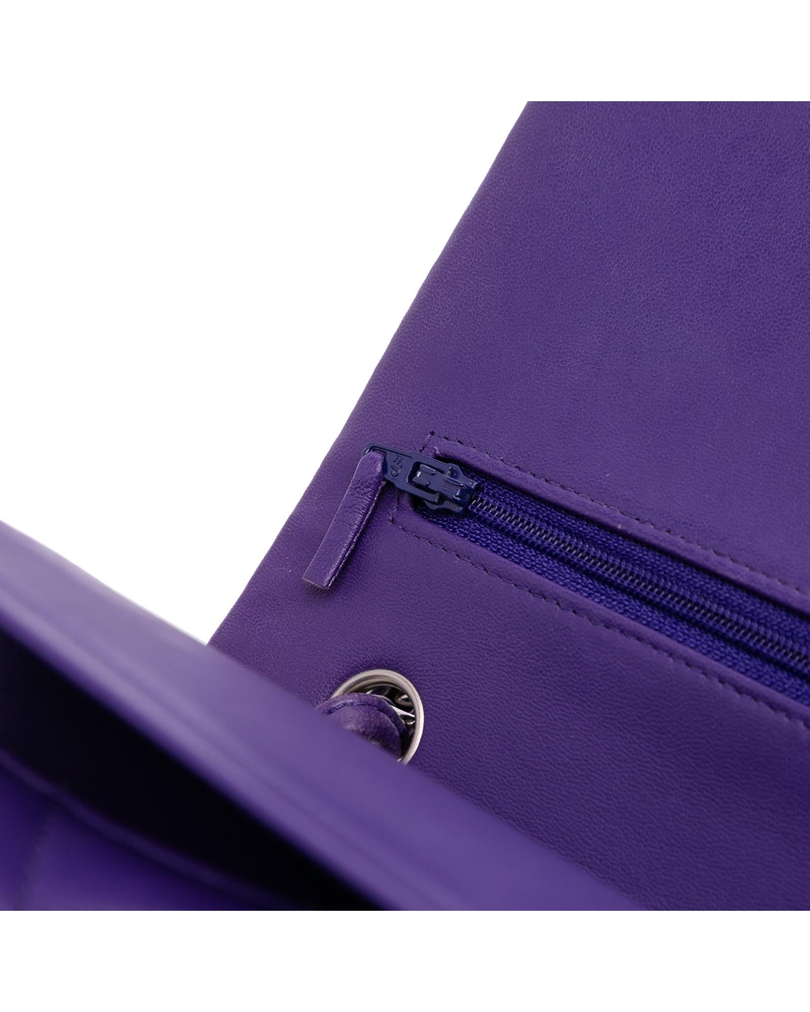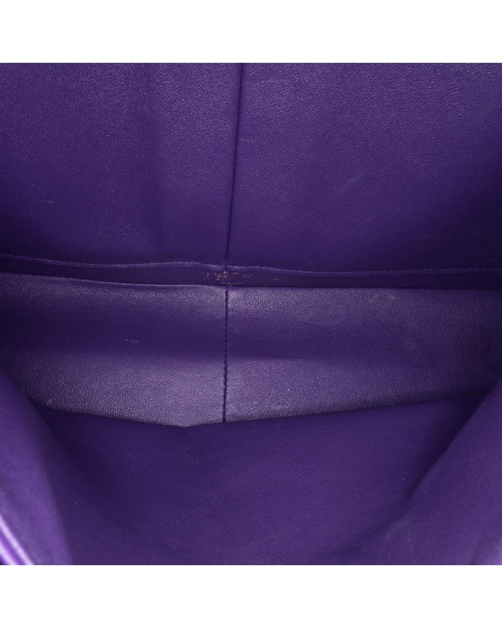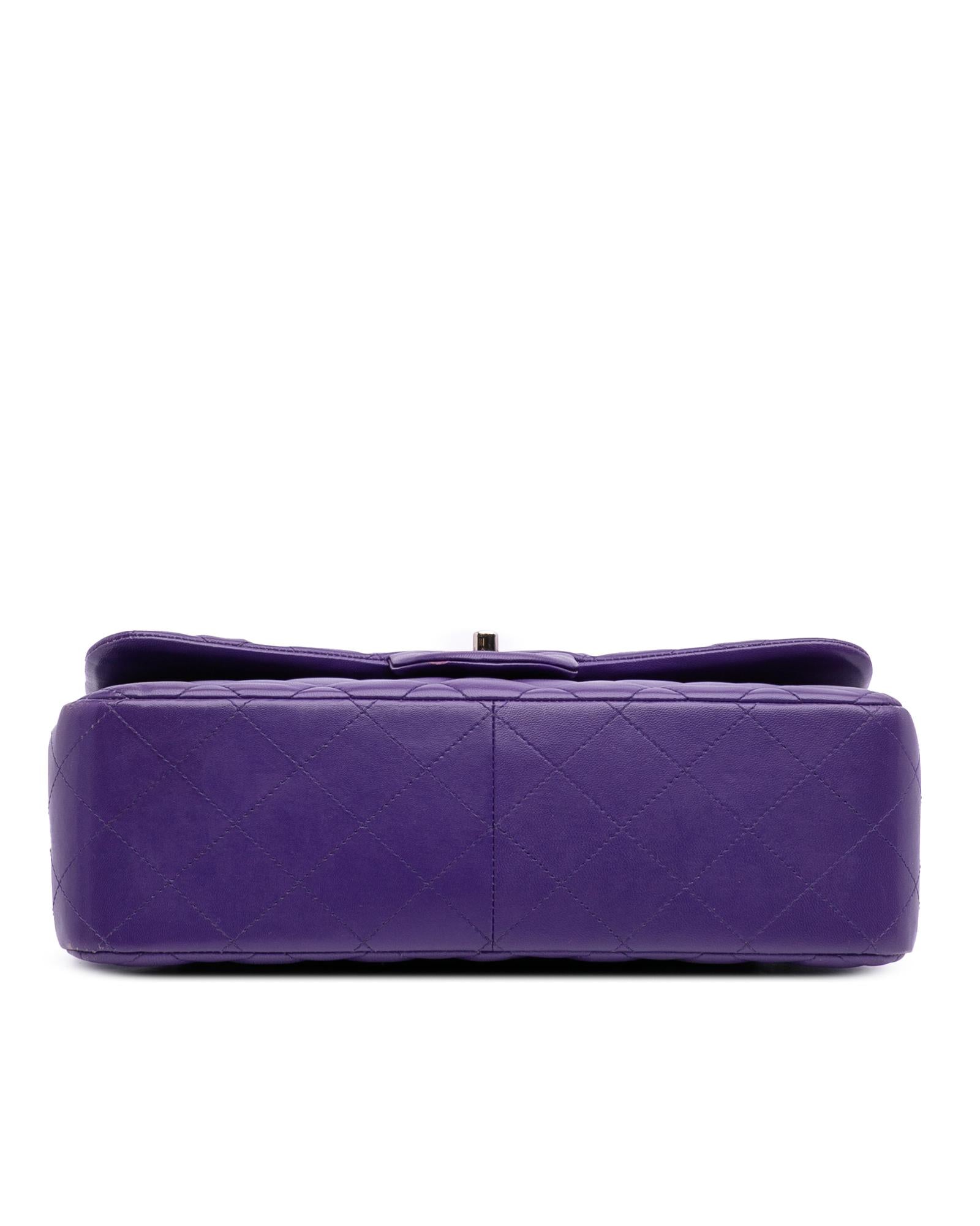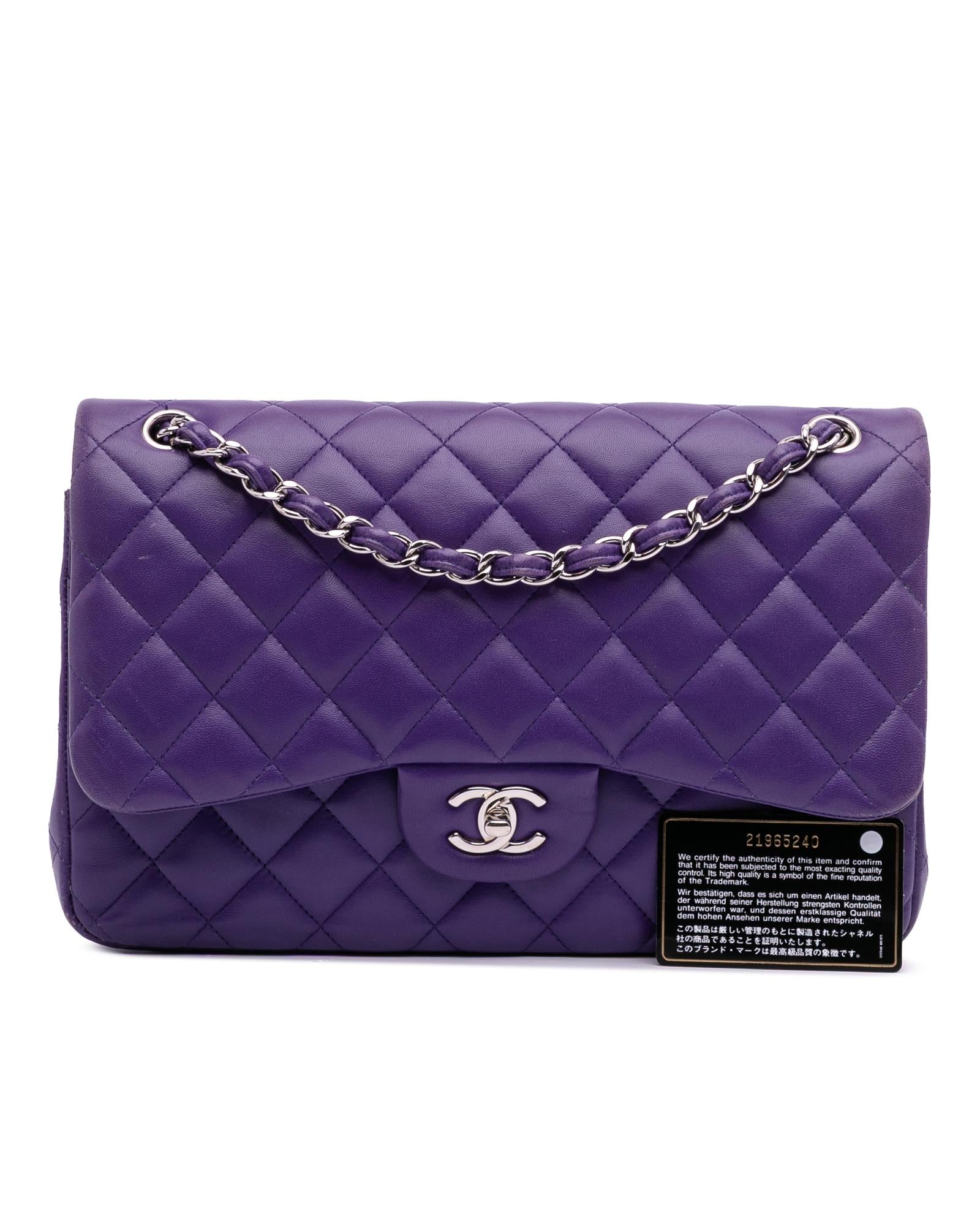 This shoulder bag features a quilted lambskin leather body leather-woven chain straps double front flaps with CC turnlock closure an exterior back slip pocket and interior slip pockets.Brand: Chanel Vintage