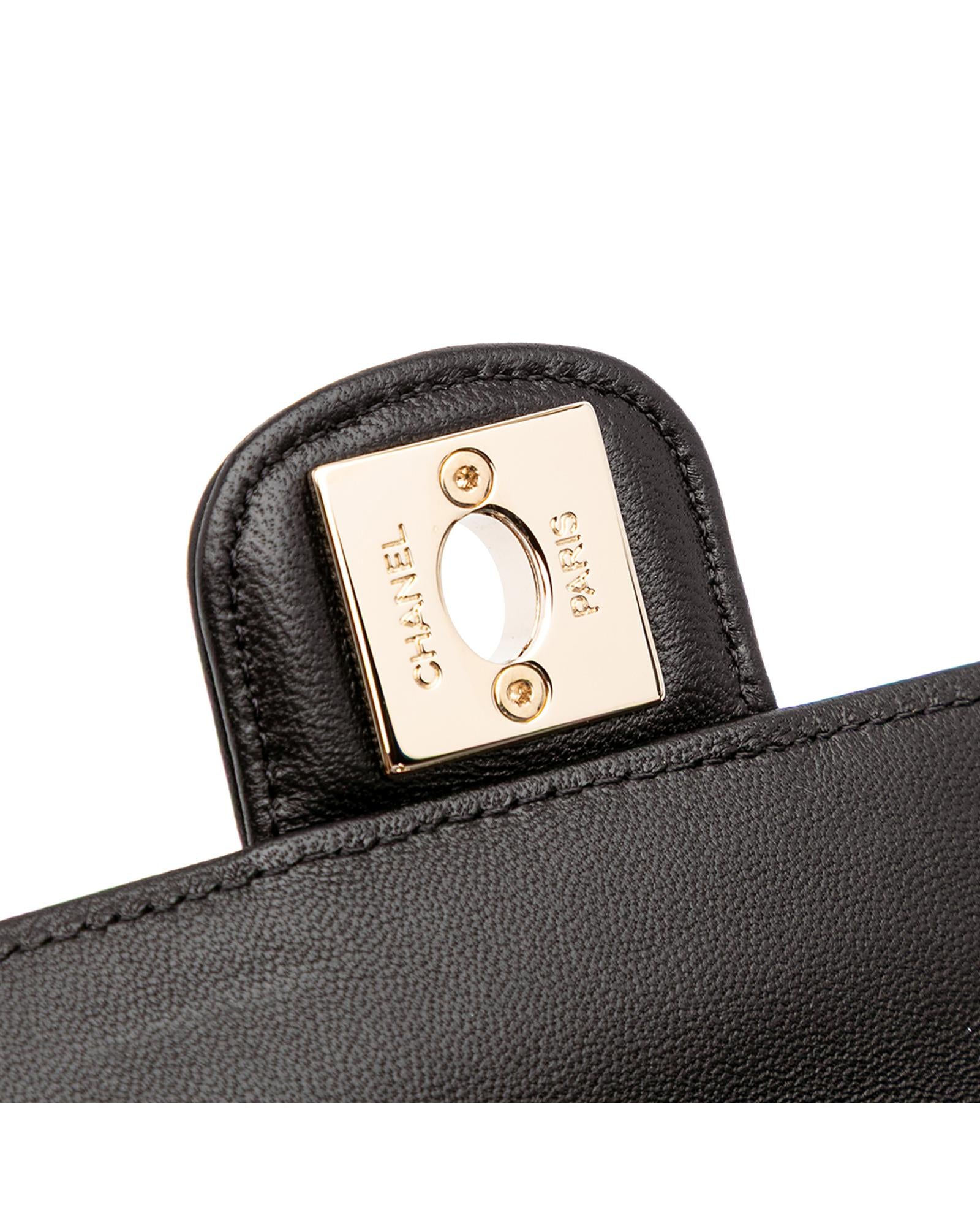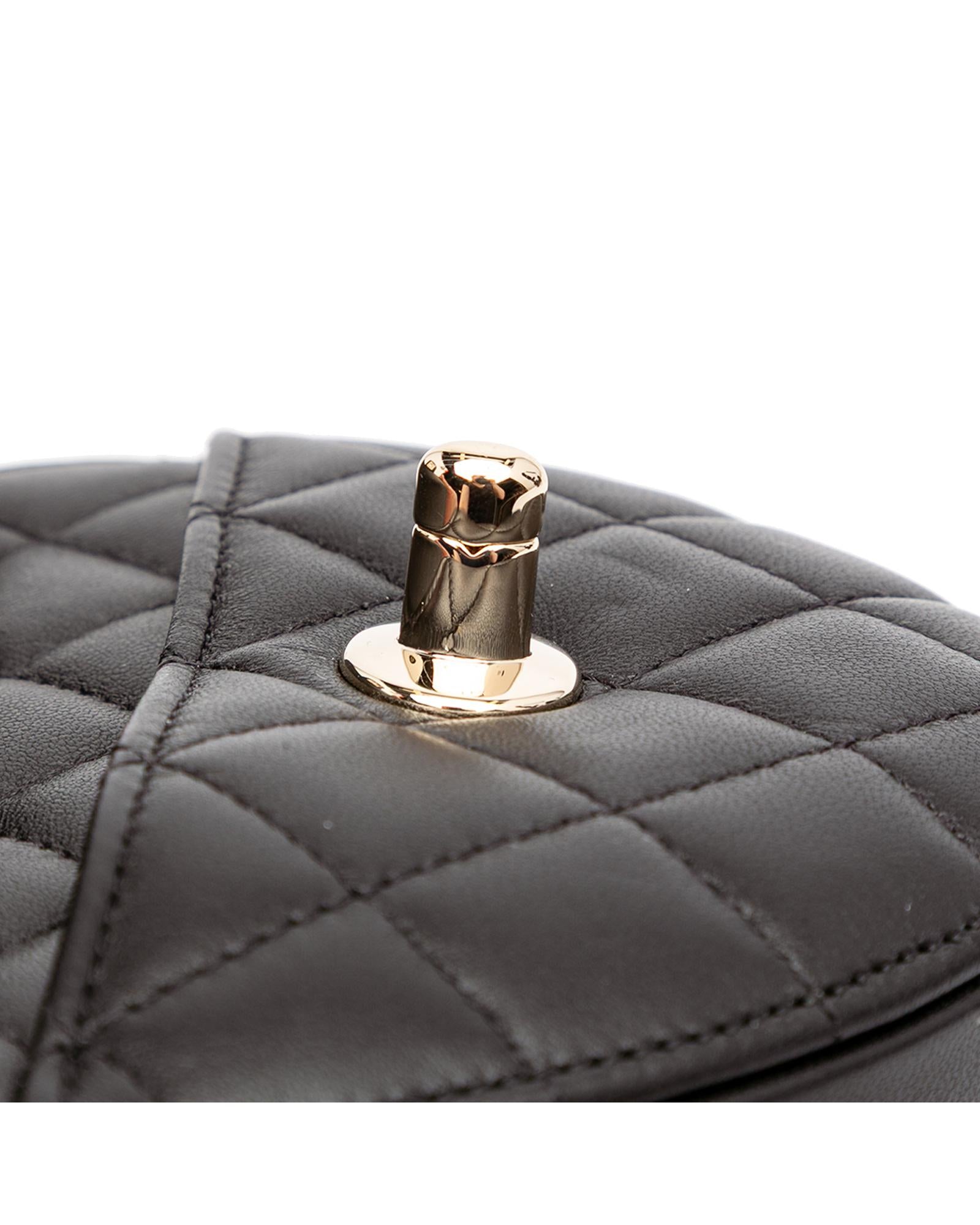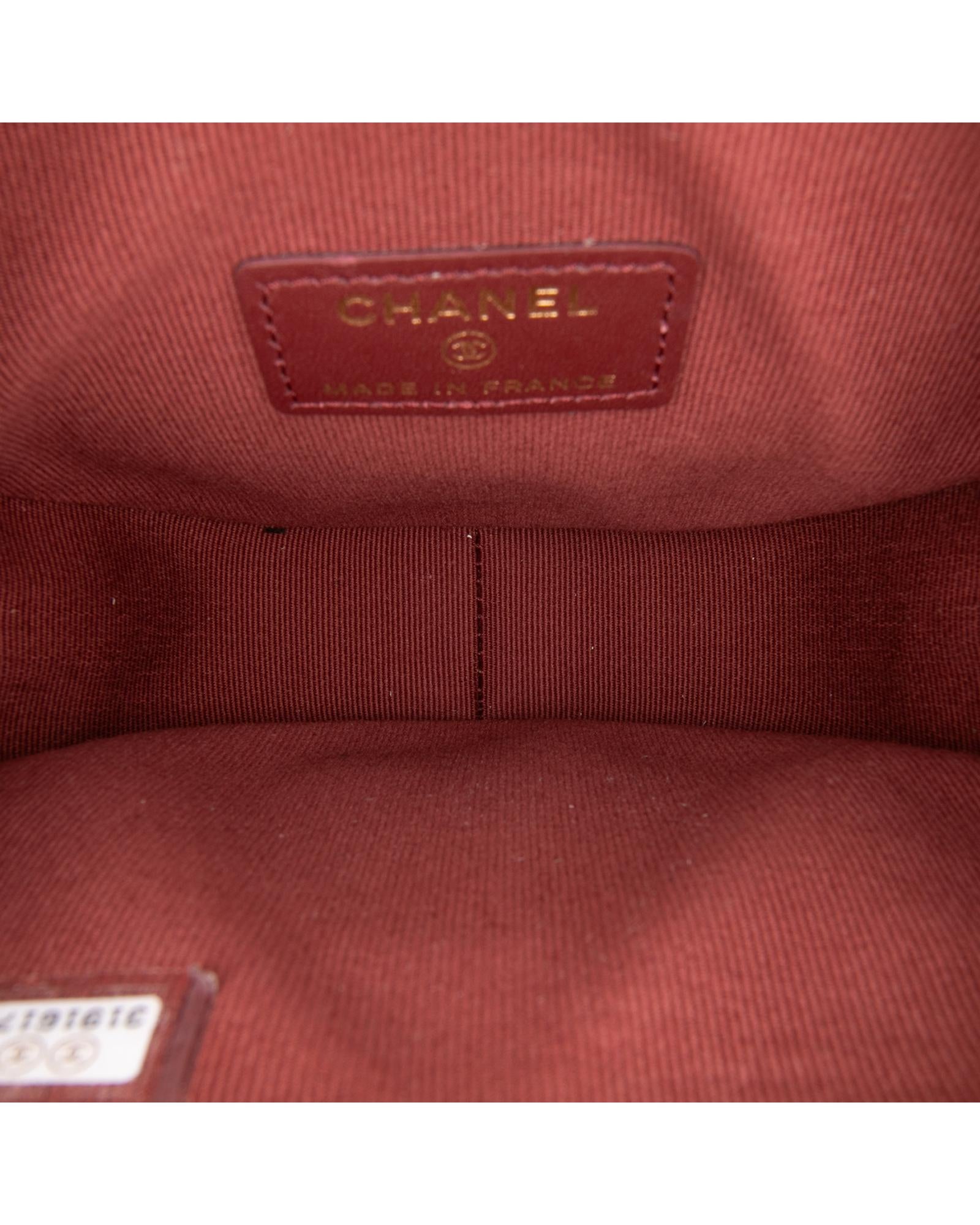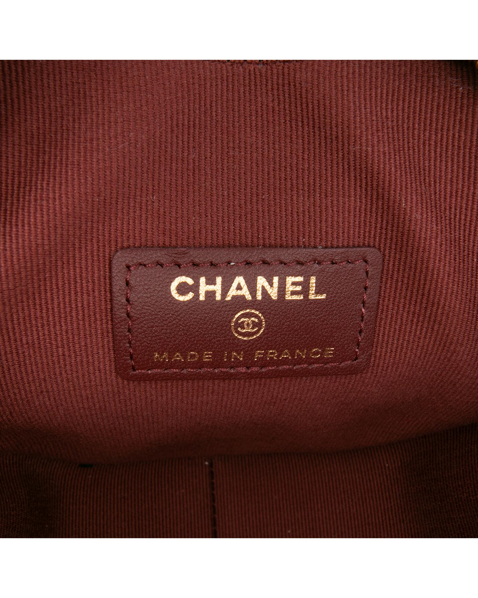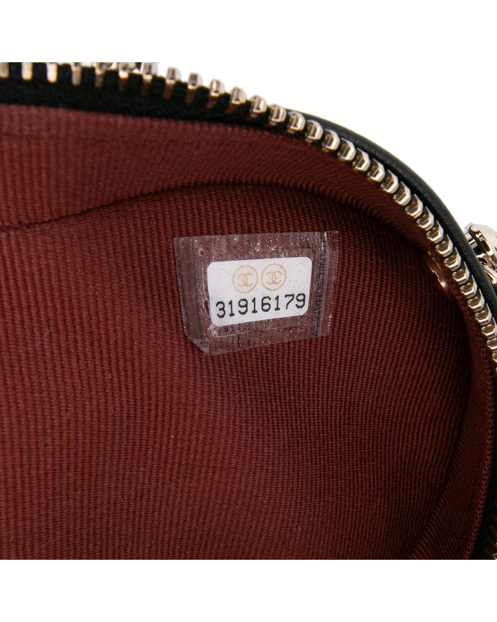 This crossbody bag features a quilted lambskin leather body a leather woven chain shoulder strap a zip-around closure an exterior front flap pocket with CC turn-lock closure and an exterior back slip pocket.Brand: Chanel Vintage