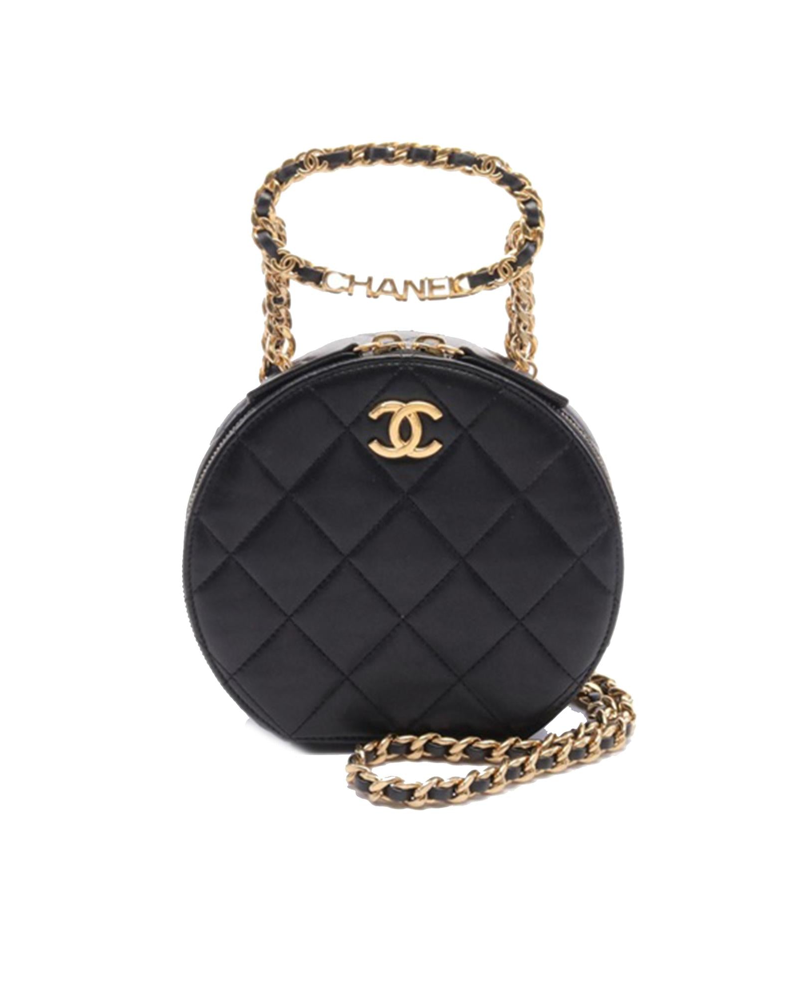 This satchel features a quilted lambskin leather body a leather-woven oval chain top handle with logo details a leather-woven chain strap a zip around closure and an interior slip pocket.Brand: Chanel Vintage