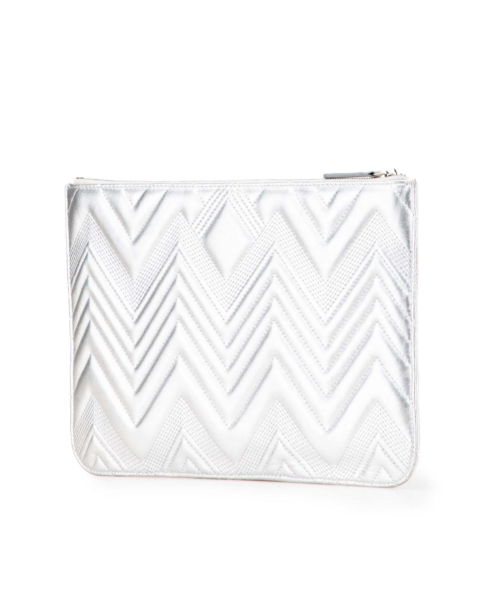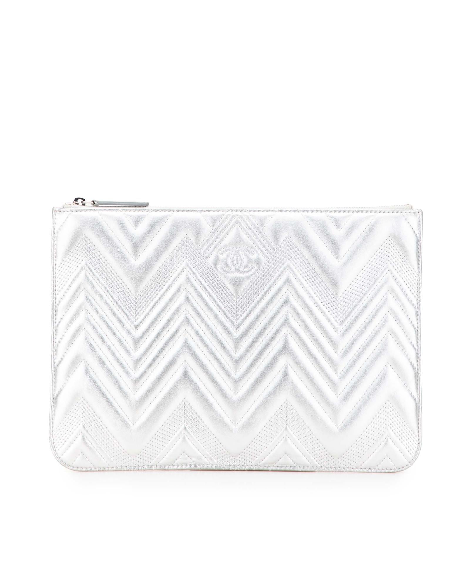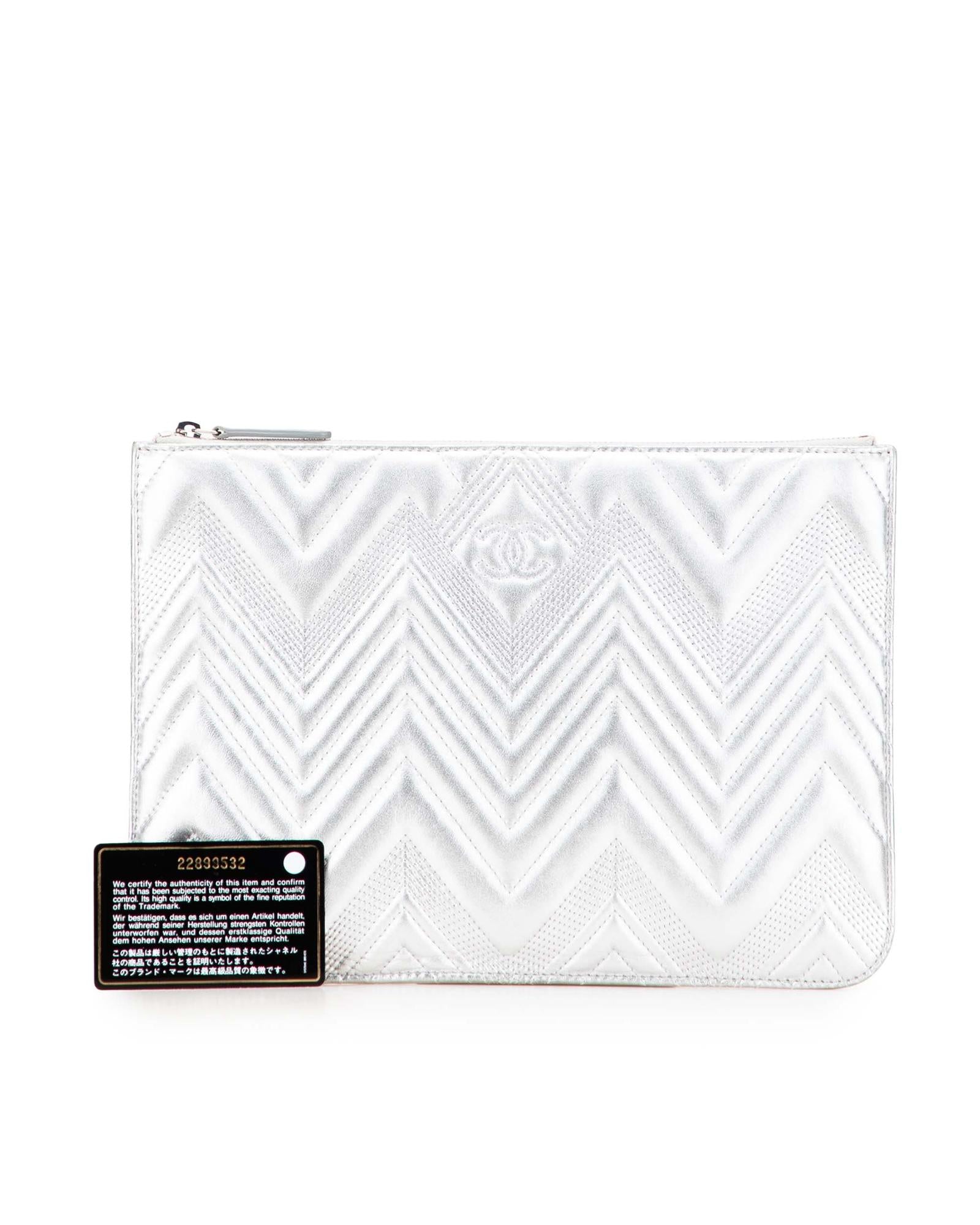 This clutch bag features a chevron leather body top zip closure and an interior pocket.Brand: Chanel Vintage
