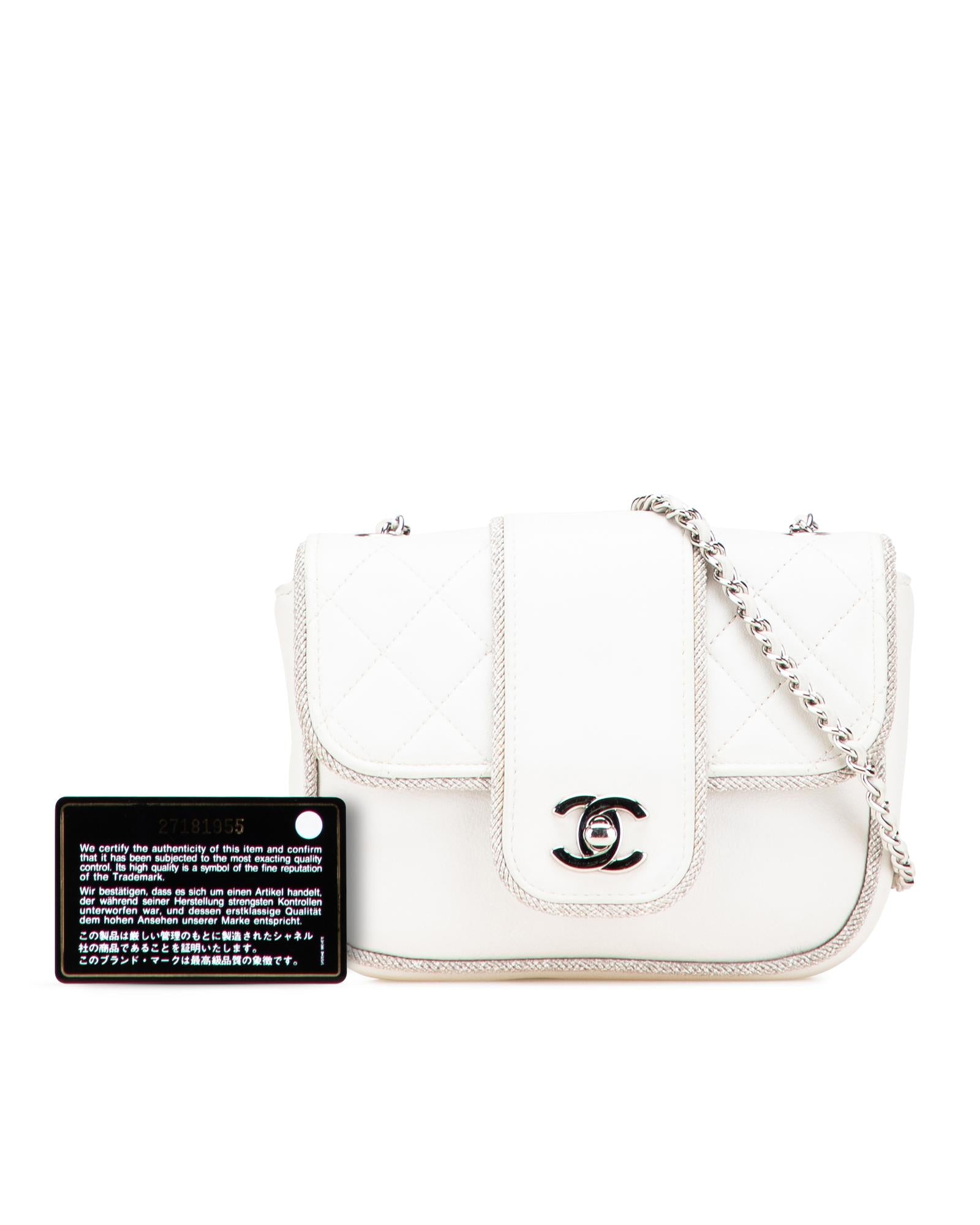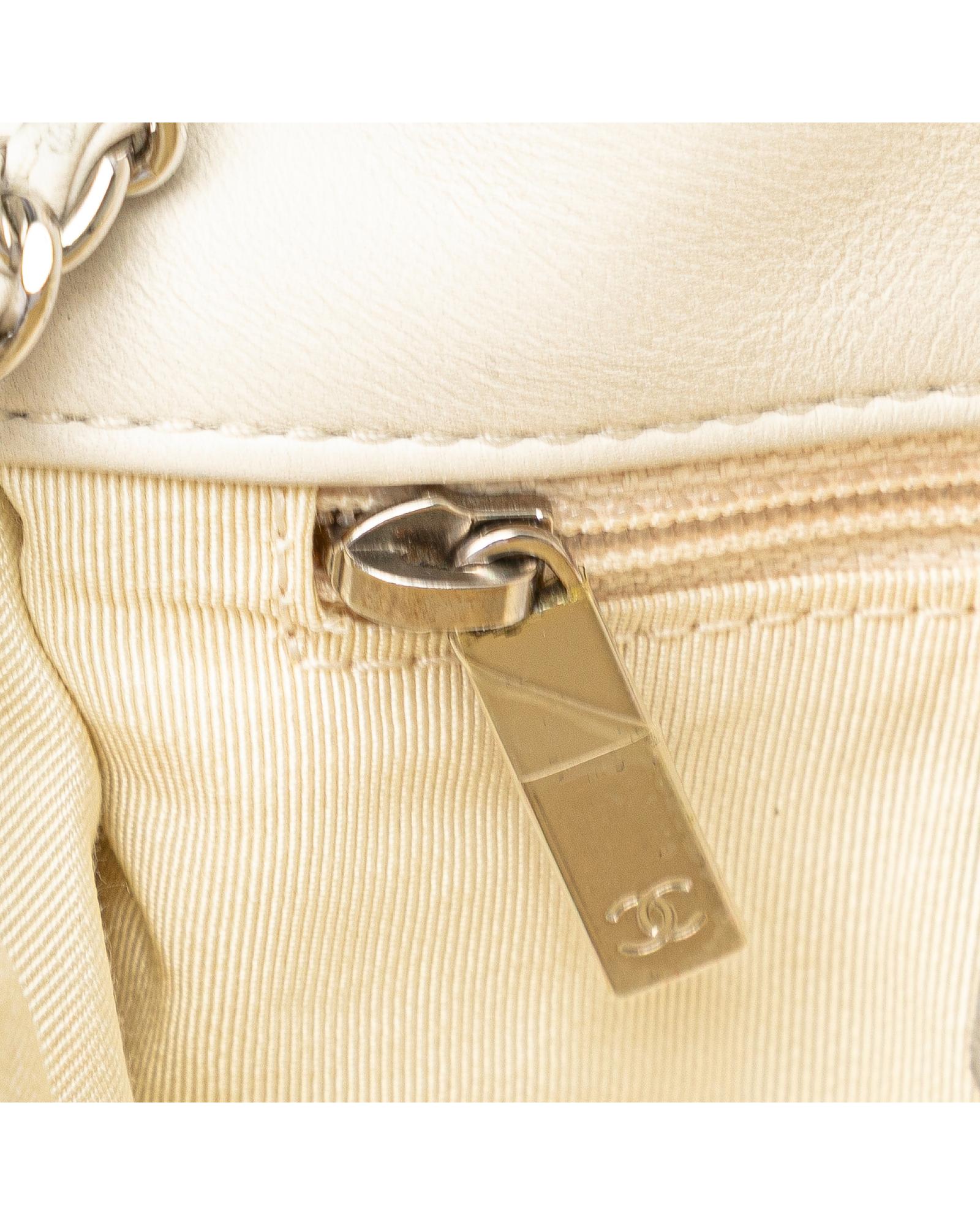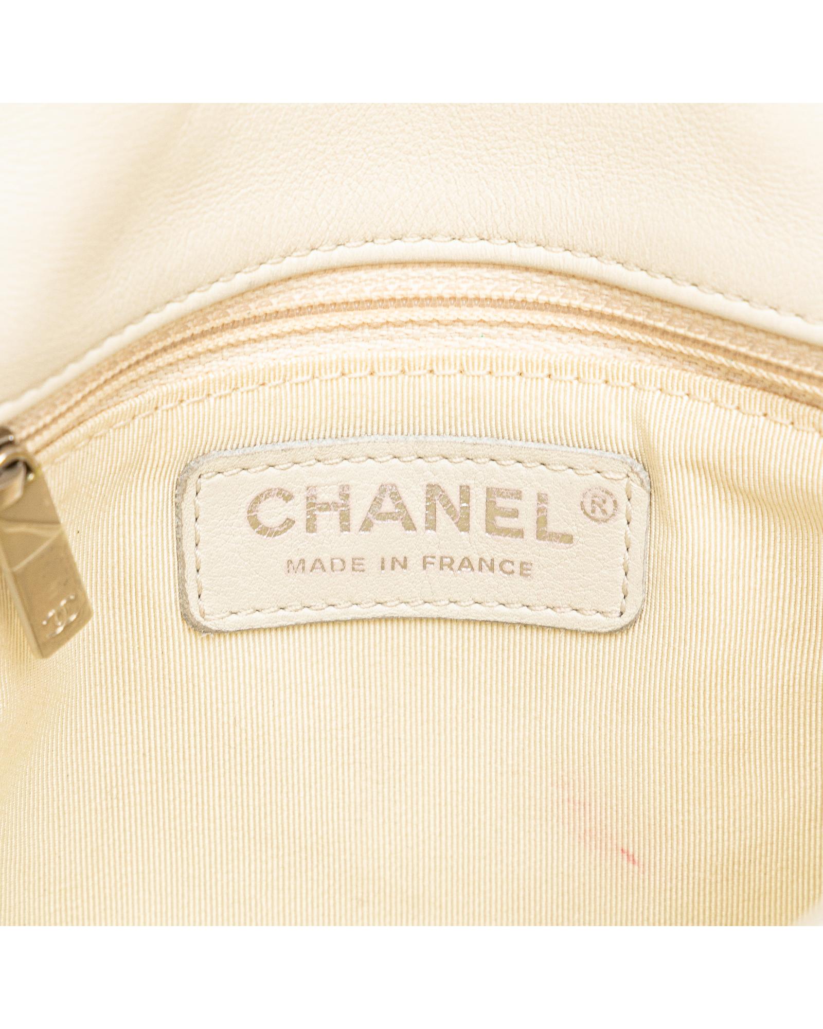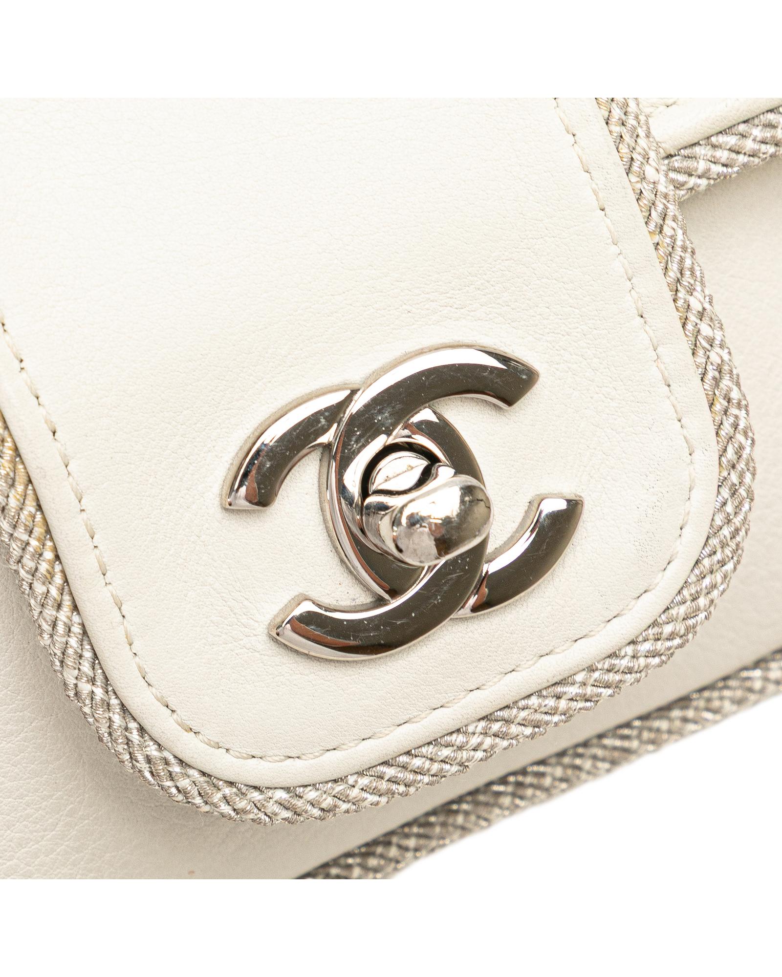 This shoulder bag features quilted lambskin leather with metallic trim border a leather woven chain link shoulder strap a front flap with CC turn-lock closure and an interior zip pocket.Brand: Chanel Vintage