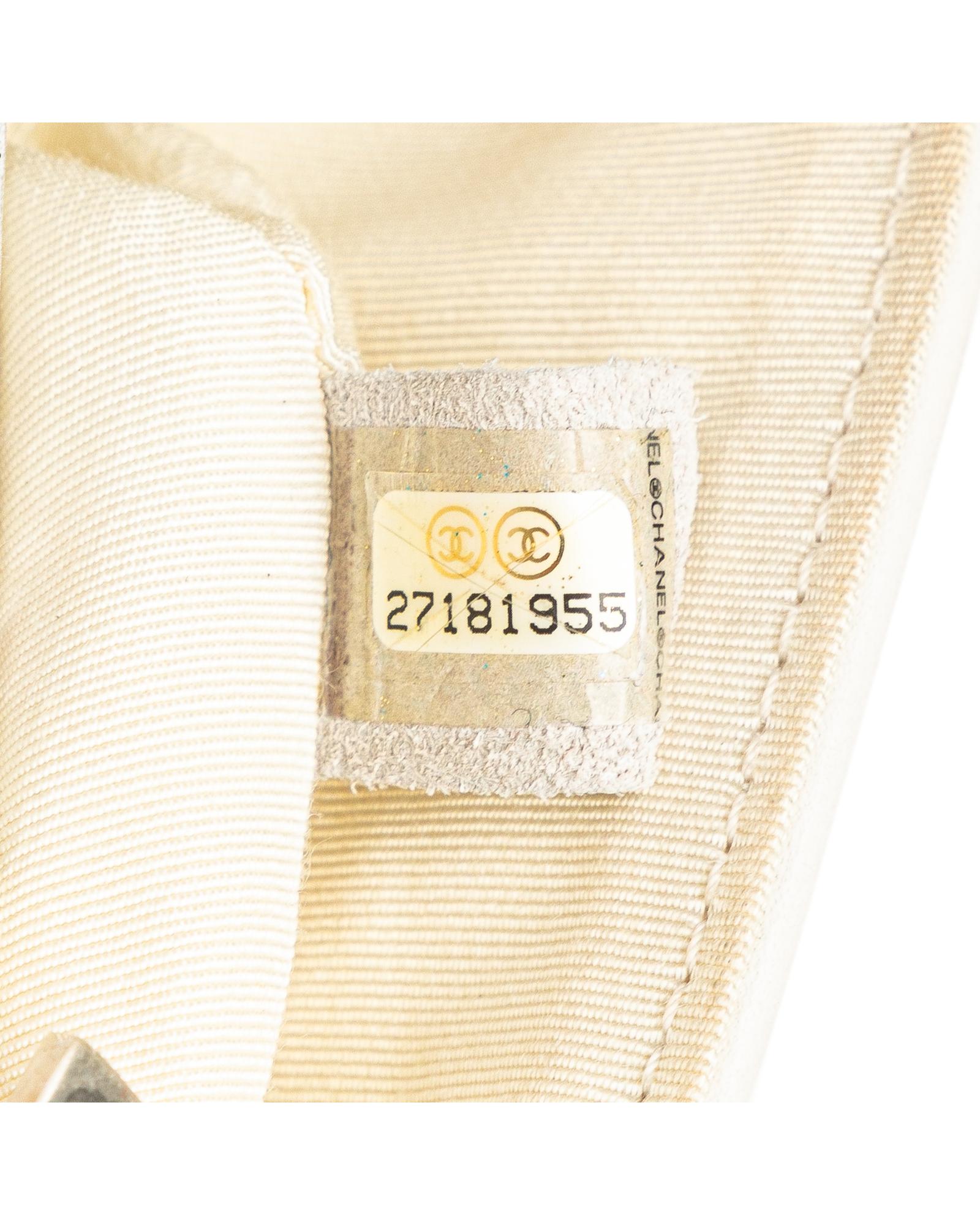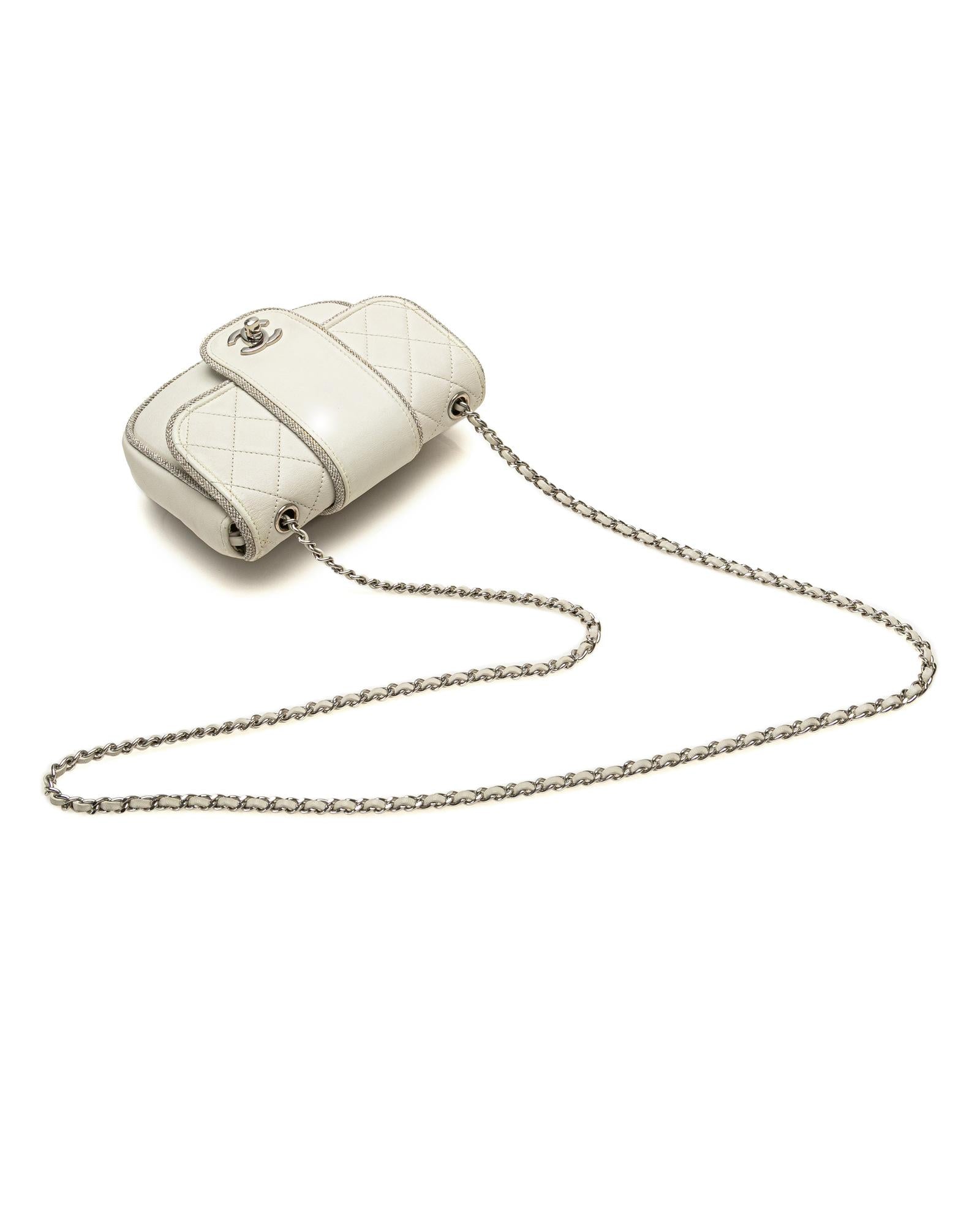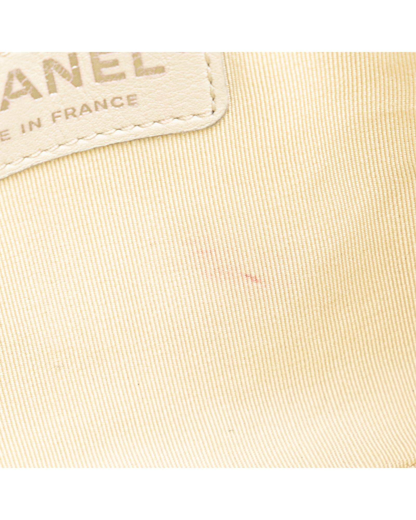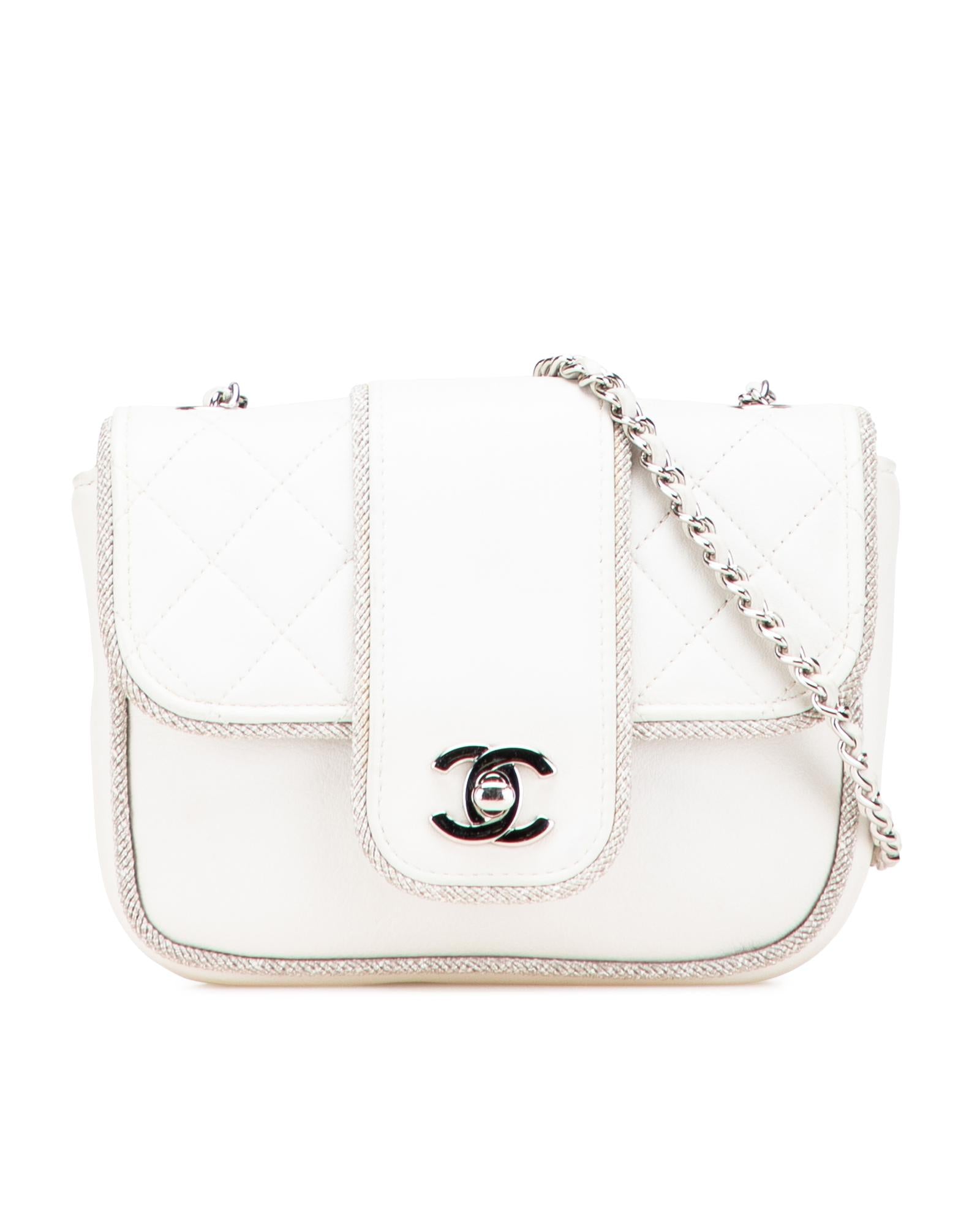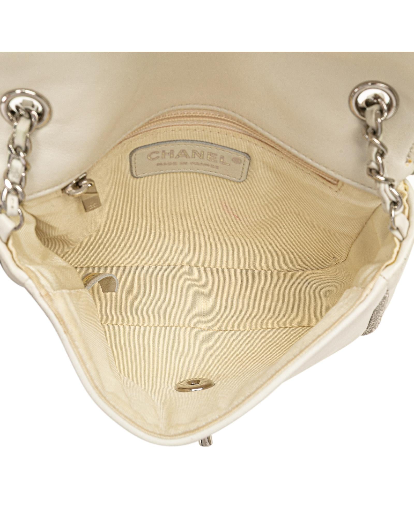 This shoulder bag features quilted lambskin leather with metallic trim border a leather woven chain link shoulder strap a front flap with CC turn-lock closure and an interior zip pocket.Brand: Chanel Vintage