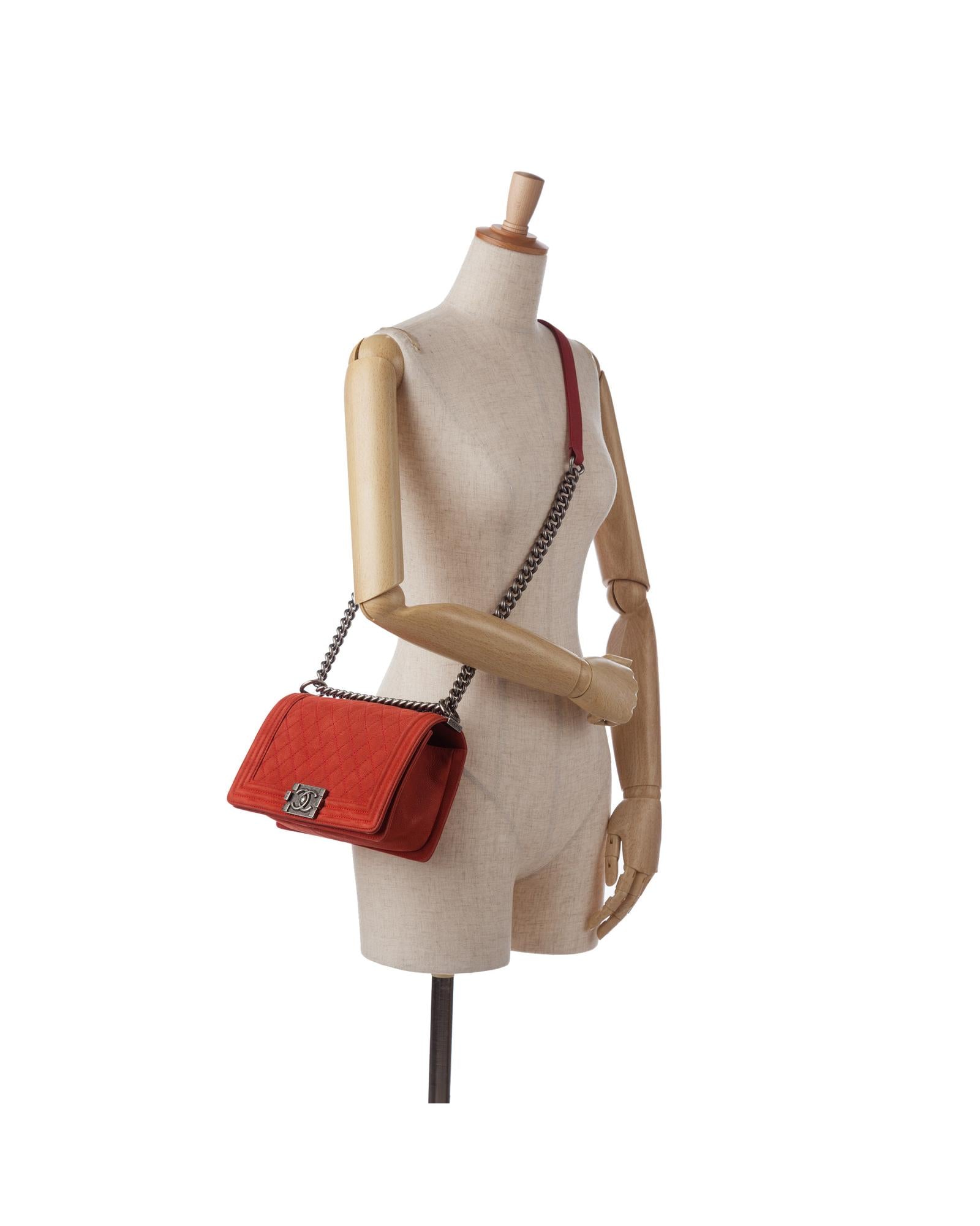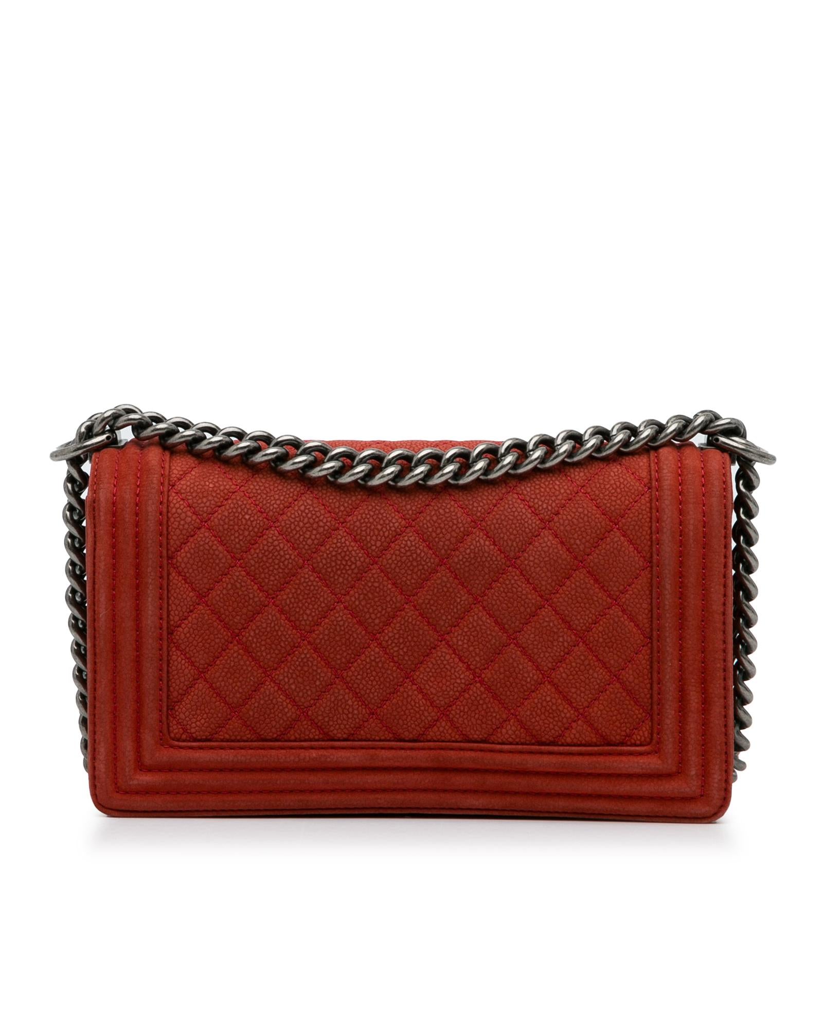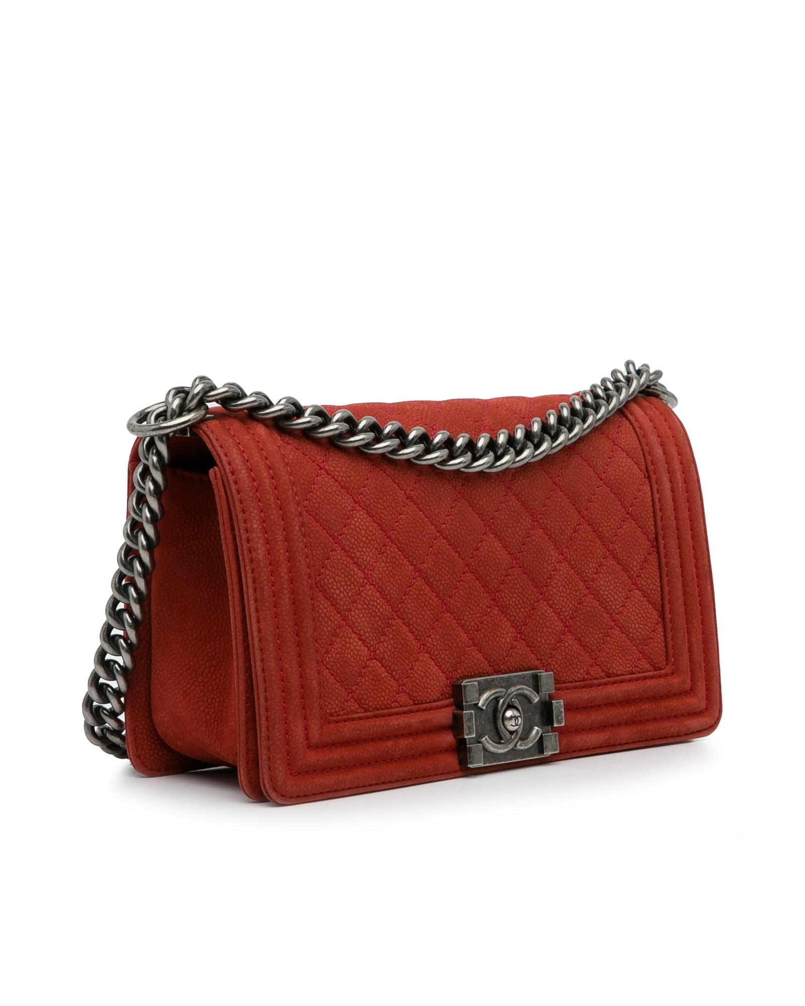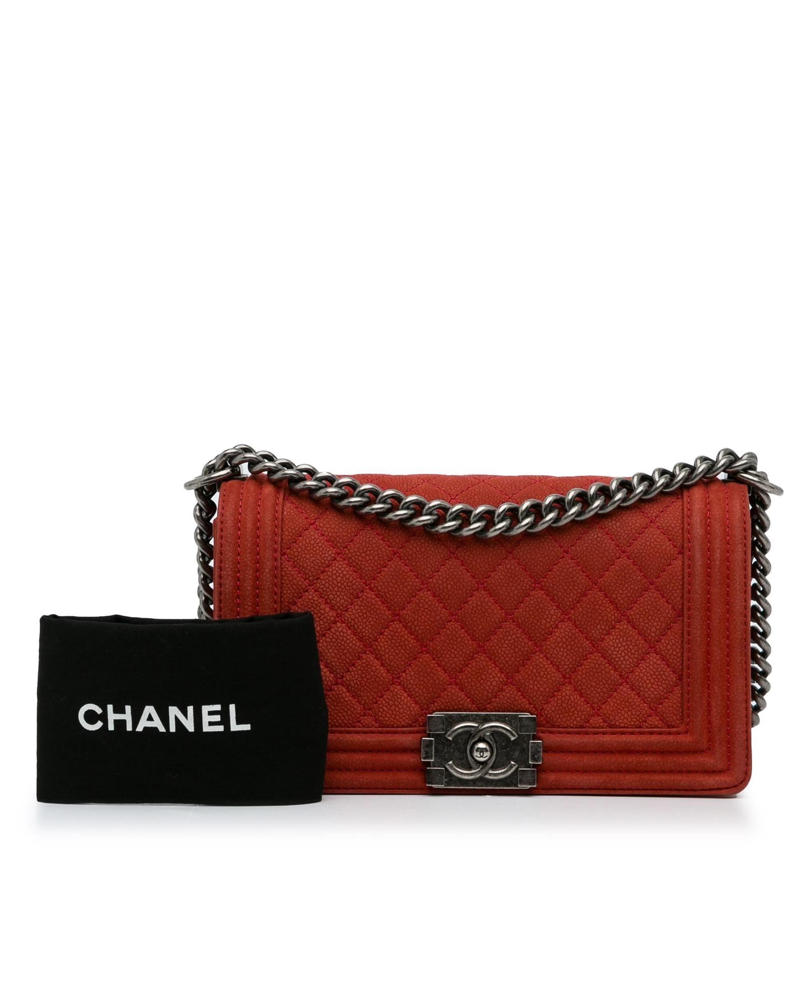 This crossbody bag features a quilted caviar leather body a curb chain strap with leather guard a front flap with a CC push-lock closure and interior zip and slip pockets.Brand: Chanel Vintage