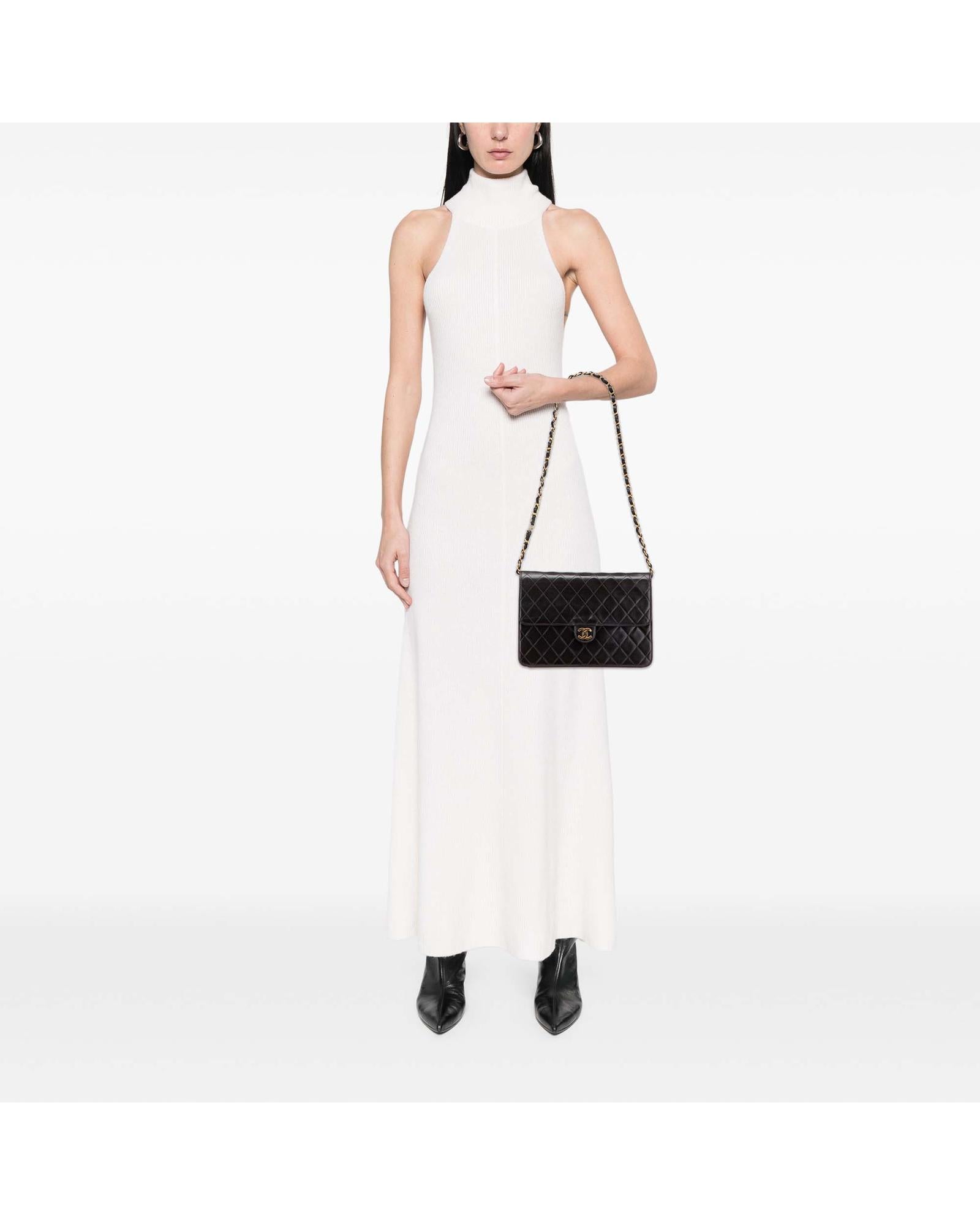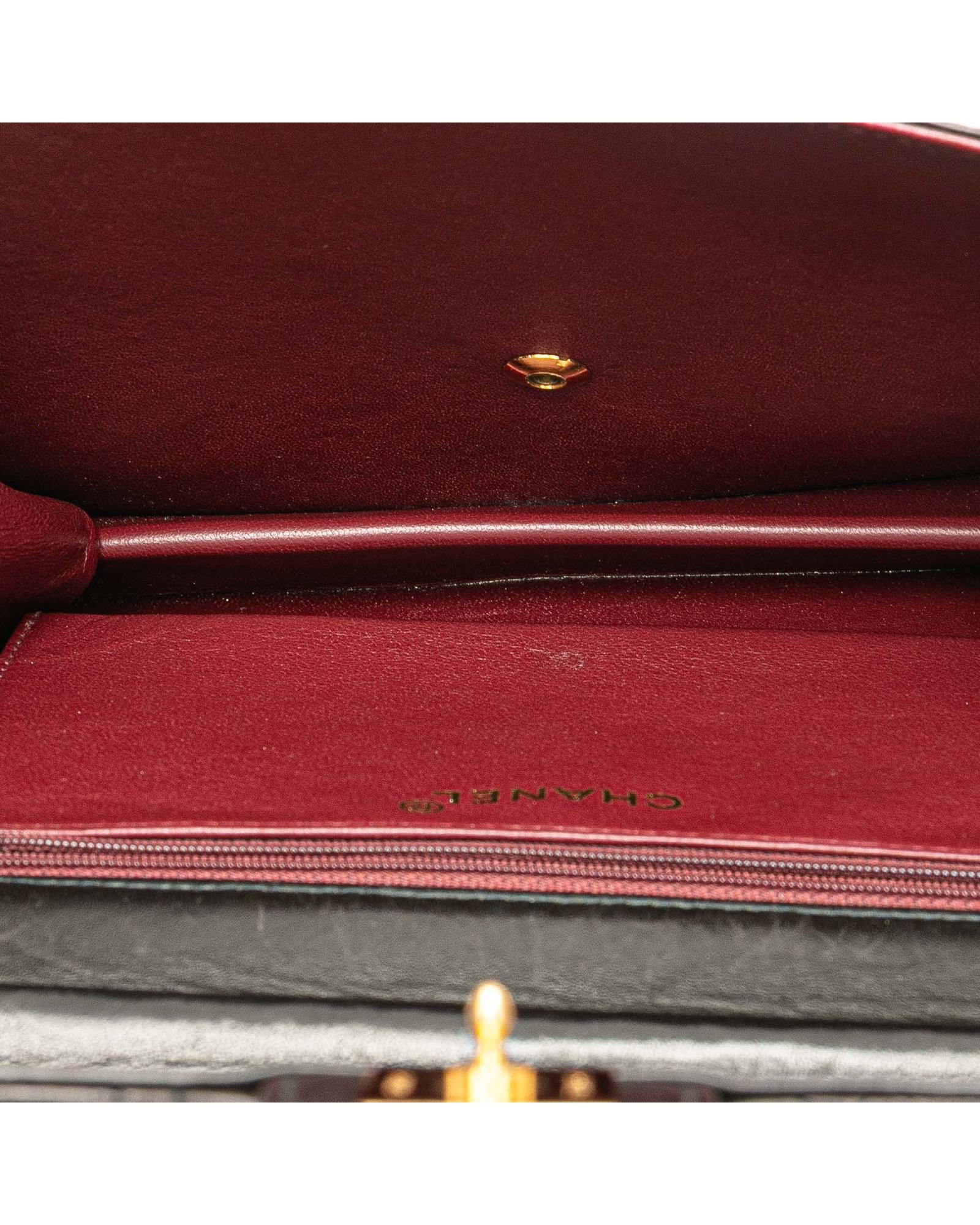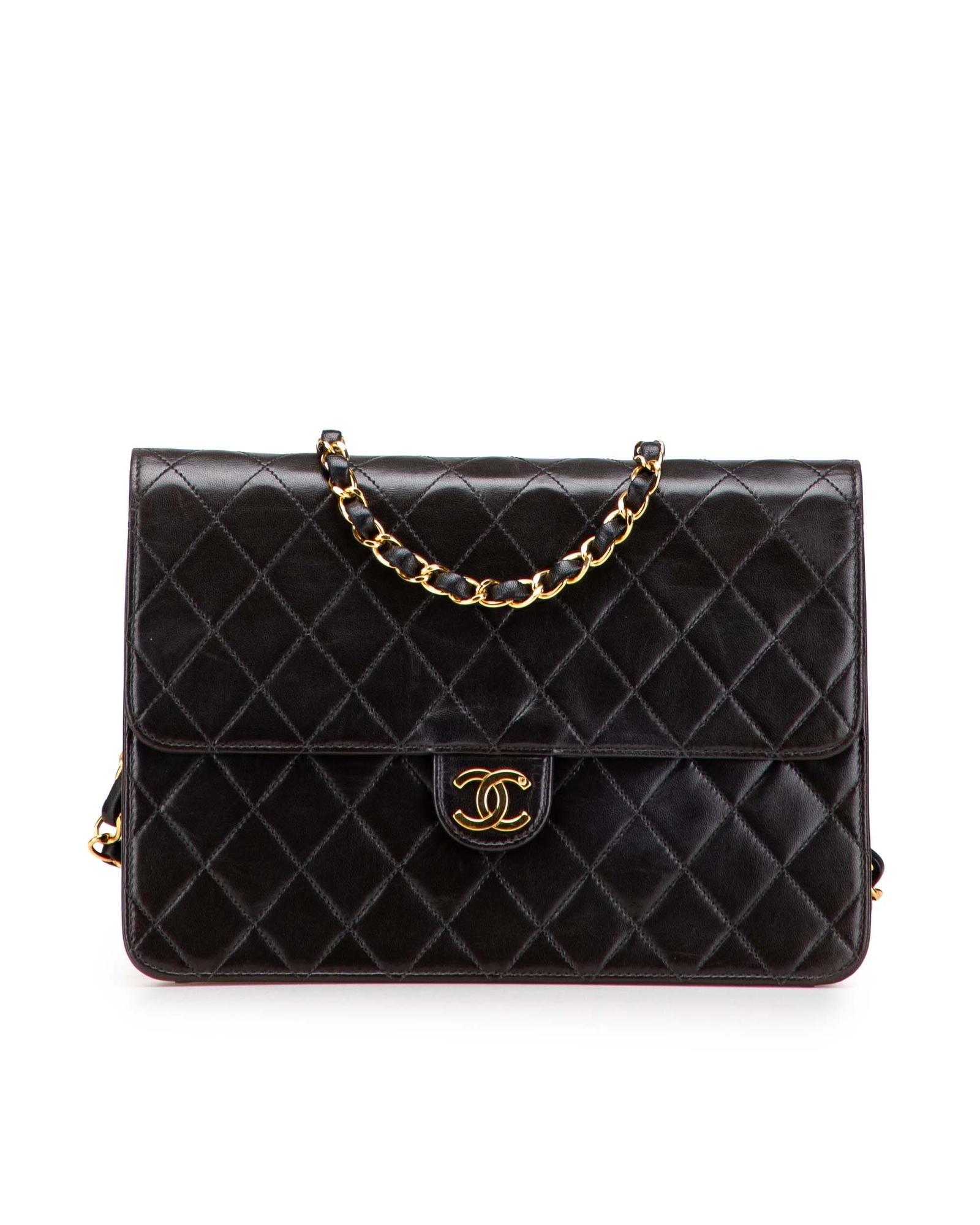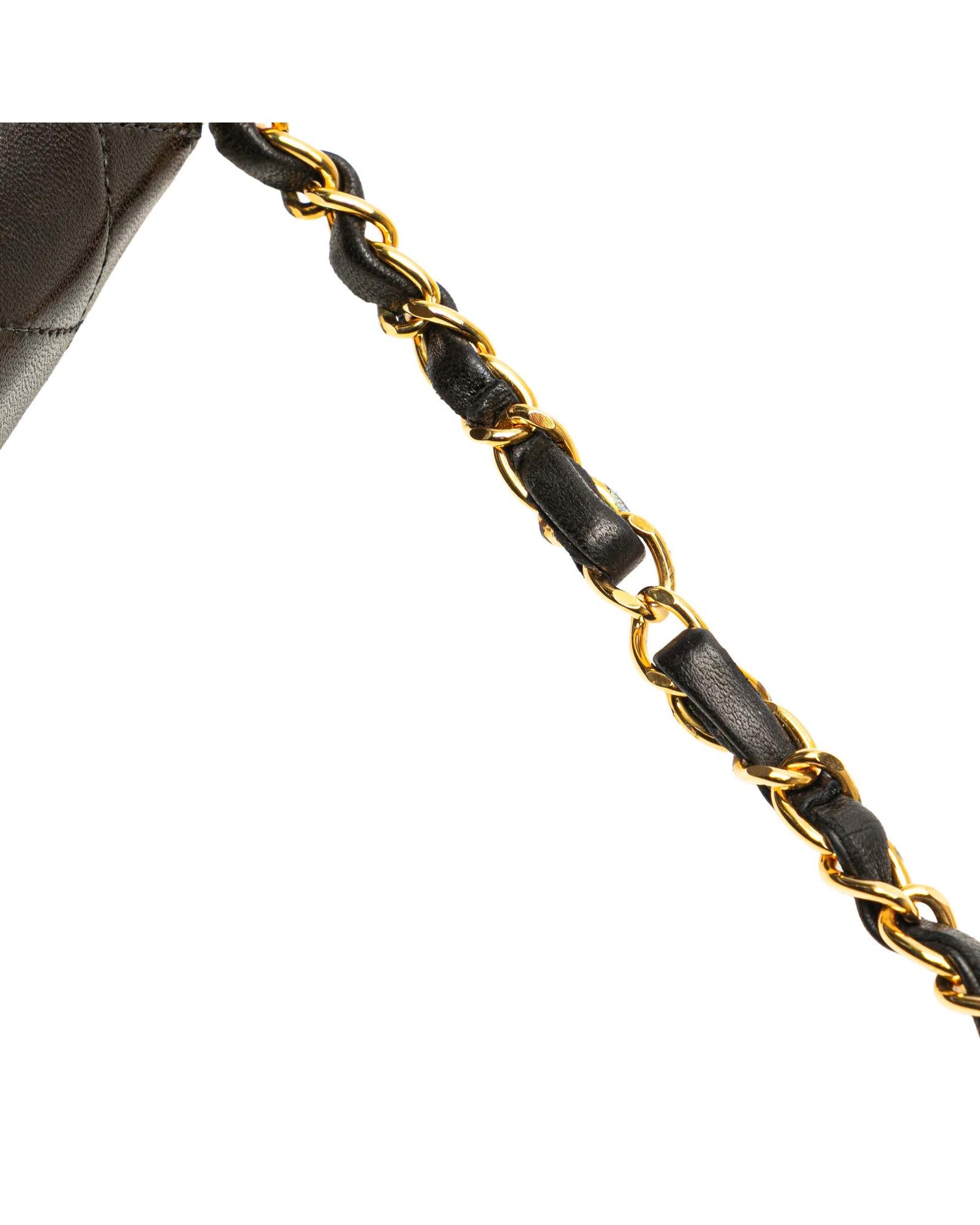 This crossbody bag features a quilted lambskin leather body a leather woven chain strap a front flap with CC turn lock closure and interior zip pocket and slip pockets.Brand: Chanel Vintage