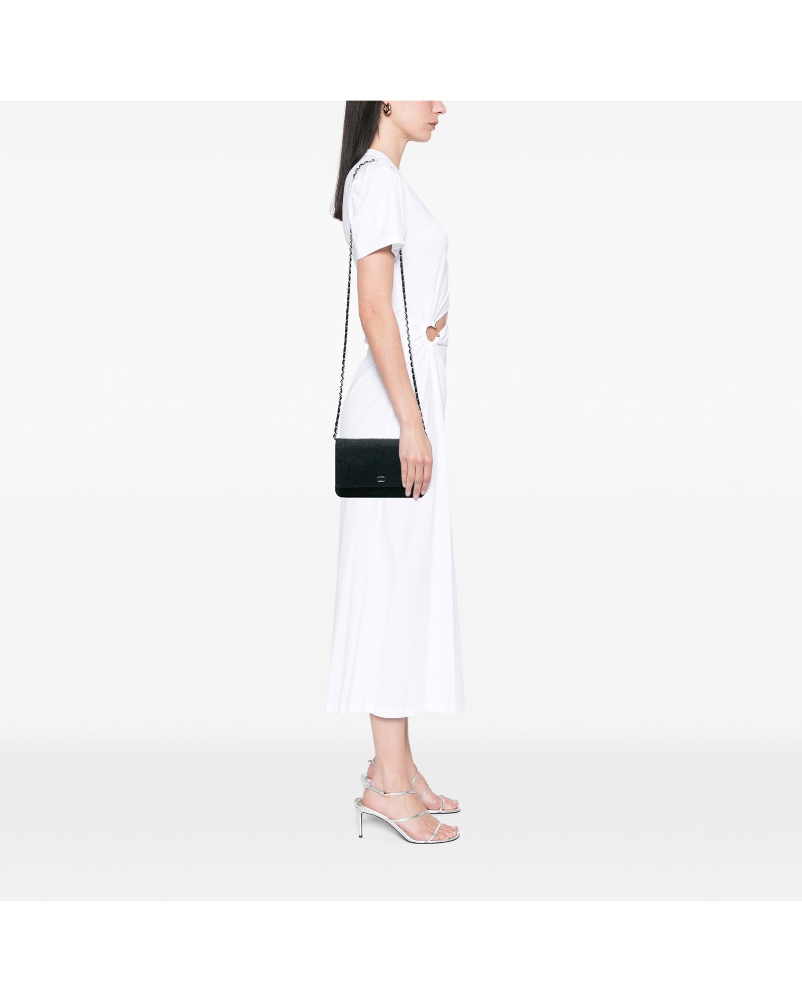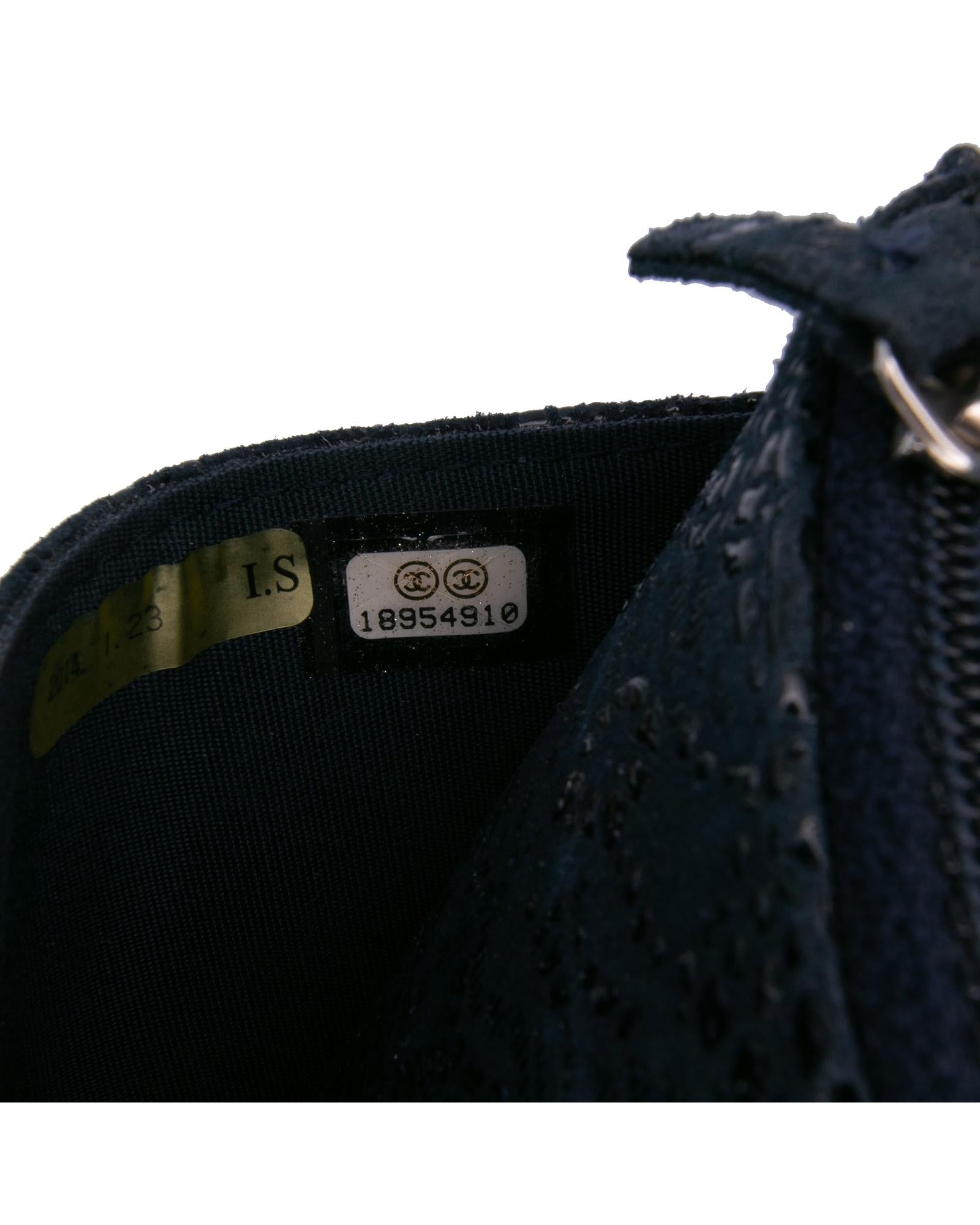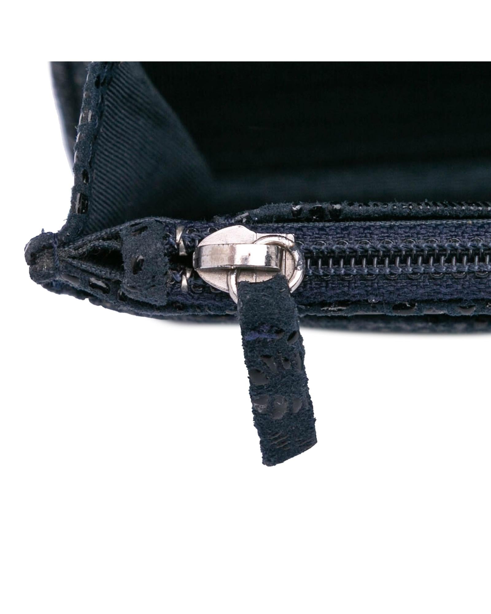 This crossbody bag features a goatskin body with lace overlay a lace-woven chain shoulder strap a front flap with magnetic snap closure and interior zip and slip pockets.Brand: Chanel Vintage